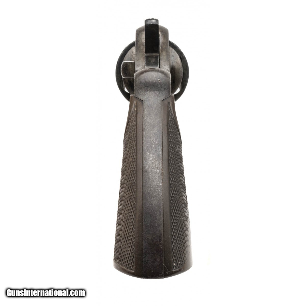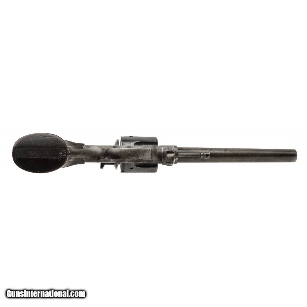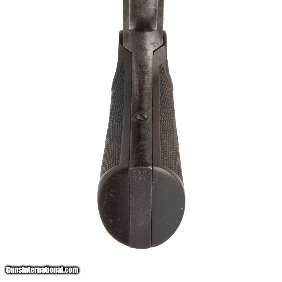 Description: " Serial No. 217780, made in 1903, .38 colt, 6"" round barrel. Majority of the finish is a smooth grey patina with surface oxidation noted. Bore has light frosting and pitting in the grooves, rifling remains strong. Factory markings are crisp and visible, grips are very good with minimal handling wear. Action indexes correctly and functions correctly. Consignment SOLD Curio/Relic: Yes |