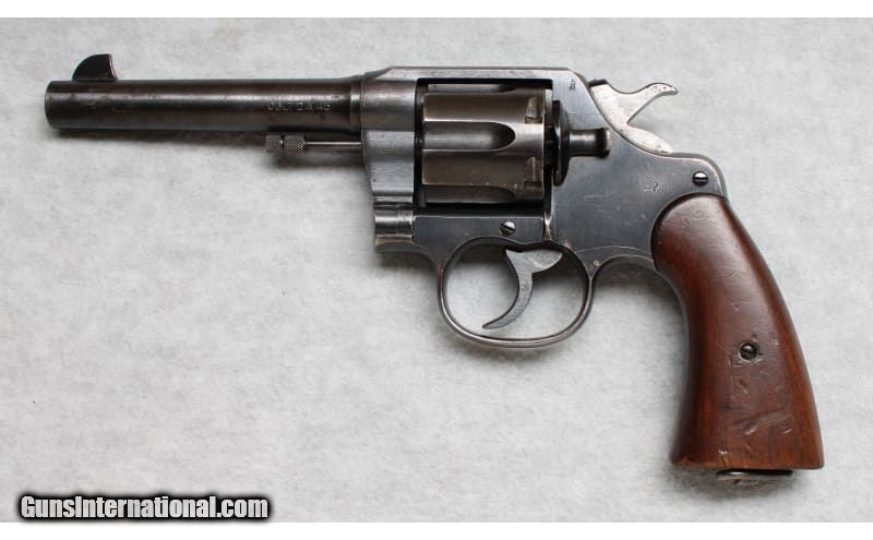 Description: Good conditon, some finish wear, small scratches, few small areas corrosion on the barrel. WWI .45 caliber revolver marked U.S. Army Model 1917 - 5 1/2" barrel, 6 shot cylinder, fixed sights, double and single action trigger, wood grips and lanyard loop. A good choice for Colt or military collectors. .45 Auto SOLD Curio/Relic: Yes Chambers: Revolver Metal Condition: Good Bore Condition: Bright Barrels: 5 1/2 Triggers: Double and single action Butt Pad: Wood grips Item Location: La Vista, NE |