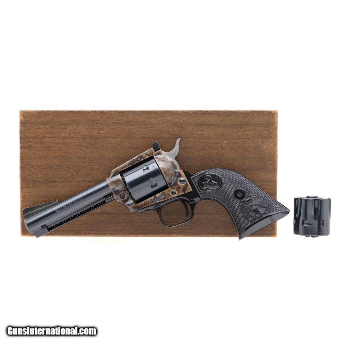 Description: " SN: G104172. Made in 1974. .22 Magnum/.22 Long Rifle with a 4.5"" barrel. Bore is in excellent condition. Colt single action revolver with case colored frame. Finish is in excellent condition. Grips are in excellent condition. Overall condition is excellent. Comes with box. (Consignment) SOLD |
