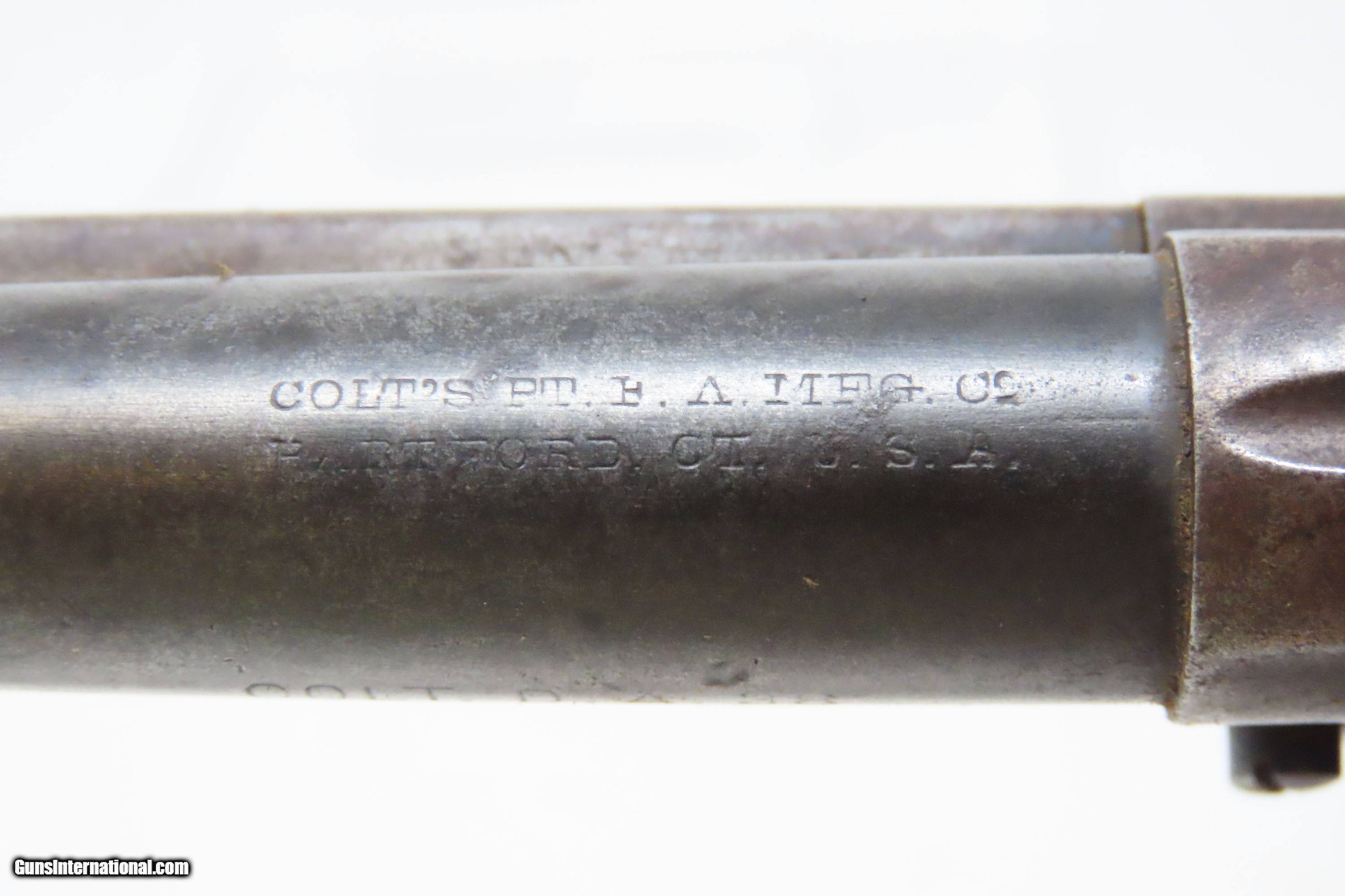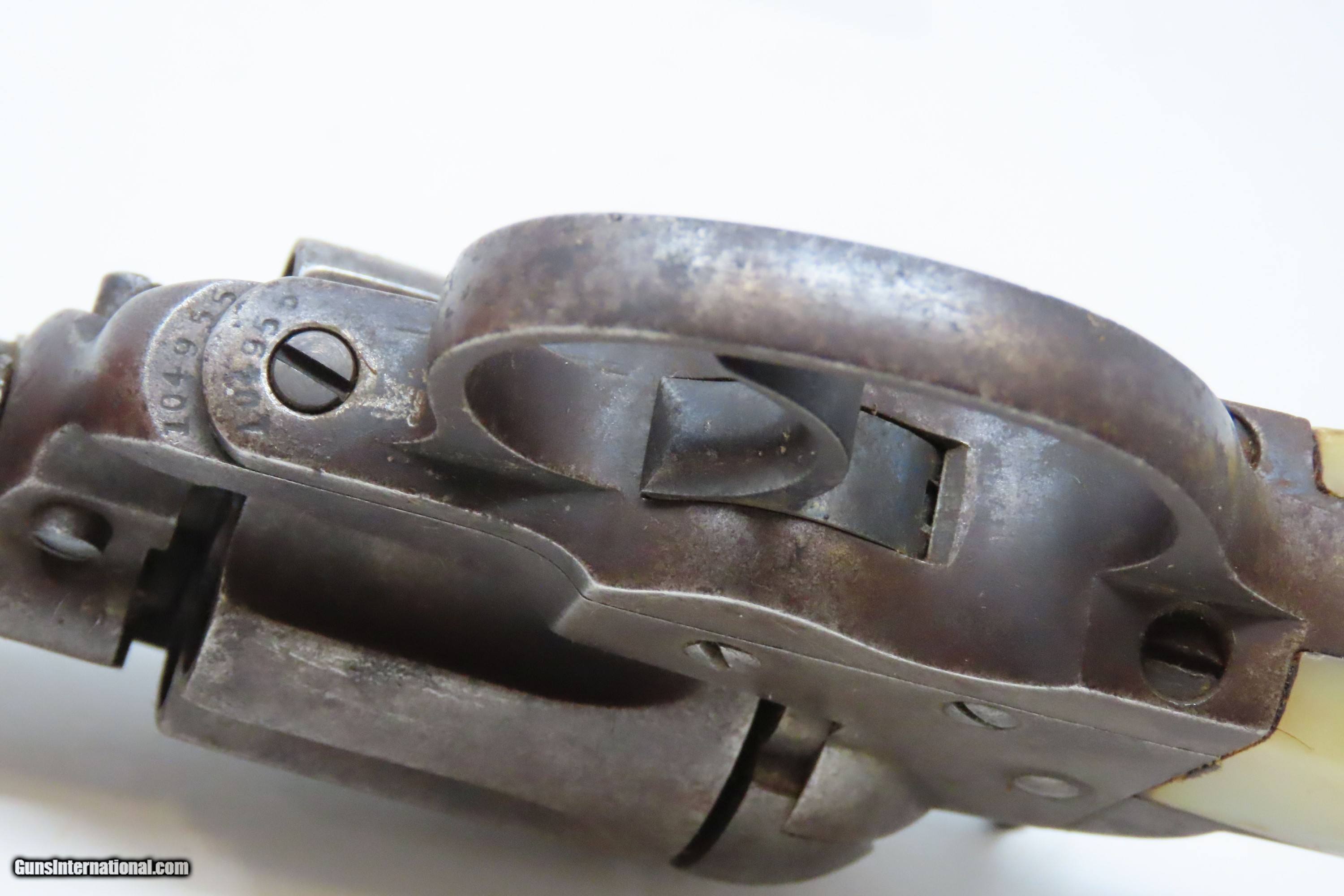 Description: 1896 Antique COLT Model 1877 “Lightning” .38 Caliber Double Action Revolver With HOLSTER & TEXAS RANGER BADGE Here we present an antique Colt Model 1877 Lightning Double Action Revolver, made in 1896 in Hartford, Connecticut. The Model 1877 was Colt’s first venture into double action revolvers. It was quite successful, selling 166,849 from 1877 through 1909. Nonetheless, there was some hesitation to move away from the single action mechanism, which had so proven itself. Famous adopters of the Lightning were William “Billy the Kid” Bonney and John Wesley Hardin, along with “Doc” Holliday. Doc’s weapon of choice early in his western career was an 1851 Colt Navy revolver. Later, Doc carried a nickel-plated .41 caliber Colt Thunderer or the .38 caliber Colt Lightning. The Model 1877 was designed in 1876 by William Mason and was offered in three different calibers with production beginning in January 1877, which led to the three unofficial names. The first production model was the “Lightning”, in .38 Long Colt caliber. Later that year, Colt came out with the .41 Long Colt caliber called the “Thunderer”. The .32 Long Colt caliber, called the “Rainmaker”, didn’t go into production until sometime in 1887. Benjamin Kittredge, the largest Colt Distributor in Cincinnati, Ohio, coined the nicknames for these guns as a marketing tool. He was also responsible for calling the Model 1873 Single Action Army the “Peacemaker”. None of the nicknames were ever used by the factory in any reference materials. The 1877 "Thunderer” in .41 caliber was the preferred weapon of Billy the Kid and was his weapon of choice when he was killed by Pat Garret in 1881. The overall condition is good. Gray patina throughout. The action is excellent in both double and single action. The bore is dim gray with worn rifling. The grips are solid mother of pearl and the left panel has been repaired. The numbers match. The single loop holster is in great shape for age and lightly tooled. The badge is some kind of recreation in good condition. Own the original! This is a legitimate antique and not a reproduction. Barrel is 4-1/2 inches. Caliber: .38 Long Colt Overall condition as seen in photos. Very Fast. Very Safe. FREE SHIPPING WORLDWIDE. Delivered directly to your door by express mail! Guaranteed AUTHENTIC & Includes CERTIFICATE OF AUTHENTICITY. ancestryguns $2000 #228346 SOLD Antique: Yes |