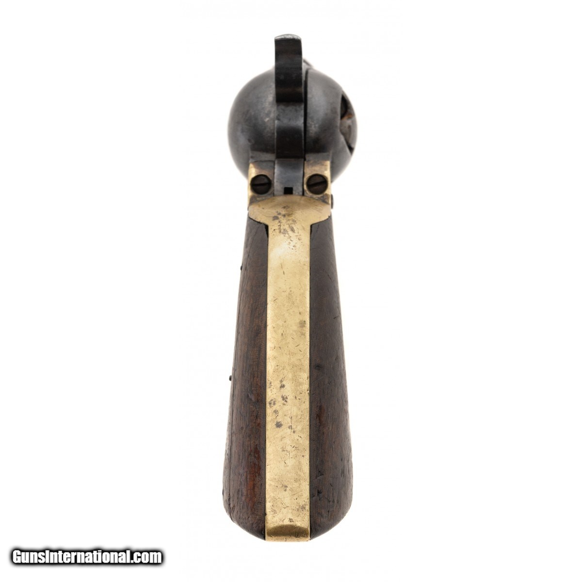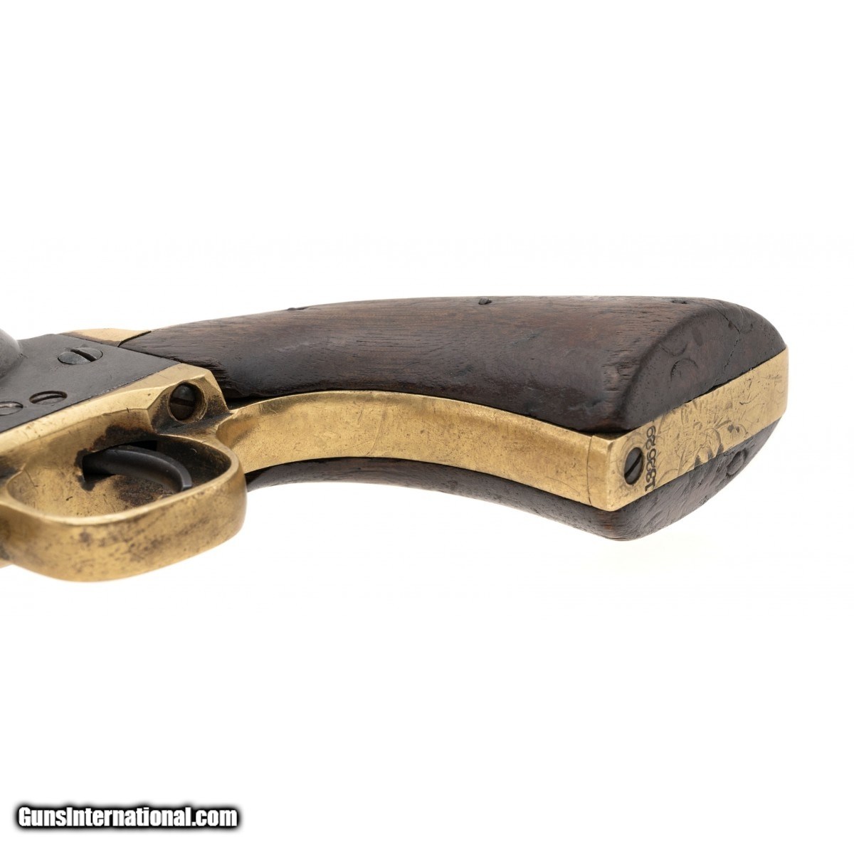 Description: "Serial number 132629. Made in 1863. 36 caliber with a 7 ½" barrel. Metal has a dark gray patina with some pitting. Grips are very good. SOLD Antique: Yes |
