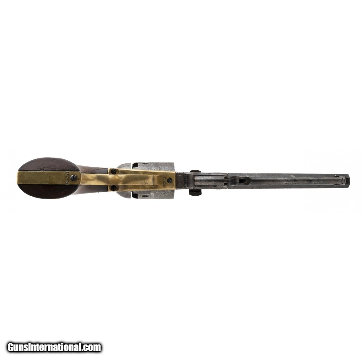 Description: "Serial number 177703. Made in 1864. 36 caliber with a 7 ½"barrel. Nice sharp gun. All numbers matching. Good cylinder scene remain. SOLD Antique: Yes |