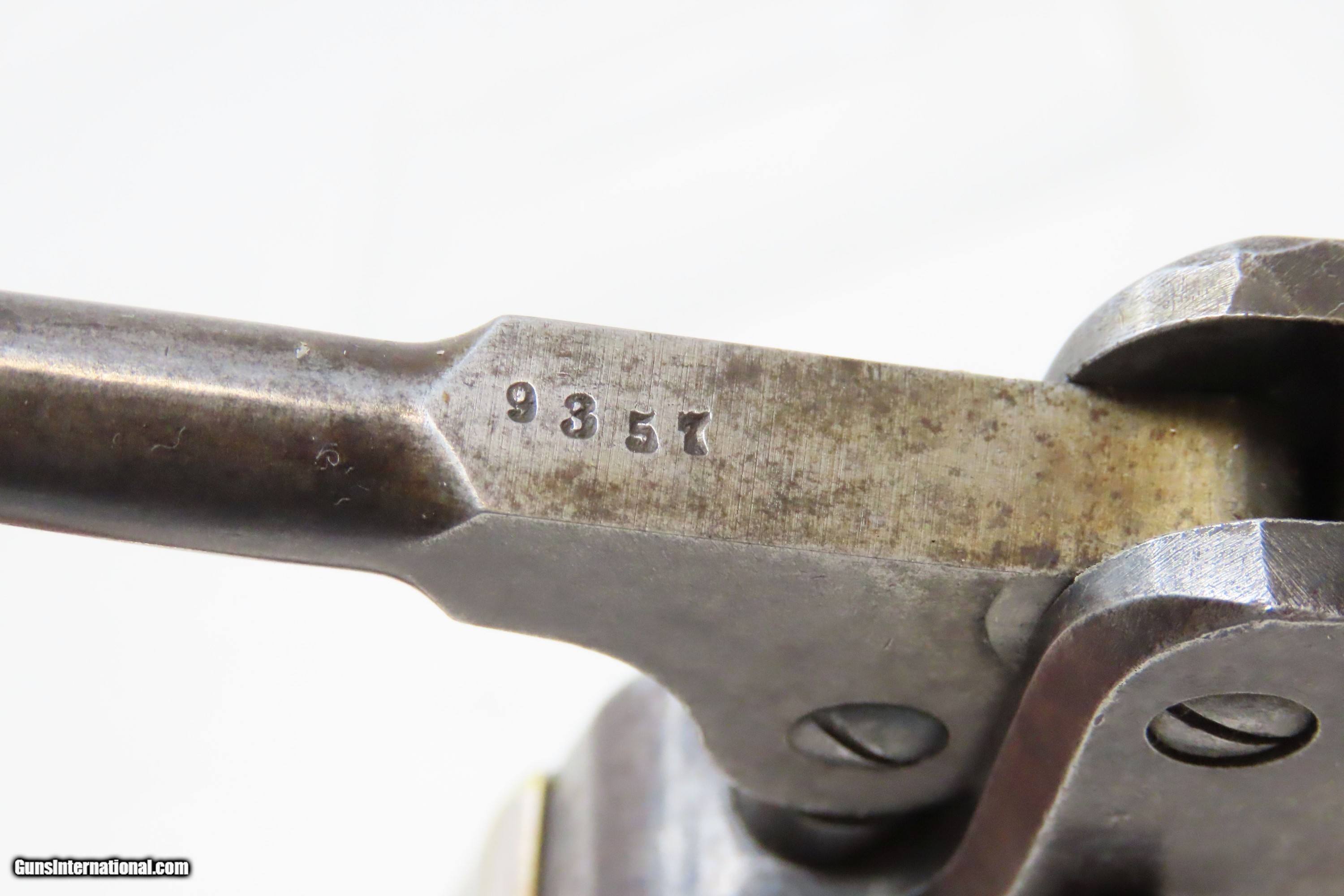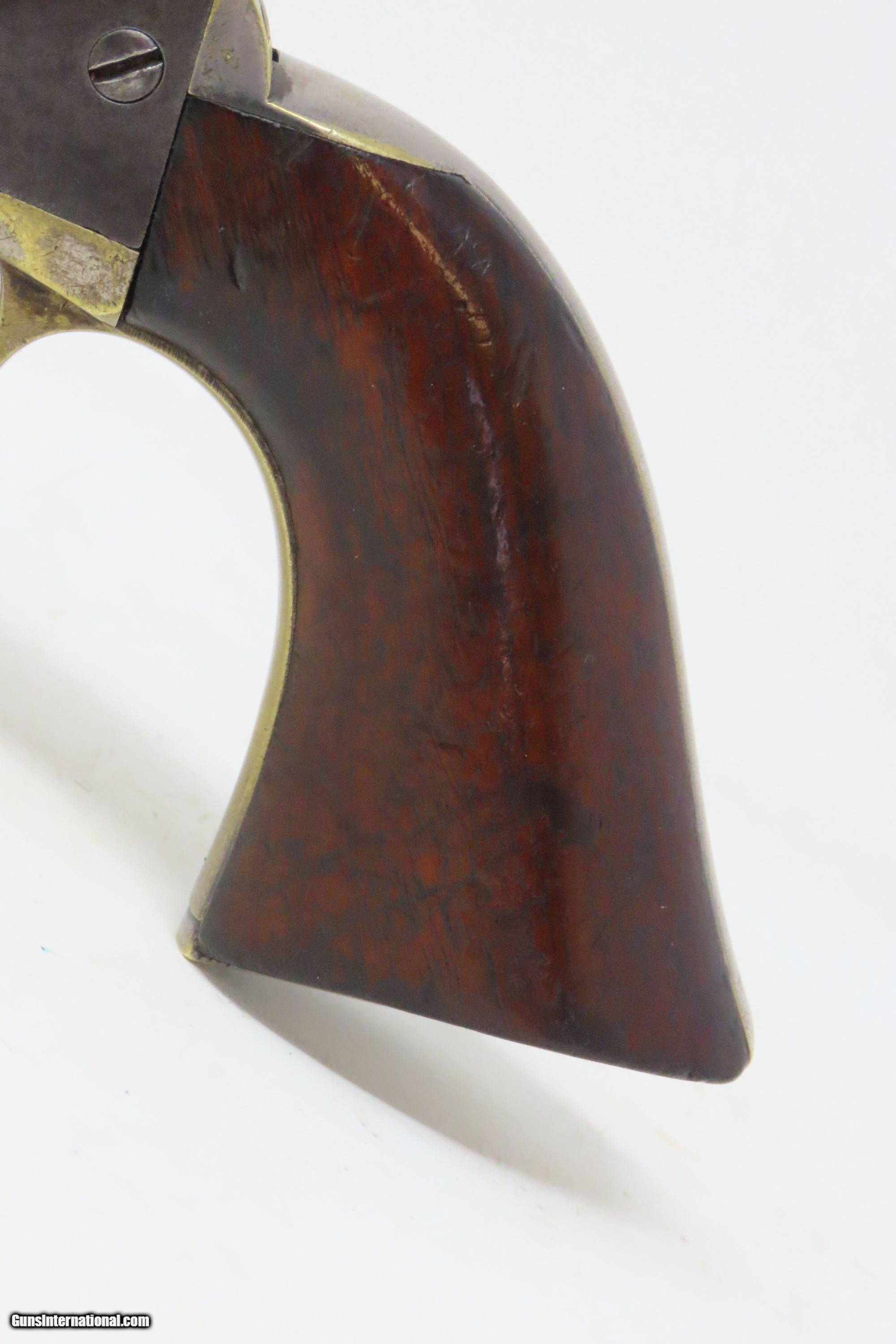 Description: Antique COLT Model 1851 NAVY .36 NAVAL BATTLE of CAMPECHE CYLINDER SCENE 1867 Manufactured WILD WEST Single Action Revolver Here we present an antique Colt 1851 Navy Revolver, made in 1867 in Hartford, Connecticut. The 1851 Navy was one of Colt’s most famous and successful lines, reaching a production total of 257,348 from 1850 to 1873 (right up to the time of SAA production) from both Hartford and London factories. From Hartford alone, 185,000 were made by the end of the American Civil War. Many of these saw service during the conflict on both sides. There were some military purchases and lots of private purchases by soldiers going off to war. In addition, the Model 1851 was carried by Confederate General Robert E. Lee and was a favorite of “Doc” Holliday and “Wild Bill” Hickok, who carried two of these most famously in his red sash. The Colt Model 1851 Navy, first known as the “Ranger Model” and also known as the “Revolving Belt Pistol of Naval Caliber”, was designed between 1847 and 1850, manufactured from 1850 until 1873, and was the second most popular Colt percussion revolver after only the Model 1849 Pocket. Though its name implies maritime use, most Navy revolvers primarily saw use on dry land, including in the Old West, which truly, the Colt 1851 Navy revolver ushered in the era of the gunfighter. Among the many guns that were used on the western frontier, none was more popular in its day than the Colt percussion revolver designated the 1851 Navy. This single action revolver weighed in at roughly 42 ounces. Prior to the Navy's introduction, hand gunners had to make do with the Colt Walker and Dragoon revolvers, both of which weighed over four pounds. These big guns were best suited for carry in pommel holsters on the saddle. The Colt Navy was the first popular single-action revolver that could be worn comfortably on the belt. Prior to the beginning of the Civil War, the state of Missouri was a hotbed of trouble that often broke out in shooting fights. Bill Anderson, Jesse and Frank James, and the Youngers all cut their teeth on this border trouble and were ready to go when leaders like William Quantrill enlisted them in his guerilla band during the war. The boys from Missouri became quite proficient with their six-guns and generally carried a brace of Dragoons on their saddle pommels and a brace of Navy revolvers on their hip. The overall condition is very good. Traces of original blue finish with patina throughout. There is a light silver finish on the brass grip frame. The action is excellent. The bore is in very good condition with strong rifling. Grips are solid. Numbers match on all but the frame and cylinder arbor. The Battle of Campeche cylinder scene is visible. Own the original! This is a legitimate antique and not a reproduction. Barrel is 7-1/2 inches. Caliber: .36 Percussion Overall condition as seen in photos. Very Fast. Very Safe. FREE SHIPPING WORLDWIDE. Delivered directly to your door by express mail! Guaranteed AUTHENTIC & Includes CERTIFICATE OF AUTHENTICITY. ancestryguns $2500 #240103 SOLD Antique: Yes |
