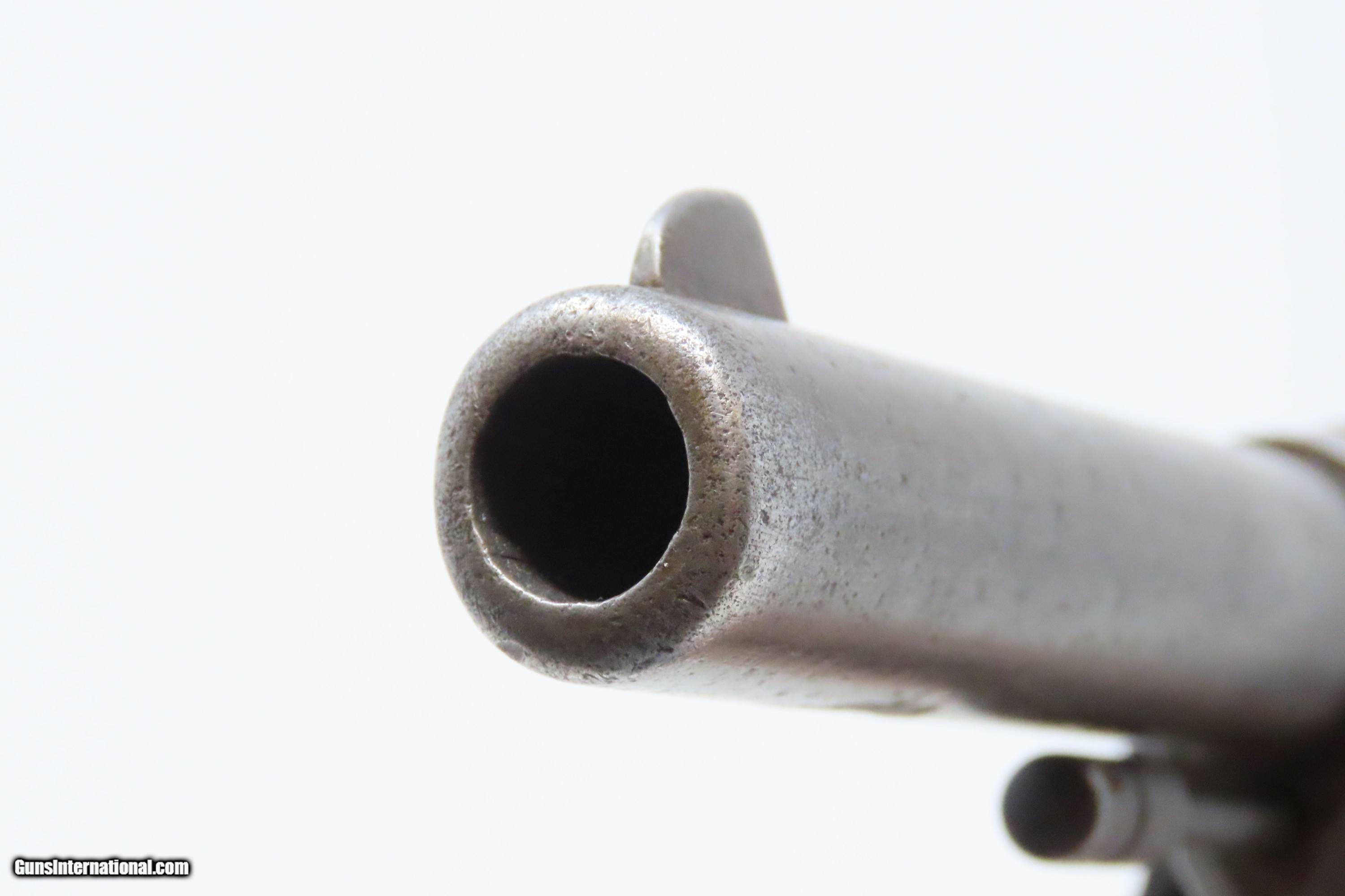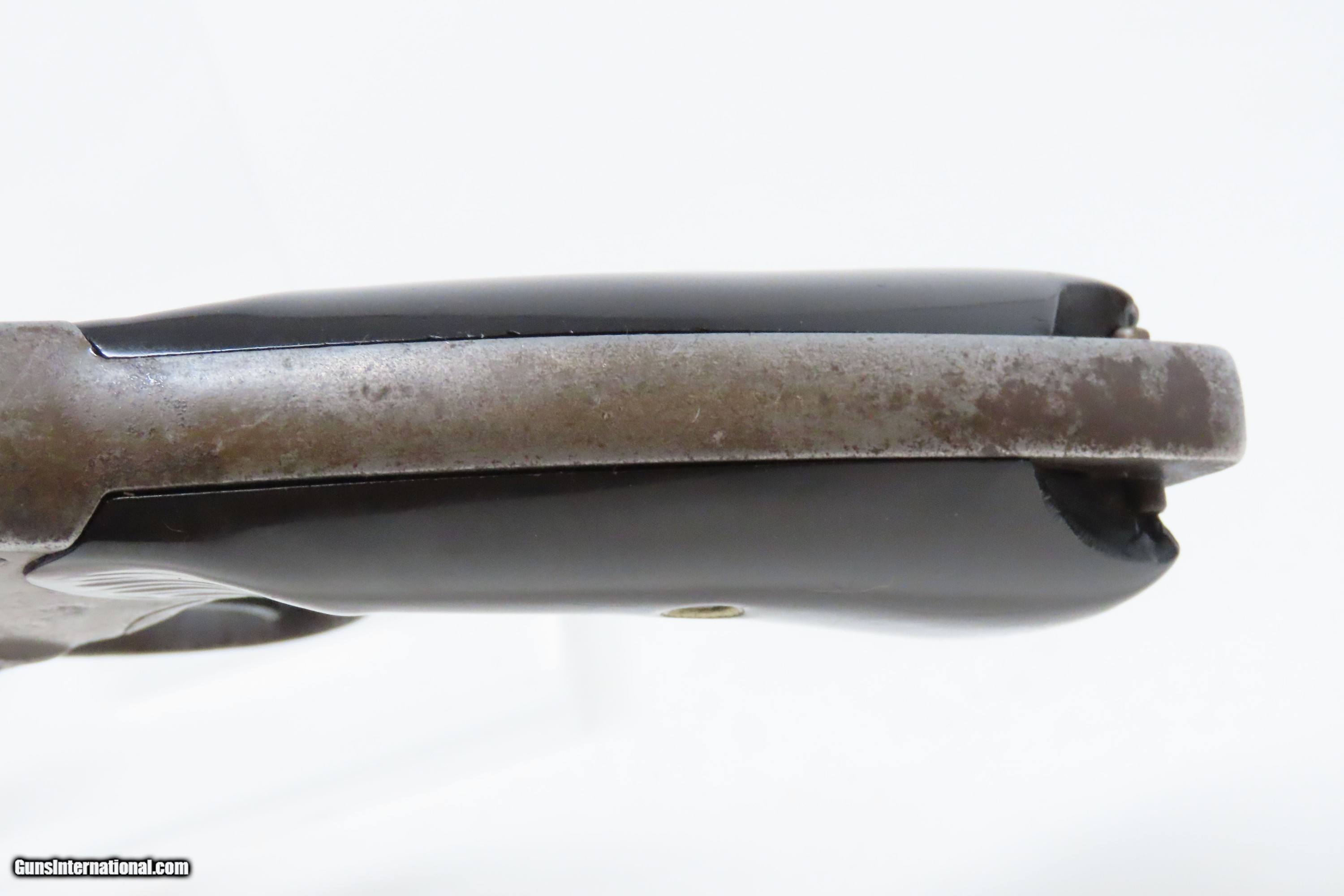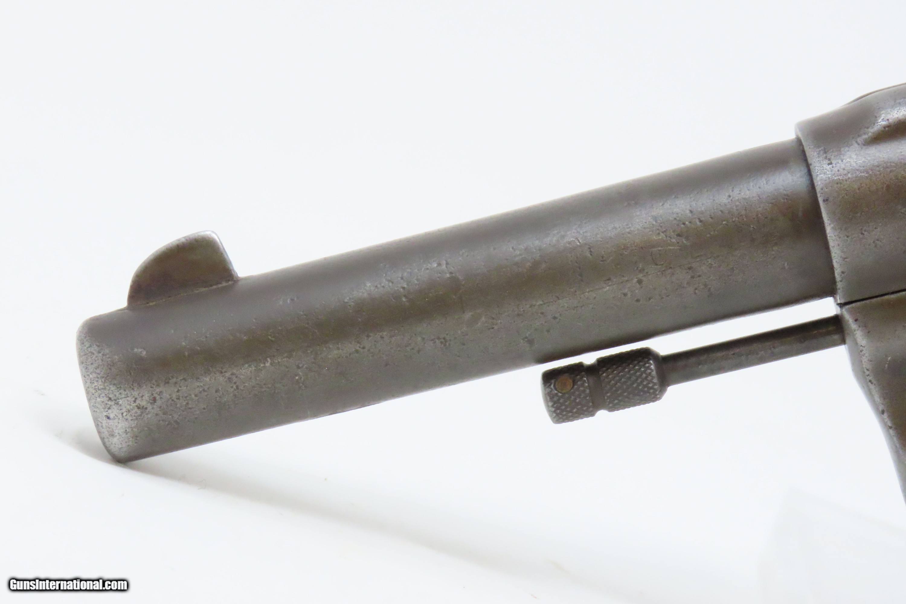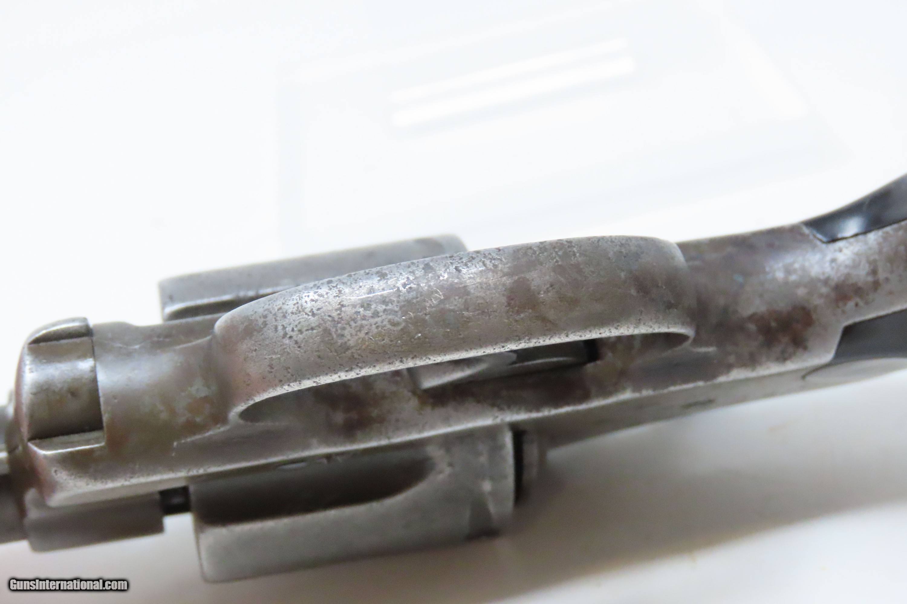 Description: 1908 COLT “NEW SERVICE” Model .44 WCF Double Action C&R SIX-SHOT Revolver TURN of the CENTURY Large Frame Revolver Here we present a Colt “New Service” Model double action revolver, made in 1908 in Hartford, Connecticut. The Colt New Service is a large frame, large caliber, double-action revolver made by Colt from 1898 until 1946. In 1898, Colt Firearms released a new six-shot revolver chambered for the .45 Long Colt cartridge as the Model 1898 - better known as the "Colt New Service". As the years progressed, it was chambered in .38-40 WCF, .44 Russian, .44-40 WCF, .44 Special, .45 Long Colt, .455 Webley, and later .45 ACP, .38 Special, .357 Magnum, along with other less common calibers. The New Service line would end up being produced from 1898 to 1946 to the tune of over 356,000 examples by the Colt Patent Firearms Manufacturing Company. The New Service line was adopted by the United States military through the Army, Marine Corps and Navy service branches, these under the designation of "Model 1909" and retaining the .45 Colt chambering. Not surprisingly, the New Service line managed to see operational use from 1898 into 1946, encompassing World War 1 (1914-1918) and World War 2 (1939-1945) as well as a plethora of other conflicts in between. Some also found their way onto the battlefields of the Vietnam War (1955-1975). First use of the New Service revolver was in the 1898 Spanish-American War. As New Service revolvers were produced in the hundreds of thousands and proved highly reliable and robust battlefield weapons while also lending themselves to the civilian market, it was no surprise that the New Service was still in circulation by the time World War II rolled around. Many New Service revolvers were given up after 1946 though limited stocks still persevered into the more modern "Cold War" conflicts from then on. The overall condition is good. Robust action. The bore is semi-bright and lightly frosted. Markings are legible although have been worn down. Both grips have been smoothed over and are missing chips in the butt. Light gray patina throughout. This firearm is classified as a Curio & Relic. Barrel is 4-1/2 inches. Caliber: .44-40 Winchester Center Fire Overall condition as seen in photos. Very Fast. Very Safe. FREE SHIPPING. Will need to be sent to your local FFL or C&R licensee. This firearm is classified as a Curio & Relic. Guaranteed AUTHENTIC & Includes CERTIFICATE OF AUTHENTICITY. ancestryguns $1050 #228078 SOLD Curio/Relic: Yes |