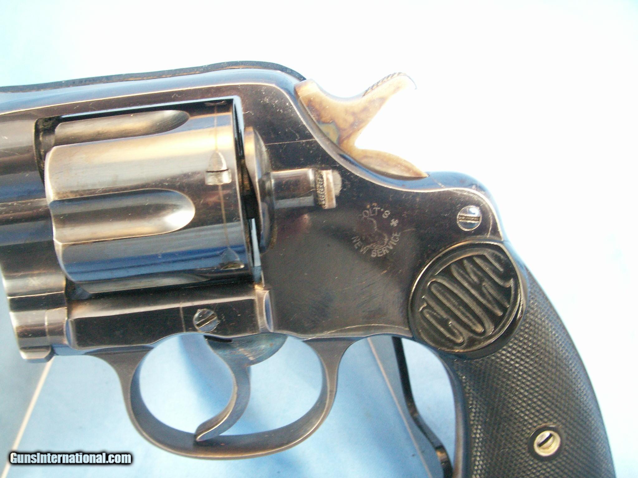 Description: For Sale: Colt New Service Revolver high polish early production. This is in .45 LC caliber with a 7.5" barrel. This was manufactured in 1902 and has the high polish bluing with the fire blue small parts. This gun is rated at 95-96% original condition. The bore is mirror bright and the mechanics and lock up are flawless. This is a very early example and has the rampant Colt encircled with the words "Colts New Service" and the flat latch for the cylinder release. The condition of this gun is amazing considering it is 115 years old. There are handling marks and some surface freckling as you would expect for this period of revolver. This was the largest frame revolver Colt produced and a considerable piece of iron. This will make a great addition to your collection and a super investment. Please see my other adds for more collectable firearms. SOLD Curio/Relic: Yes |