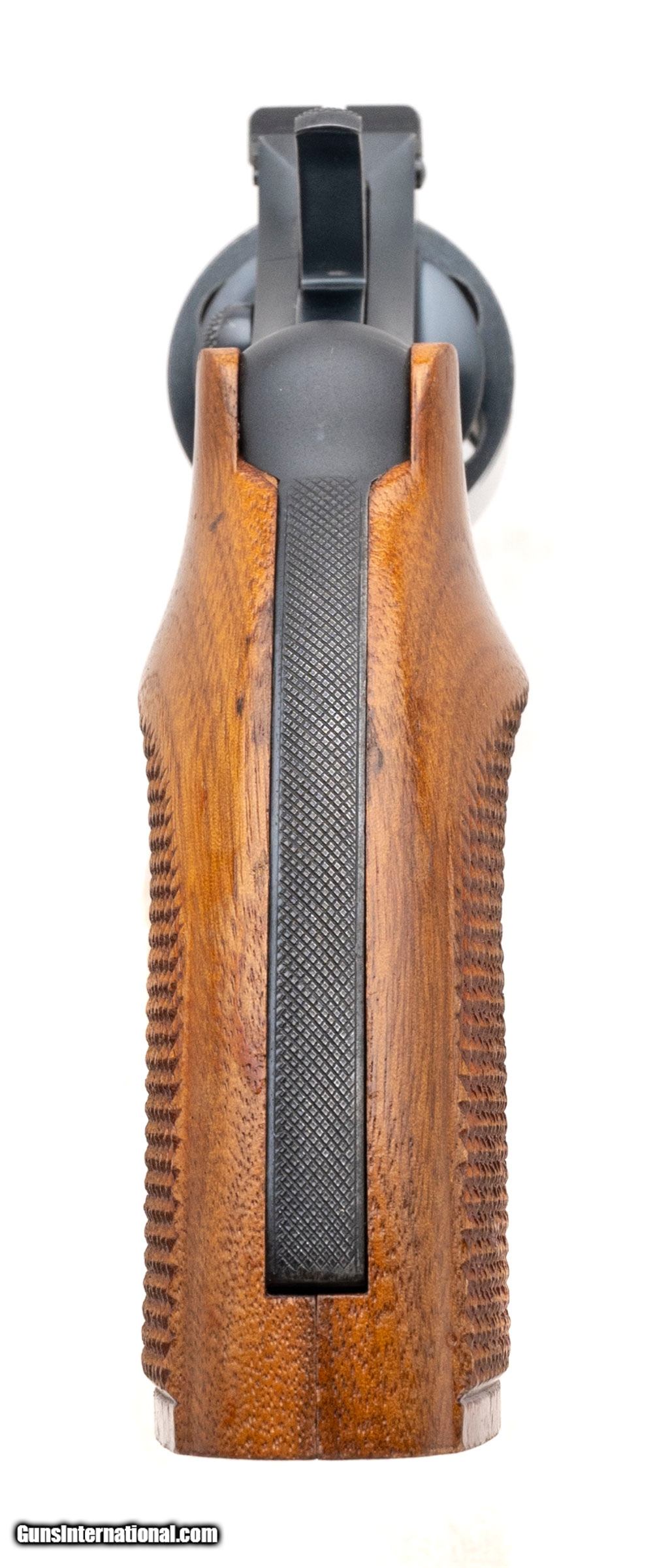Description: "SN: 600153. Made in 1936, .38 Special with a 6"" barrel. Pre-war blued target revolver. Has about 92% original blue finish and Herrets custom target grips. Overall very good condition. SOLD |