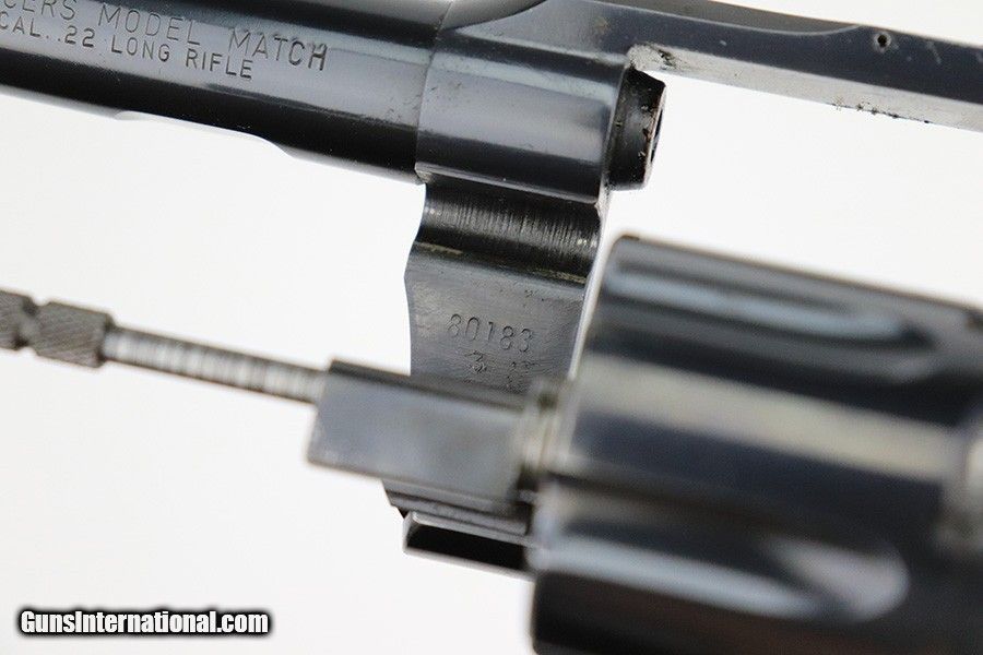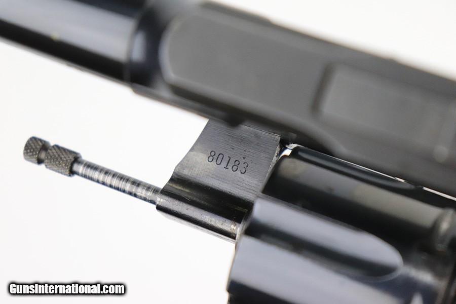Description: This is a very nice example of a Colt Officers Model Match revolver, manufactured in 1961 and chambered in .22 LR. The gun is all matching and has retained about 90% of its original high polish bluing. There is just a hint of wear and light oxidation around the muzzle. Most of the finish loss comes in the form of splotchy discoloration on the cylinder. The rest of the gun is actually very nice. Comes with excellent Walnut grips. The bore has strong rifling, but there is a small area with tiny dots of oxidation. The cylinder is tight, and the action is very smooth. SOLD Curio/Relic: Yes Handgun Caliber: .22 Long Rifle |