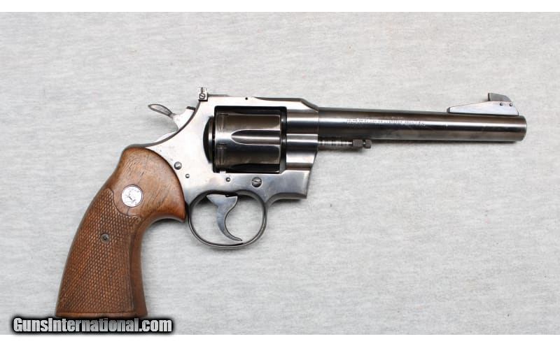Description: Colt Officiers Model Match chambered in .38 Special. The Officer's Model Match was made from 1953 to 1969. It has a 6" heavy tapered Barrel. The rear sight is Colt's Accro fully adjustable. The hammer is the wide diamond-checkered Target hammer that became famous on the Colt Python. The finish is blue and the grips are Colt's Target type fully checkered walnut with silver medallions. .38 Special SOLD Metal Condition: Very Good Wood Condition: Excellent Bore Condition: Bright Barrels: 6 Inches Triggers: Factory Sights: Adjustable rear notch and front blade sights Item Location: La Vista, NE |