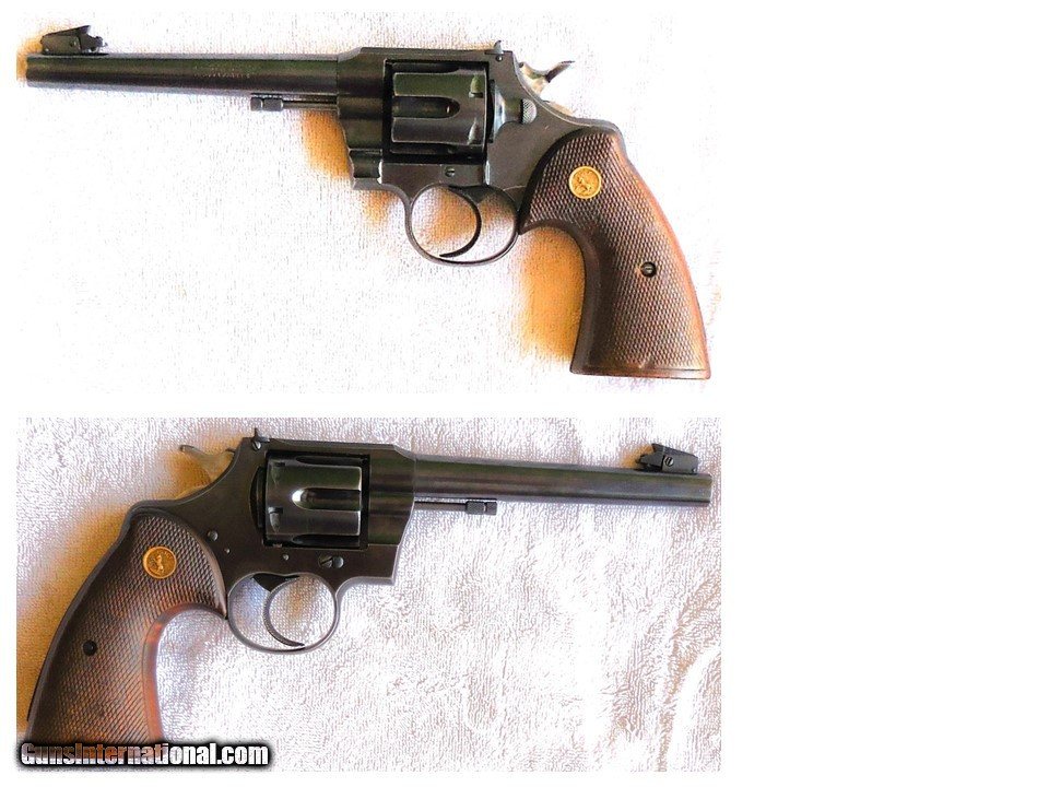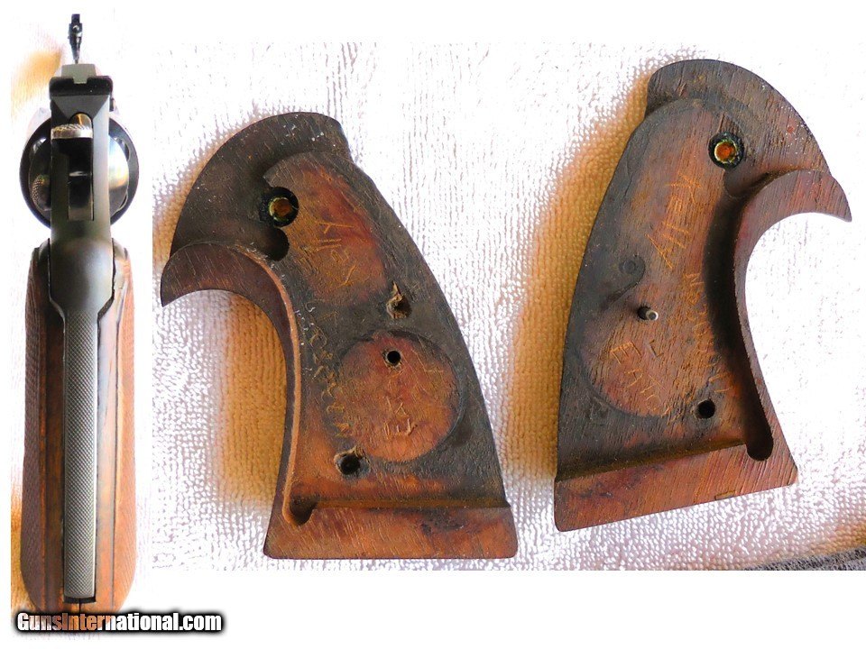 Description: A Collector and Shooter’s Used; SN 625,2XX; Colt Officers Model Heavy Barrel .38 Special Target Revolver that has been difficult to date. The Colt indicates a 1950 OFFICERS MODEL SPECIAL (what Fjestad calls FOURTH ISSUE) on (://colt/serial-lookup/) but the features and markings suggest it was made between 1935 – 1949, possibly a variant of the OFFICERS MODEL TARGET (THIRD ISSUE) according to Wilson, Serven and Fjestad references. The top of the barrel is marked in two Lines “COLT’S PT. FA. MFG. CO. HARTFORD, CT. U.S.A. / PAT’D. AUG. 5, 1884. JULY 4, 1905. OCT. 5, 1926.” The left side of the barrel is marked in staggered lines: “COLT/OFFICERS MODEL/38 / / *HEAVY BARREL*”. It has Colt’s Matted Topstrap and Screw-Adjustable + Friction Set-screw Windage-Only Target Rear Sight and what could be a King’s-Style (copy) or a genuine, unmarked King’s Gun Sight Company of San Francisco Elevation-Adjustable Front Sight that has an unusually large elevation range and large screws (no King’s mirror). The Asymmetric and Deep Border-Checkered Target Hammer Offset to the Left for the Right Thumb is typical of King’s “Cockeyed Hammer” Patent; and the Extra-Long 180-degree Curved Trigger also is typical of King’s work:- Deeply Checkered and wide and long so that it nearly fills the Trigger Guard. These are only descriptions to accompany the photos; without King’s markings, we cannot be sure. The Colt Checkered Grips appear Original & Proper for this Model. The Cylinder has a very light line that barely affects the blueing. Other condition and finish characteristics are shown in the photos. The barrel is bright; rifling is sharp; and mild-to moderate marking is present in the chambers ahead of the case mouth. This Revolver shows moderate wear for age, and not being dealers or experts, we estimate the condition at 75-80 Percent Original Finish. Condition is best judged from the photos, so please ask any questions or request additional information before purchase as this item will be troublesome and costly to return owing to CA re-registration and other regulations. Any refunds will be minus our actual shipping cost and FFL fees (greater than $150) after buyer pays return shipping. The listed price Includes Insured Air Shipping from a CA FFL Dealer to yours. Payment is by Money Order, Bank (Certified) Check or Personal Check (held 2-3 days). We are the Estate Executor and Trustee, not a dealer, and cannot handle credit card or electronic payments. This item is subject to prior sale. SOLD Curio/Relic: Yes Handgun Caliber: .38 Special Manufacturer: Colt Model: Officers Model Serial Number: 625,2xx Barrel Length: 6 Inch |