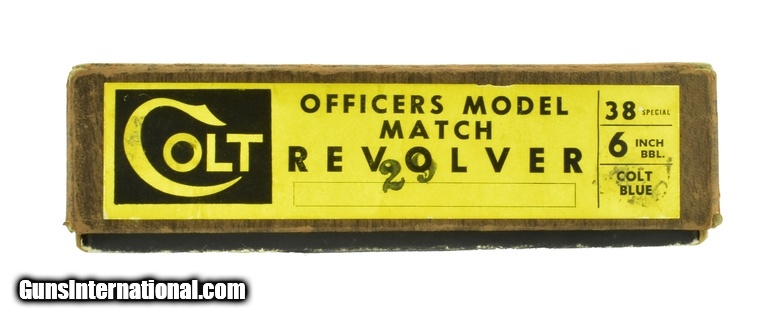 Description: Colt Officers Model Match .38 Special caliber revolver. 5th Issue target model made in 1969. Excellent condition with box.