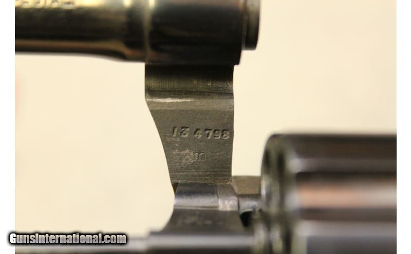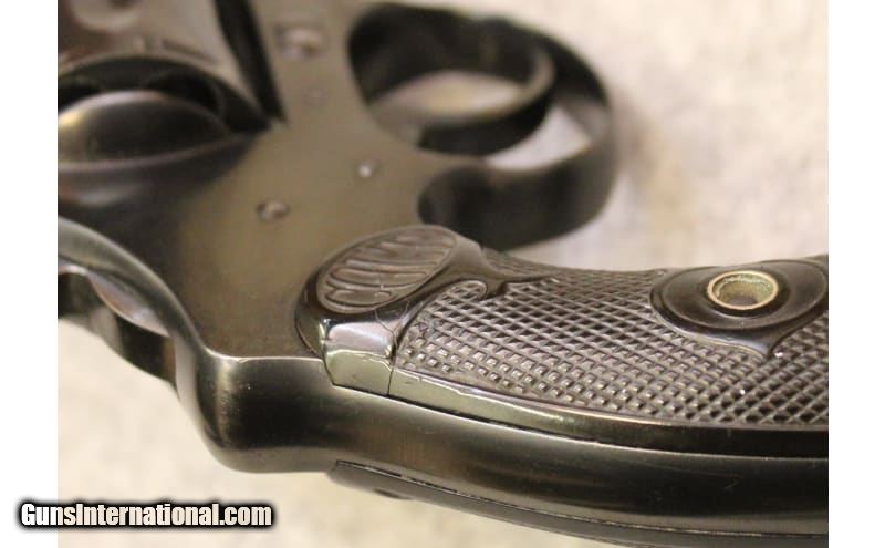 Description: This Colt Police Positive chambered in .38 Special has been reblued, there is crack in the right grip panel, barrel does have some pitting, and the lockup is tight. .38 Special SOLD Metal Condition: Good Bore Condition: Dull and some pitting. Barrels: 4 Inches Weight: 1.3 lbs. Item Location: Hoffman Estates, IL |