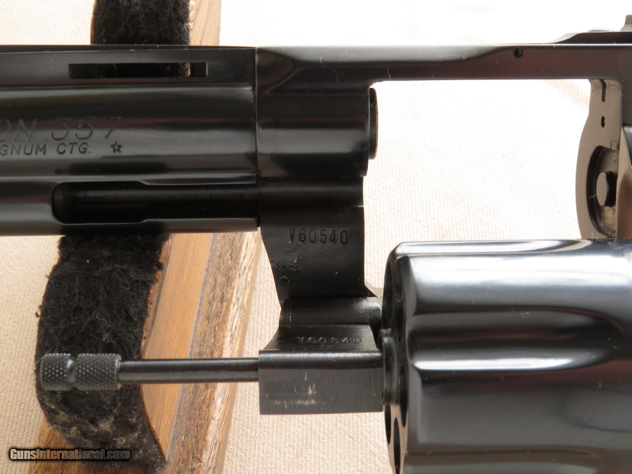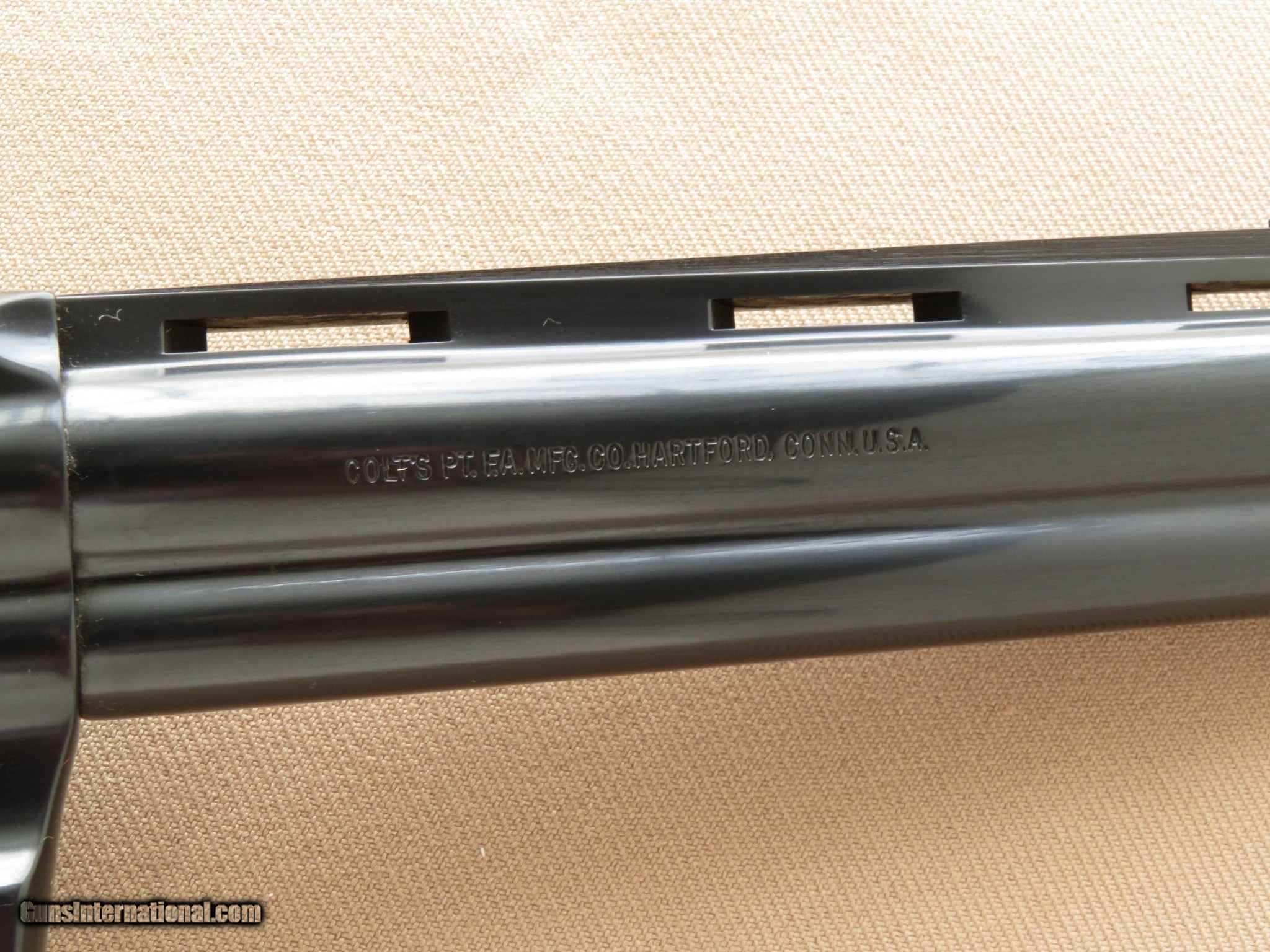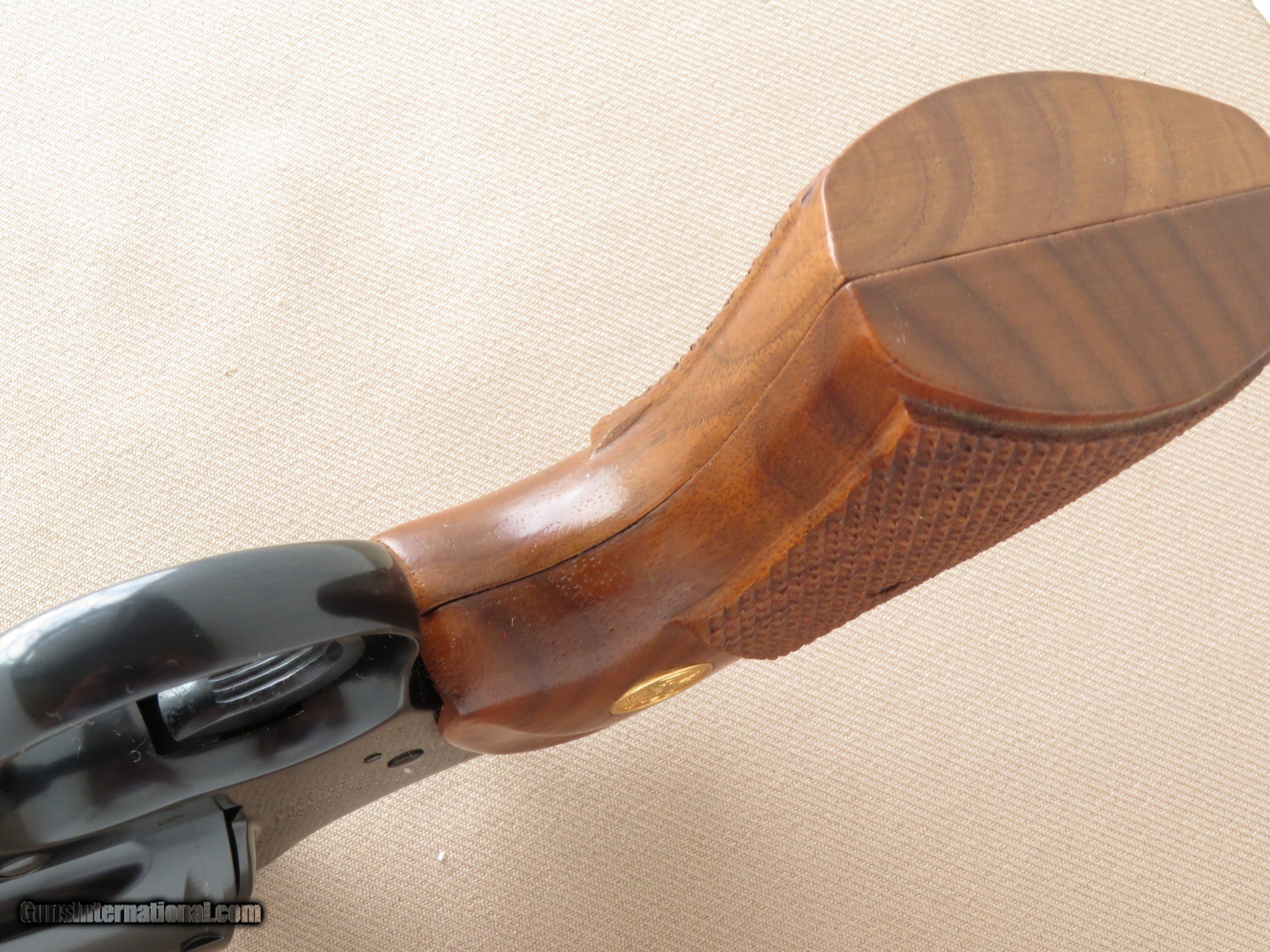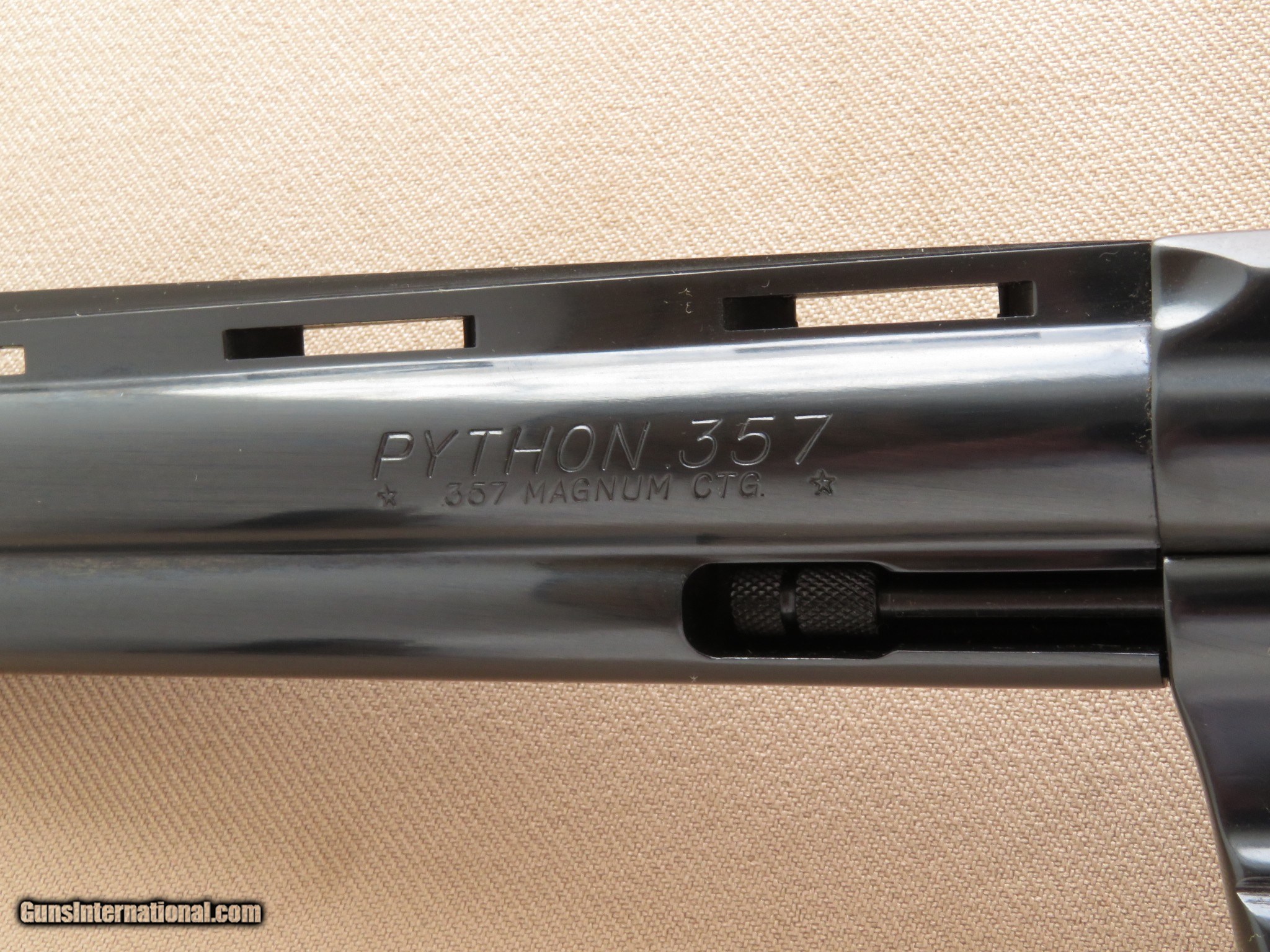 Description: Beautiful blue Colt Python .357 Magnum with 6" barrel, and original factory grips. Manufactured in 1974, this python is in excellent original condition with a shiny bore and clean chambers. The action locks up tight and is in perfect time. The original blue finish shows little to no wear. The frame and cylinder are very clean and the overall finish would still rate at 98+%. The grips are just as clean as the gun. This revolver has been fired but very little based on its appearance. This is a clean Python that is sure to only increase in value. Sorry no box or paperwork.. PRICE: **SOLD** We are Antique & Modern Firearms in Lexington, KY, a dealer of fine firearms since 1974. To Inquire please call 859-276-1419 We Buy, Sell, and Trade Firearms & Knives. Do you have an Individual Firearm, Firearms Collection, or Firearms Estate to sell? Give us a call or send an email, and we can talk about buying the item(s) outright or selling them on consignment for you. NOTE: No additional fee for a Credit Card payment SOLD Handgun Caliber: .357 Magnum Manufacturer: Colt Model: Python Serial Number: V60540 Barrel Length: 6 Condition: Excellent |