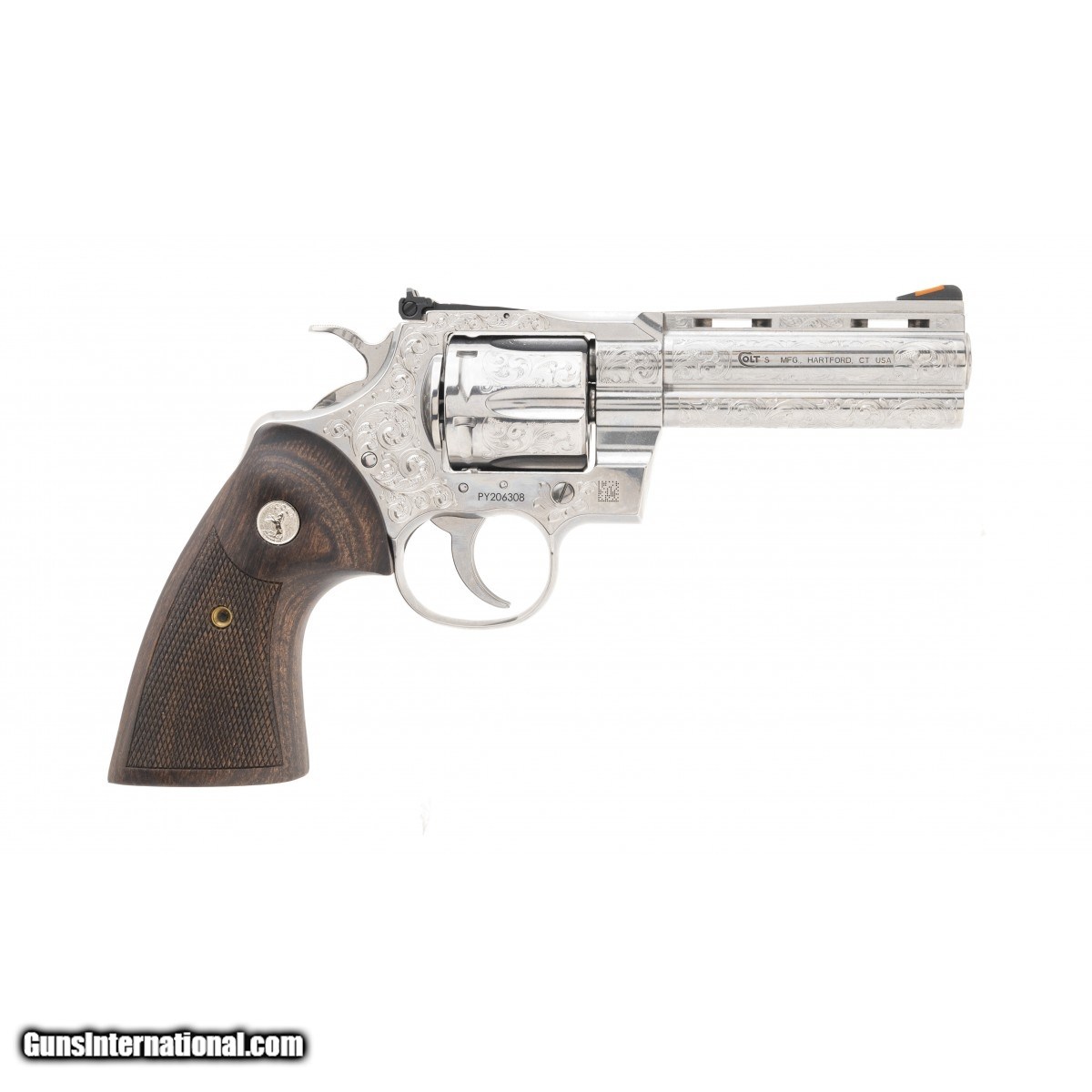 Description: " 2020 factory engraved model with a 4"" barrel and checkered wood grips. Comes with adjustable rear sights and orange ramped front sight. NEW. SOLD |