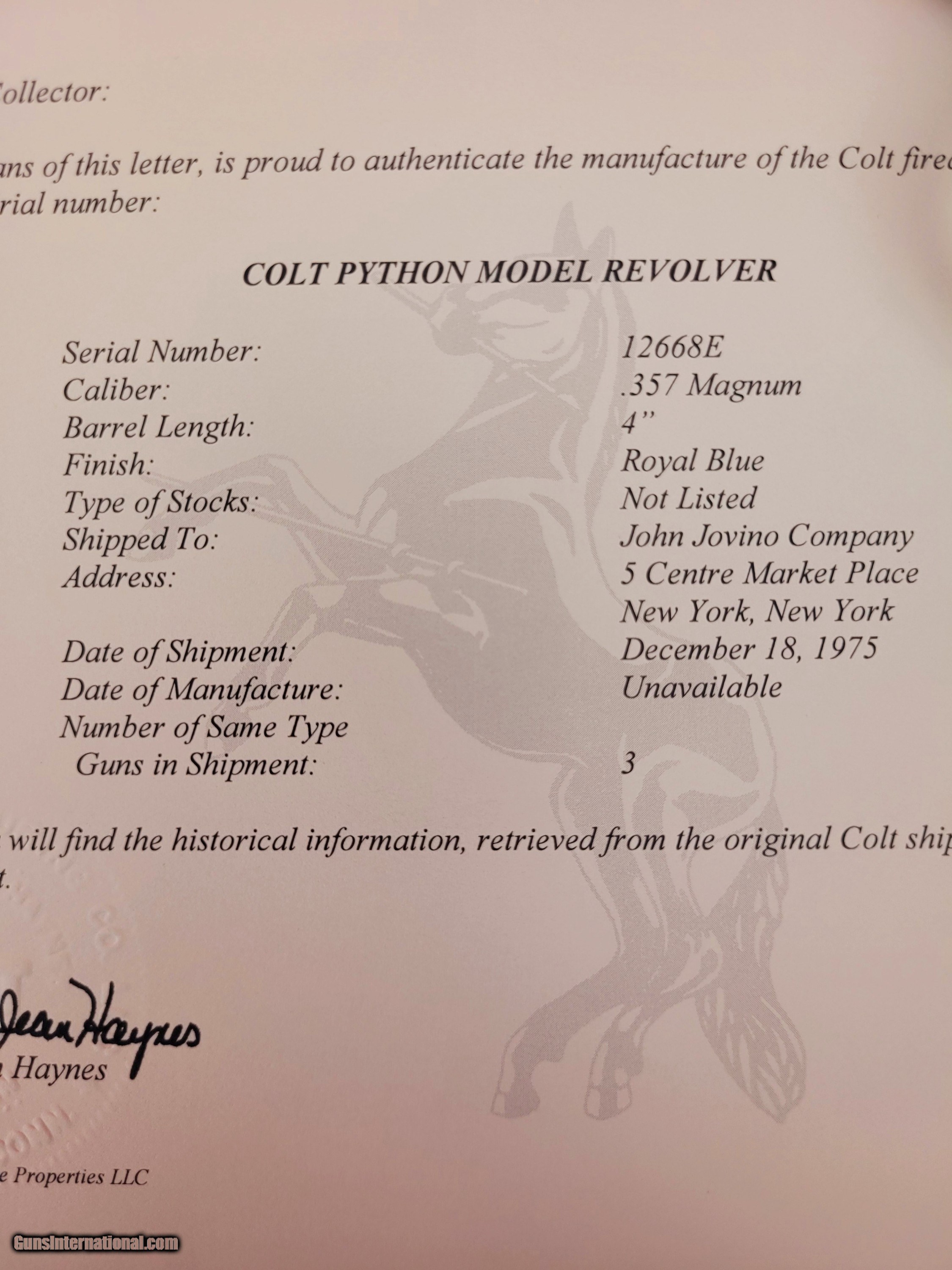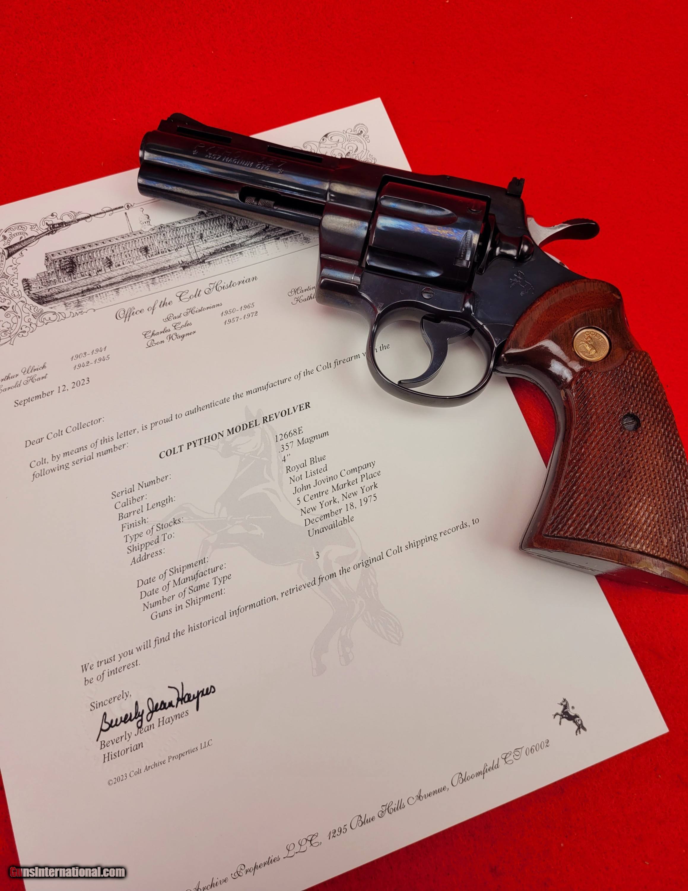 1975 4" Colt Python - Lettered John Jovino Co. NYC - Excellent Condition