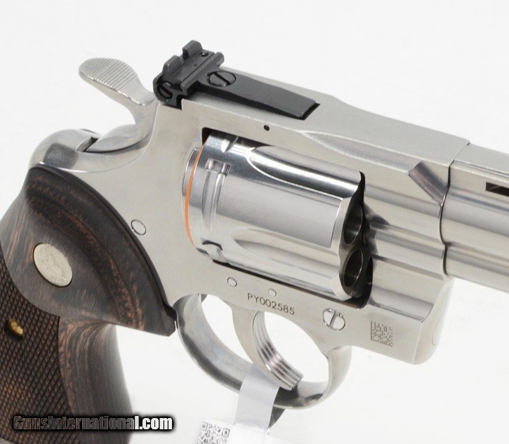 Description: BRAND NEW Colt Python .357 Mag SP6WTS 6 Inch. In Blue Hard Case AVAILABLE FOR PURCHASE AT OUR ON-LINE STORE We are proud to offer a selection of the New Production Colt Python. In Stock! The Python is back! Building on Colt’s Snake Gun legacy, the legendary double-action revolver returns in stainless steel in 4.25” and 6” barrel lengths. The New Production Python features modern stainless steel alloys and a re-designed rear sight. Thirty percent more steel beneath the rear adjustable target sight gives you a stronger revolver and more robust shooting experience. A recessed target crown, user-interchangeable front sight, and Walnut grip with the iconic Colt medallion make this a gun you’ll want to shoot AND show off! The photos in this ad may be stock and thus the serial number on the firearm may not reflect the one on the revolver you will be receiving. The Serial Number for this revolver is, PY257242