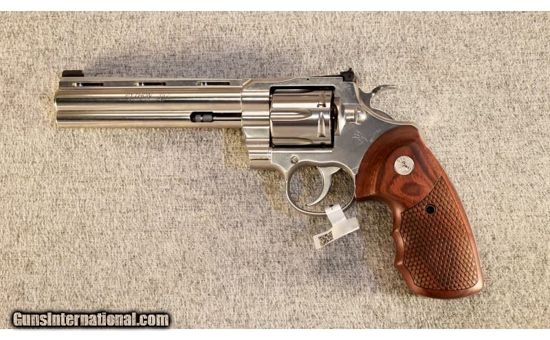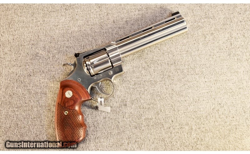 Description: This is a factory direct Colt Python in .357 Magnum with a six-inch barrel .357 Magnum SOLD Metal Condition: Very good with a few small scratches Wood Condition: Very good with a few small scratches Bore Condition: Clean with bright lands Barrels: 6 Triggers: DA/SA Butt Pad: Scaled laminated wood Weight: 3 lbs. Sights: "Brass beaded blade front, adjustable rear Item Location: Glendale, AZ |
