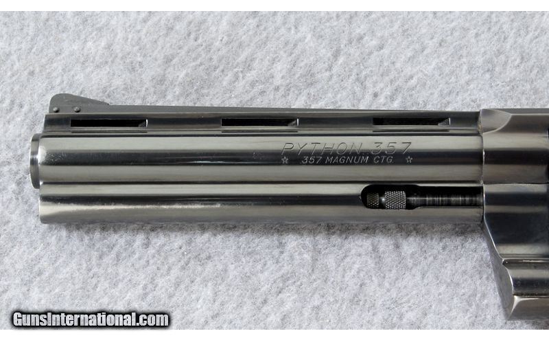 Description: The Colt Python is arguably one of the finest revolvers ever manufactured. It is known for its deep lustrous high polished blue finish and smooth as glass trigger pull. This Python has seen plenty of time in a holster. The action is well timed and locks tight. If you want a Python that you can carry and don't need to baby; this Python is for you. Manufactured 1969 .357 Magnum SOLD Metal Condition: "Good with holster wear on the barrel, frame and cylinder. Wood Condition: "Good with wear on the edges, scratches, small dents and few chipped points in the checkering Bore Condition: "Very good, bright and sharp Barrels: 6 inch full lug barrel Triggers: Double action Weight: 45 oz. Sights: Adjustable rear sight with ramped blade on vent rib Item Location: Lehi, UT |