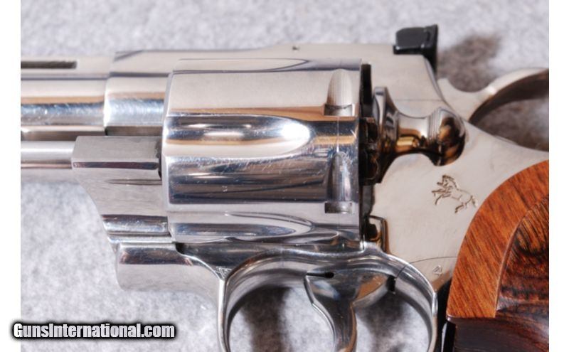 Description: Super nice Python Elite in Hi-Polish stainless steel SOLD Manufacturer: 1998 Caliber Info: .357 Mag. Chambers: 6 Slight turn ring Metal Condition: Good with normal handling marks Wood Condition: Execellent, Walnut Bore Condition: Excellent Barrels: 6" vent rib Triggers: Factory Stock Dimensions: Walnut Weight: 2.5 Lbs Sights: Blade front with red inset, adjustable U notch with white outline. Drilled & Tapped Item Location: Rapid City, SD |