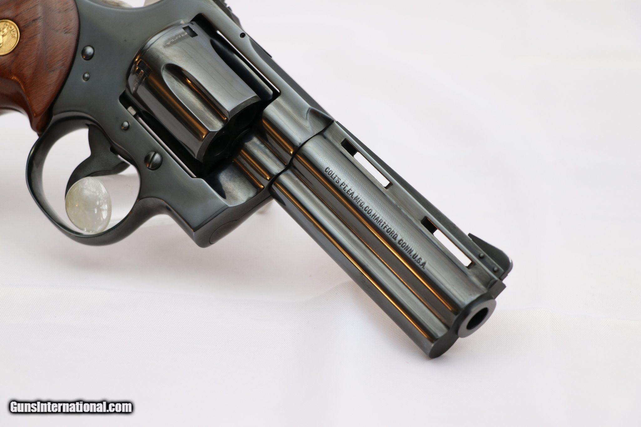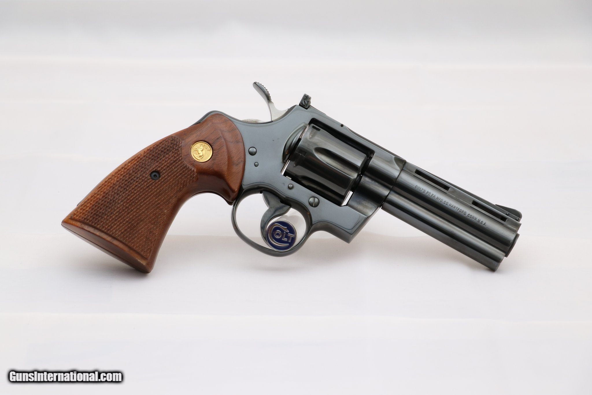 Description: Guns Listing ID: 1349981 Colt Python 4\" Royal Blue 1974 This beautiful revolver is in excellent condition. It features a 4\" barrel and deep royal blue finish. SOLD Manufacturer: COLT Model: 1974 PYTHON Caliber Info: .38 SPECIAL/.357 MAGNUM Condition: Used - Non-Certified Barrels: 4 BARREL Finish: BLUE |