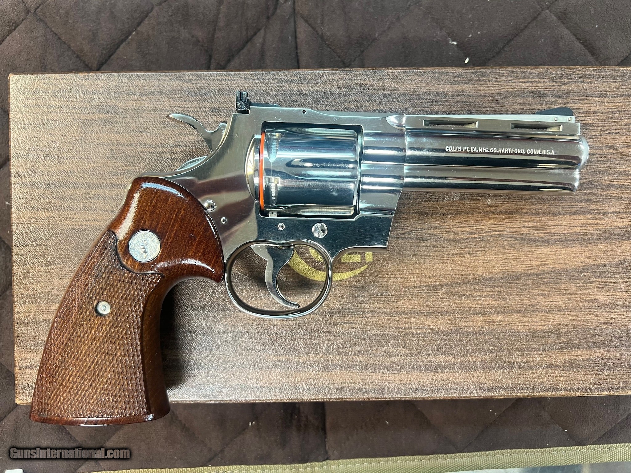 Description: Guns Listing ID: 1138199 1972 python unfired in the box. Box is in excellent condition as well as the gun. Nickel has no flaking or issues. SOLD Manufacturer: COLT Model: PYTHON Caliber Info: .357 MAG Condition: Used - Non-Certified Barrels: 4 BARREL Finish: NICKEL |