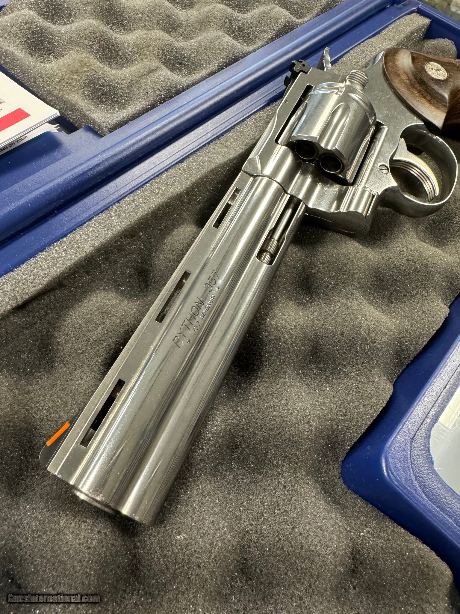 Description: Guns Listing ID: 1343790 Excellent condition, nearly new Safe Queen Includes the firearm, original box and paperwork! SOLD Manufacturer: COLT Model: PYTHON Caliber Info: .357 MAG Condition: Used - Non-Certified Barrels: 6 BARREL Finish: NICKEL |