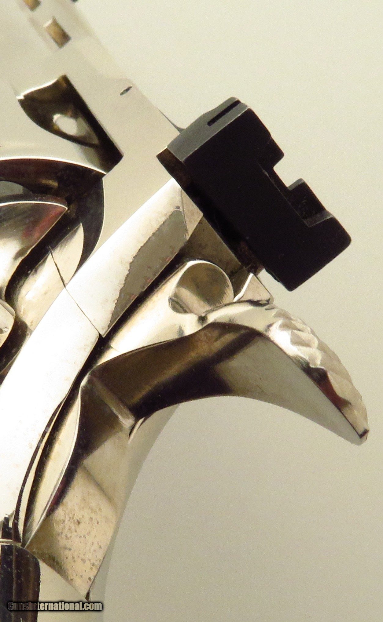Description: Colt Python .357 Magnum. Made in 1976, serial 24101E (with "H" under serial) has a 4-inch barrel and nickel finish. No box or papers. CONDITION: Clearly seldom fired, the bore is pristine. Trigger pulls are outstanding. The cylinder rotates without stutter and locks up tighter than Biden's medical records. Finish is at least 95 percent with a ghosted turning ring, a small area of light clouding at the top of the grip and trace rubbing. Grips are approximately 98 percent. The price is firm and layaway is available. $2,500 plus shipping. SOLD Handgun Caliber: .357 Magnum |
