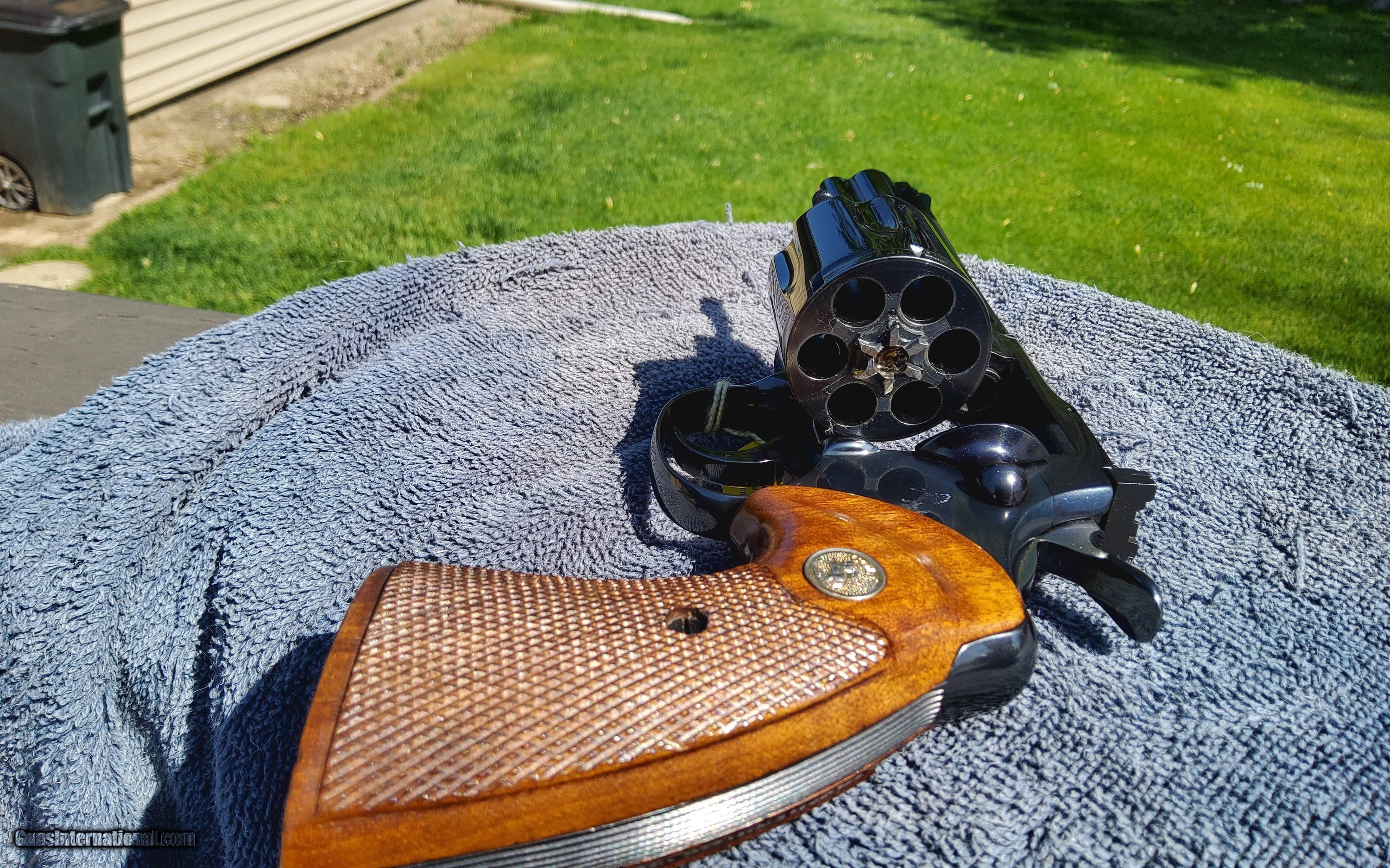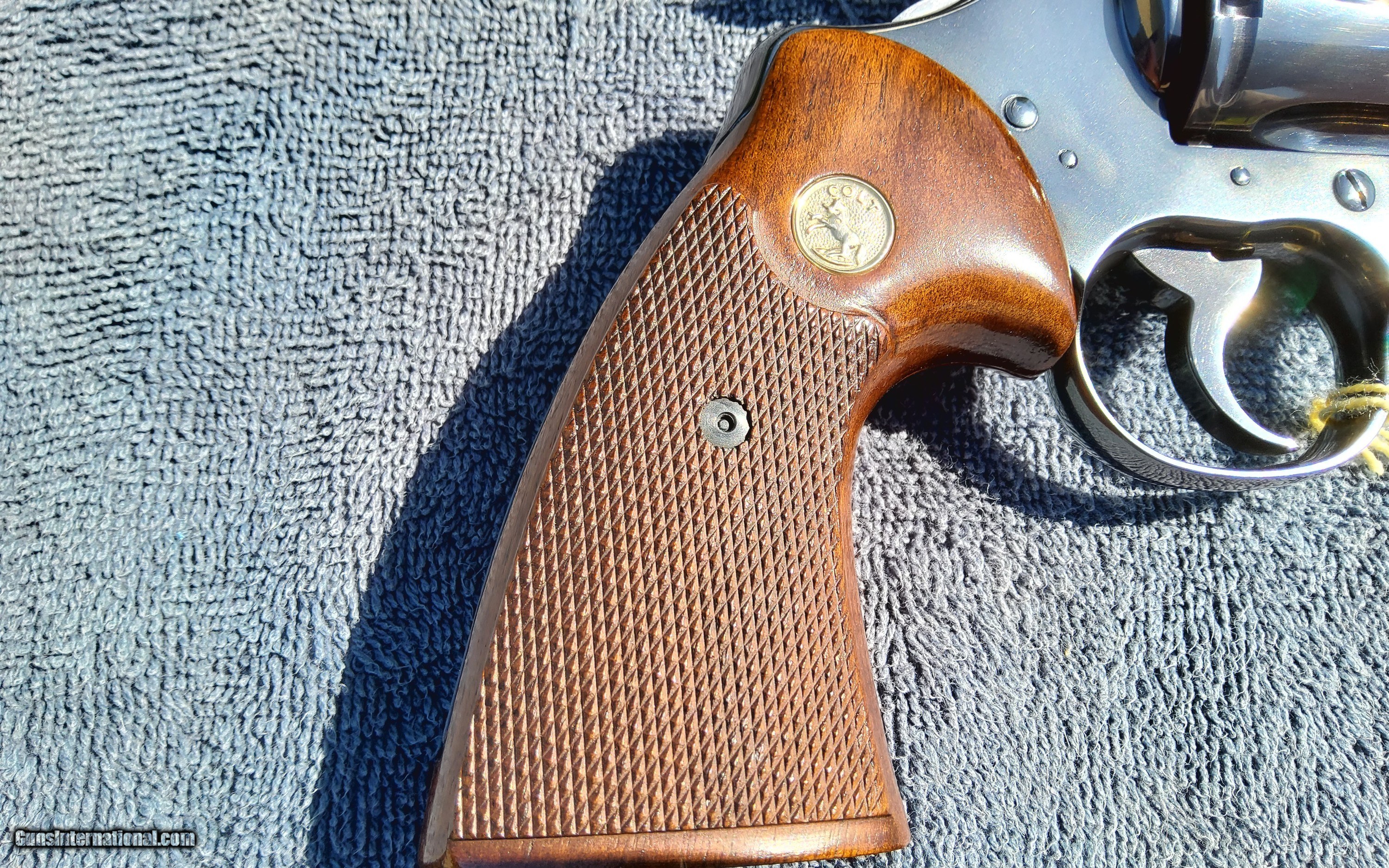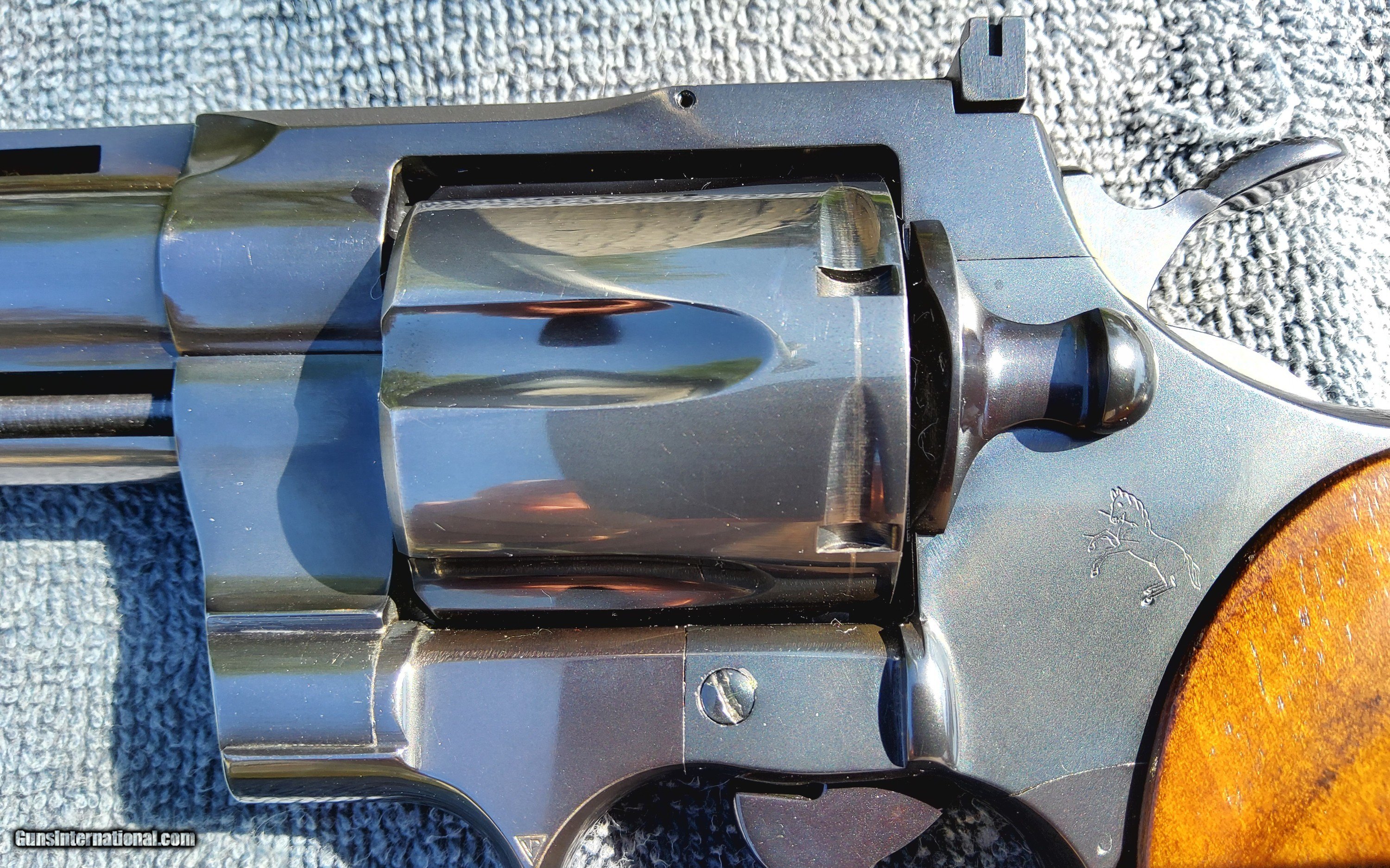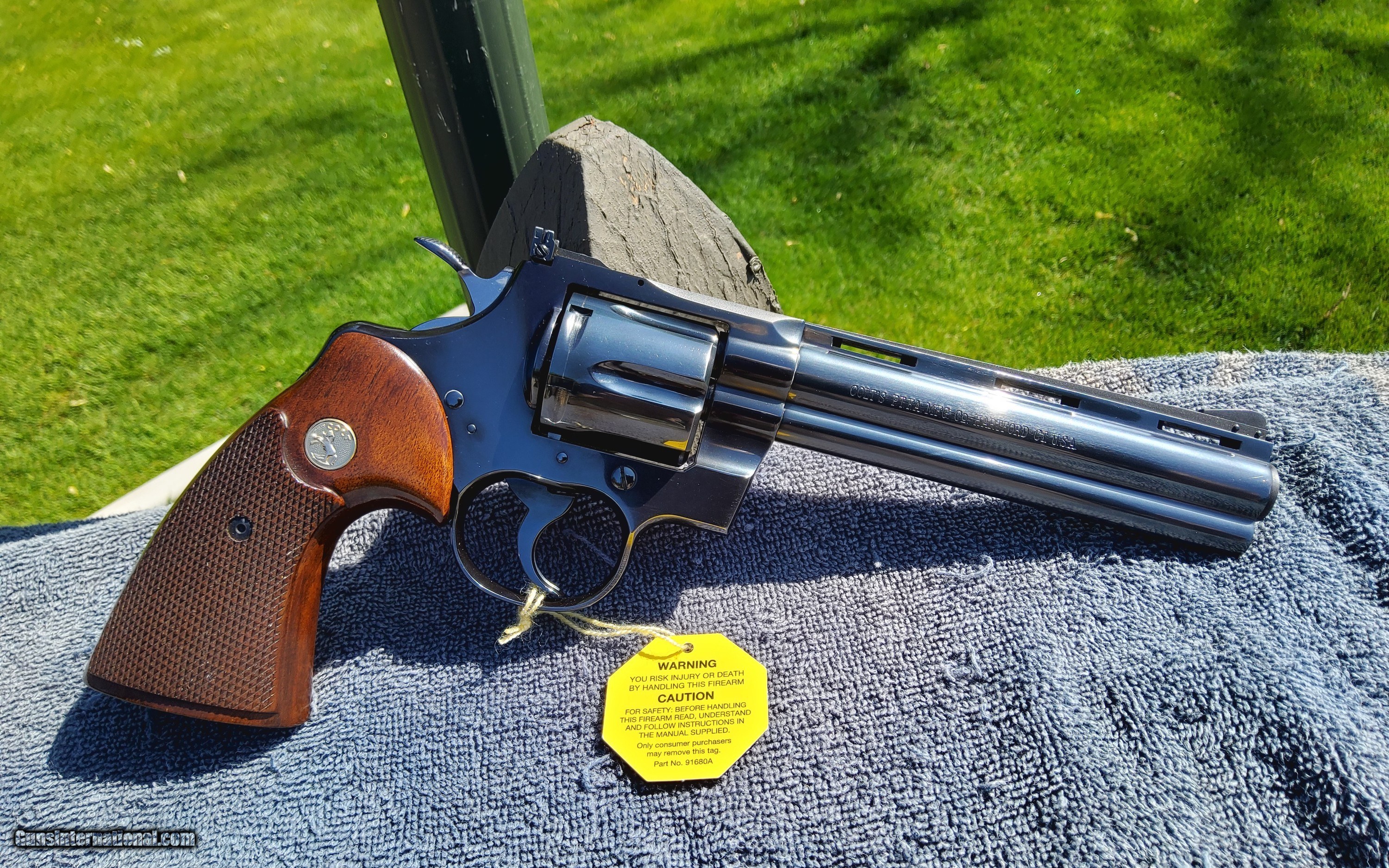 Description: Colt python from 1970 New old stock. Has original Box everything it came from the factor with it The gun looks completely on fired minor scratch Light. on the cylinder from the factory testing. It grips grips are also mend condition. Still has original Hand tag the trigger guard. Definitely will not be disappointed in this one. This is a highly solid after collector pistol. SOLD Curio/Relic: Yes Rifle Caliber: .17 Hornet Handgun Caliber: .357 Magnum Manufacturer: Colt Model: Python Serial Number: E12582 Condition: Mint Metal Condition: Mint Wood Condition: Mint Bore Condition: Mint |