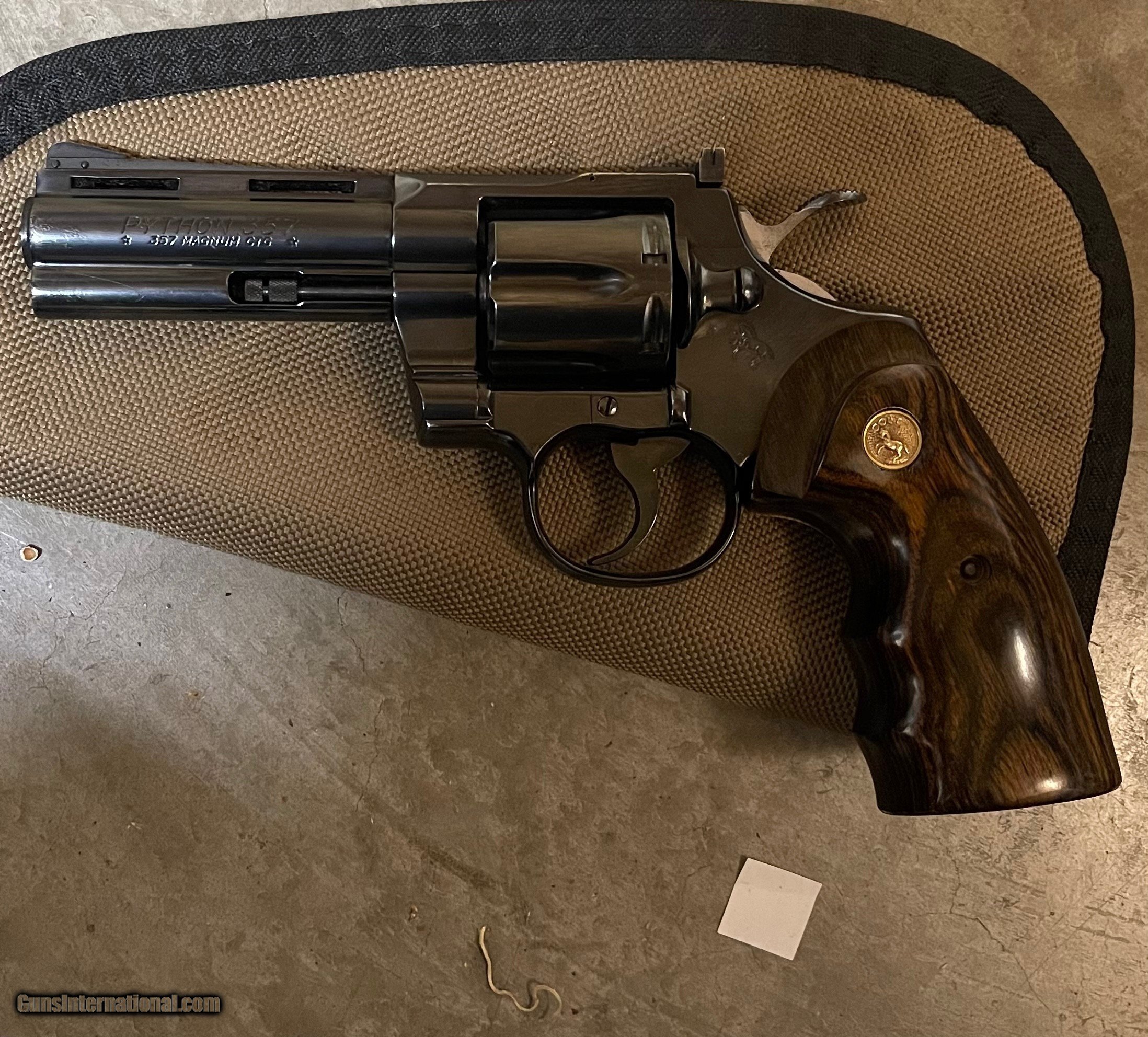 Description: Very nice shooter python. This 4 inch 357 has the full target features: hammer, trigger, and after market combat grips. Some light pitting on the end of the left side of the barrel. Still, a very nice gun. Please email with questions. Shipping and insurance included (west coast add $75). Cash app, Venmo accepted SOLD Manufacturer: Colt Model: Python Barrel Length: 4 inch Condition: Used Metal Condition: Very good Wood Condition: Excellent Bore Condition: Excellent Action: Da, sa Rib: Ventilated Finish: Blue Sights: Target Item Location: 37075 |