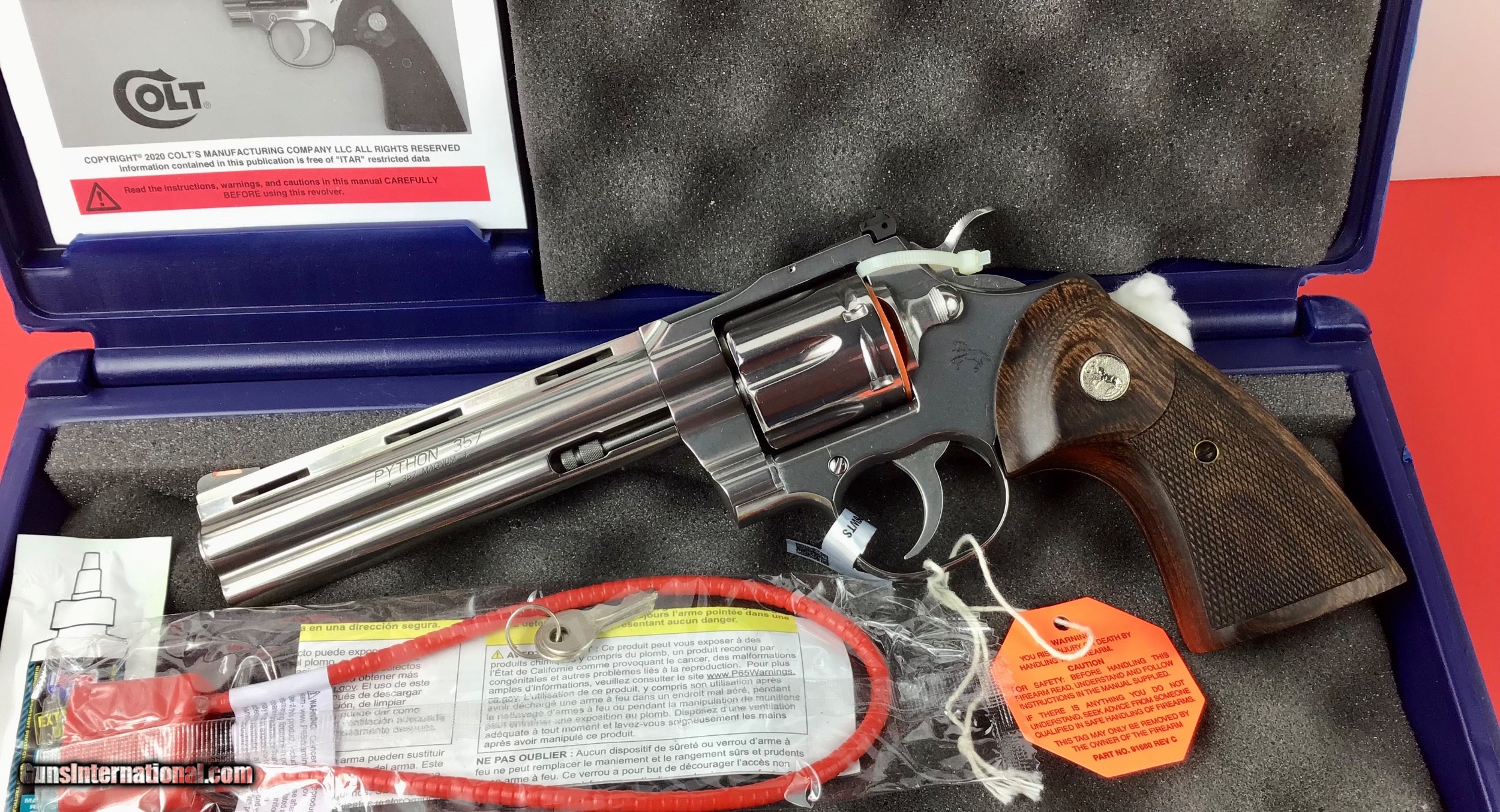 Description: Sold pending funds Cole W. Colt Python new model, 6" barrel, 357 magnum, purchased early 2022, never fired and unturned since leaving Colt. Colt blue plastic case, hang tag and all papers. Ships from my FFL to yours $49, no sales tax. SOLD |