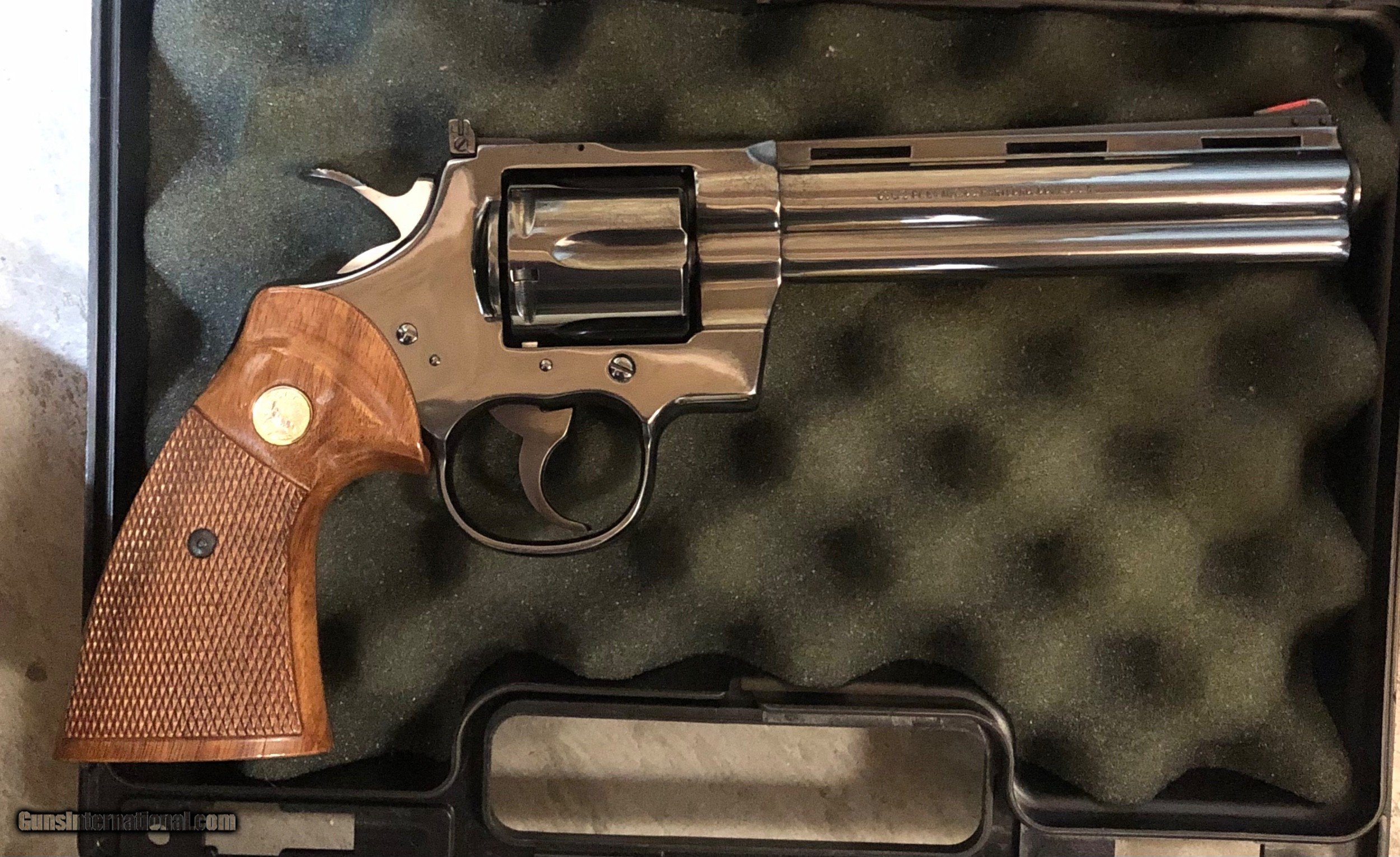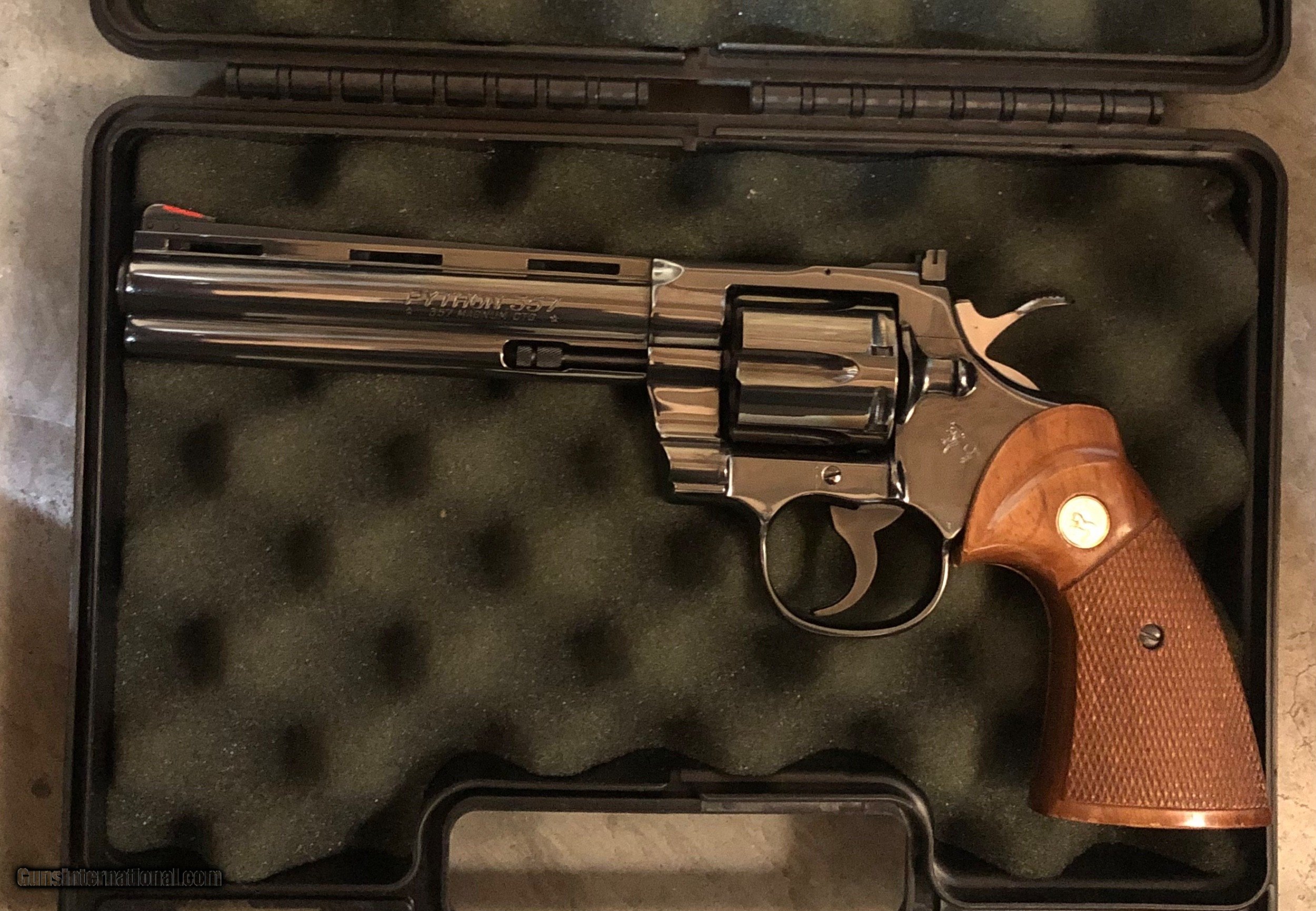 Description: A fine python in excellent condition. Blue finish, 6 inch barrel, wood grips, red ramp front and white outline rear sights. Gun is in 98% condition. No box. Please email with questions. Shipping included (west coast add $75). Cards add 3% SOLD Manufacturer: Colt Model: Python Barrel Length: 6 inch Condition: Used Metal Condition: Excellent Wood Condition: Excellent Bore Condition: Excellent Action: Da, sa Rib: Ventilated Finish: Blur Sights: Target Manufacture Date: 1981 Item Location: 37075 |