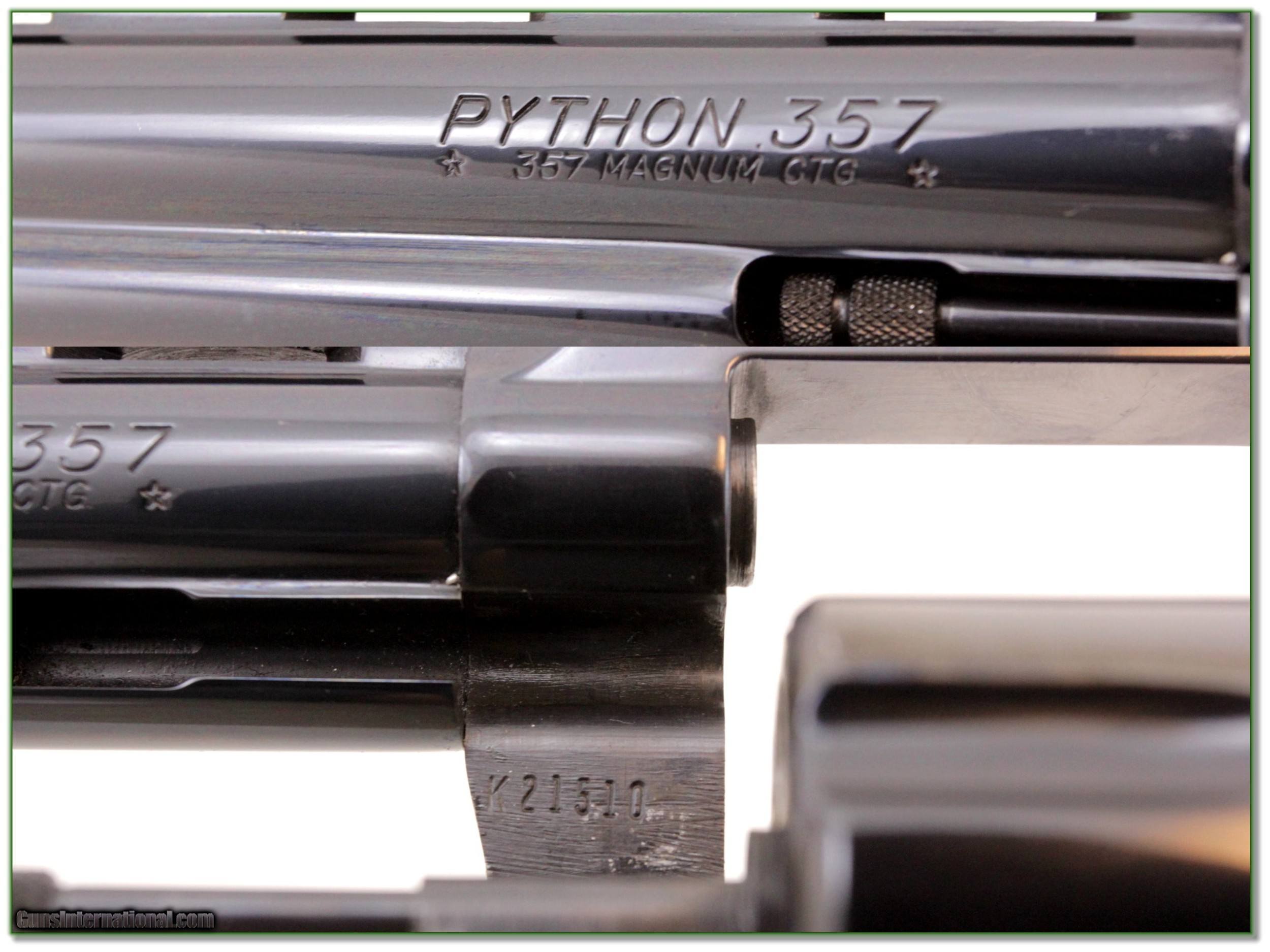 Description: This is an excellent condition Colt Python 6in. It was made in 1981 and has very light use with just a couple minor marks. Will make an excellent Python to shoot or collect! I am selling this one on consignment and as such lay-a-way can’t be used. It does of course have the standard 3-day inspection. Shipping and insurance is $39. Please email me with any questions or larger pictures. (Consign your quality firearms with Shooting Investments for only 12%! Let me know if you have any you would like to sell!) 19-0458 Payment: Payment is by Money Order, Cashiers Check or Personal Check. I can now also accept Credit Cards (MasterCard, Visa, Discover & American Express) with a 3% convenience fee. PayPal can be used for some items but never for firearms. Shipping: The shipping charge will be listed in each description. It is $39 for most firearms. Some heavy guns or those insured for over $2000 will be higher. Shipments to Alaska and Hawaii are higher because air shipment is required. Most firearms are shipped on Tuesday and Thursday and usually in 5 days of receipt of payment. We package all shipments carefully and insure them. Optics are shipped Priority Mail and most other non-firearm shipments are shipped First Class. Returns: Our return policy is simple. If for any reason you are not pleased with your purchase, you may return your item for a full refund of purchase price. Ammunition cannot be returned. It is important to us that you are happy. Guns cannot be fired or dissembled before returning them and they must be returned in the same condition as received. Notification of a return must occur with-in 3 days of receipt at your dealer. Shipping, convenience and dealer fees are not refundable and are the responsibility of the buyer. Lay-a-way: If needed, we offer a 60 day lay-a-way option on most firearms. It is 1/3 now, 1/3 in 30 days and 1/3 in 60 days. Lay-a-way firearm sales are final and if not completed the first payment cannot be returned. Consigning your firearms with Shooting Investments: We will help you get top dollar for your firearms. While most local guns shops charge 20% or more, our fee is only 12% with a minimum of $75. At your local gun shop it might take months to sell. Selling on-line provides instant access to thousands of interested buyers. You won’t find any other on-line dealer willing to sell your firearms for only 12% or listing every gun on 3 separate s. Selling through an House typically costs the seller 15% and the buyer an addition 15% (so 30%) and you have to wait several months to sell and longer to receive funds. If properly priced, we will sell your firearms in a few weeks. Send us an email or give us a call and we’ll explain how easy it is for you to get top dollar. Trading: Trading for use is really just buying your gun to re-sell. If you have a gun you want to trade, please email a picture and we will let you know what we can give or it. You will always get more if we sell it for you on consignment. Help for California Buyers: We are happy to ship to California. It is the buyer’s responsibility to make sure any item you buy is legal in your state. We are also happy to help with your purchase of a firearm from someone other than us. If you see a gun you would like to buy but the seller can’t or won’t ship to California they can ship to use and we’ll then ship it to your California dealer. The cost for this service is only $30 + shipping. Let us know if we can help! SOLD |