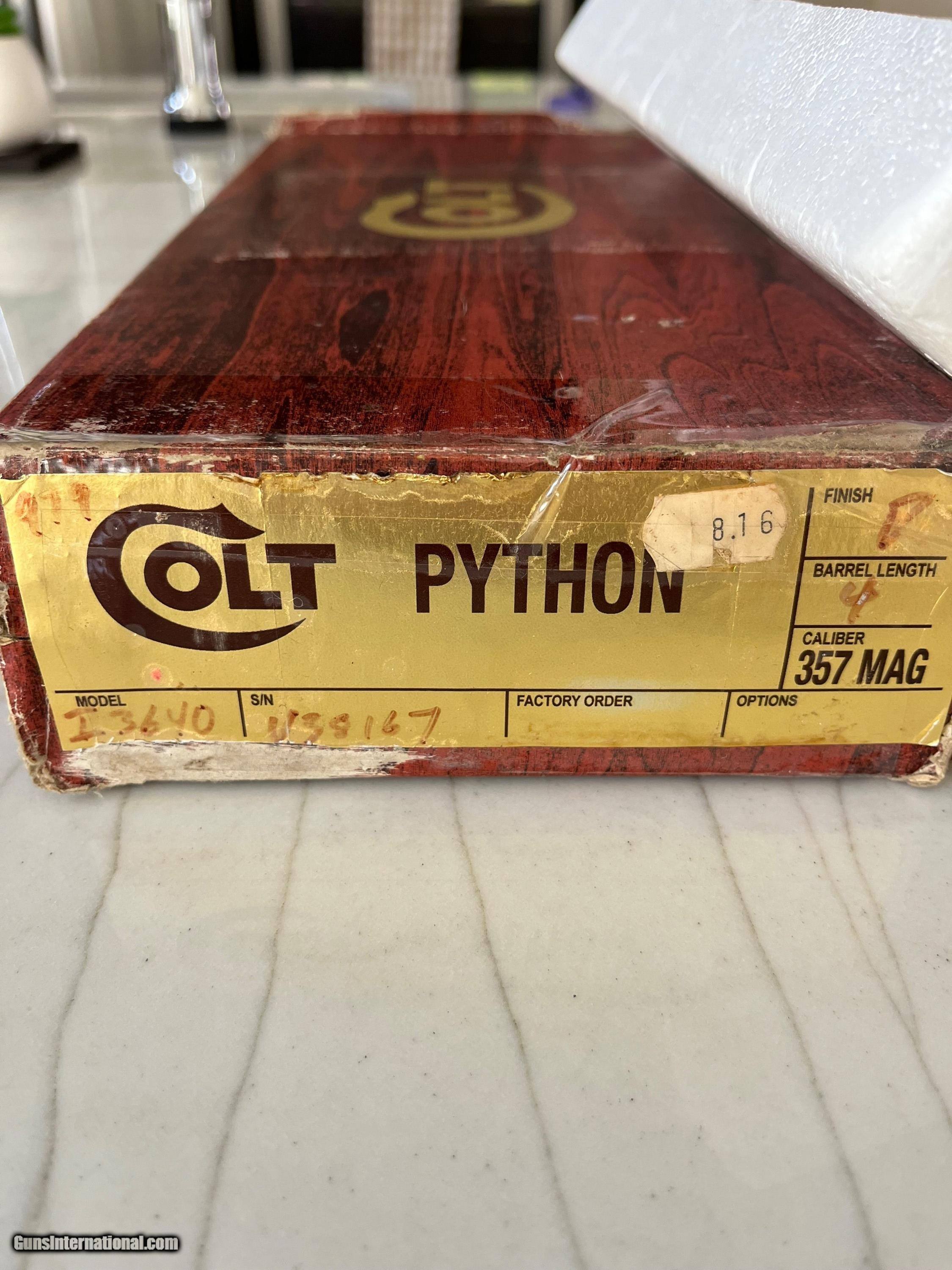 Description: SOLD This revolver is in MINT UNFIRED condition. No drag line etc. 4 inch barrel and gloss finish...No dings or dents or issues of any kind.... ANIB..Pictures tell all. $4990 SOLD Buyer and seller split shipping. SOLD Handgun Caliber: .357 Magnum Manufacturer: Colt Model: I 3640 Serial Number: V 38167 Bore: Mint Condition: Mint Metal Condition: Mint Wood Condition: Mint Bore Condition: Mint Finish: Blue Manufacture Date: 1979 Extras: Paperwork |