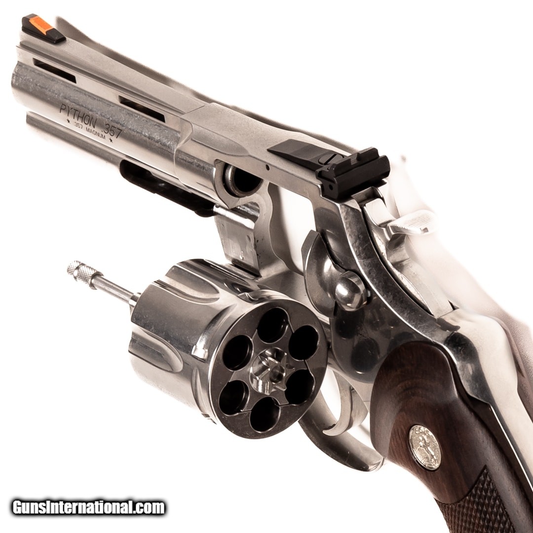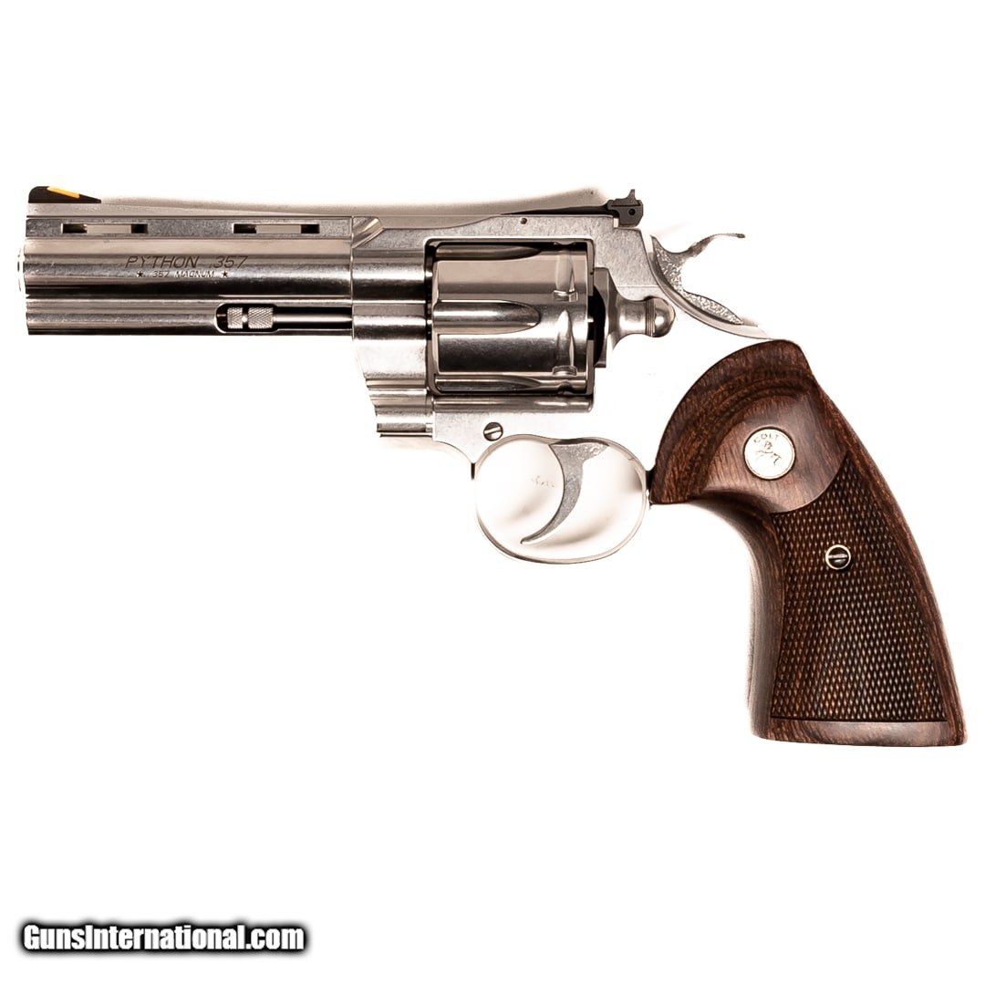 Description: Guns Listing ID: 818531 A classically designed revolver with a unique look and ultimate reliability, the Colt Python offers six rounds of 357 Mag. The Python is described by some as the finest production revolver ever made and has made an appearance in countless movies and television shows. Although popular, it was discontinued in 1999 after more than four decades of production, but recently was brought back into production again. This Python 357 includes the original case and owner‚‚s manual. Serial number: PY276516 Get the best bang for your buck when you get a Certified Used Firearm . When you see the Certified Used stamp on any of our firearms, you can be confident that you’re getting exactly what you want – a gun only in very good to excellent condition and held to the highest quality standard. All Certified Used Guns come with a ‘no questions asked’ return policy . PLUS, ALL CERTIFIED USED GUNS SHIP FREE SOLD Manufacturer: COLT Model: PYTHON 357 Caliber Info: .357 MAG Condition: Used - Certified Barrels: 4.2 BARREL Finish: STAINLESS |