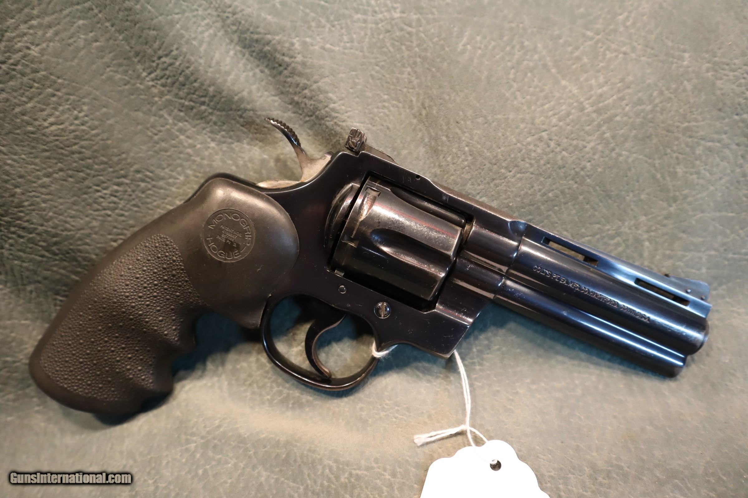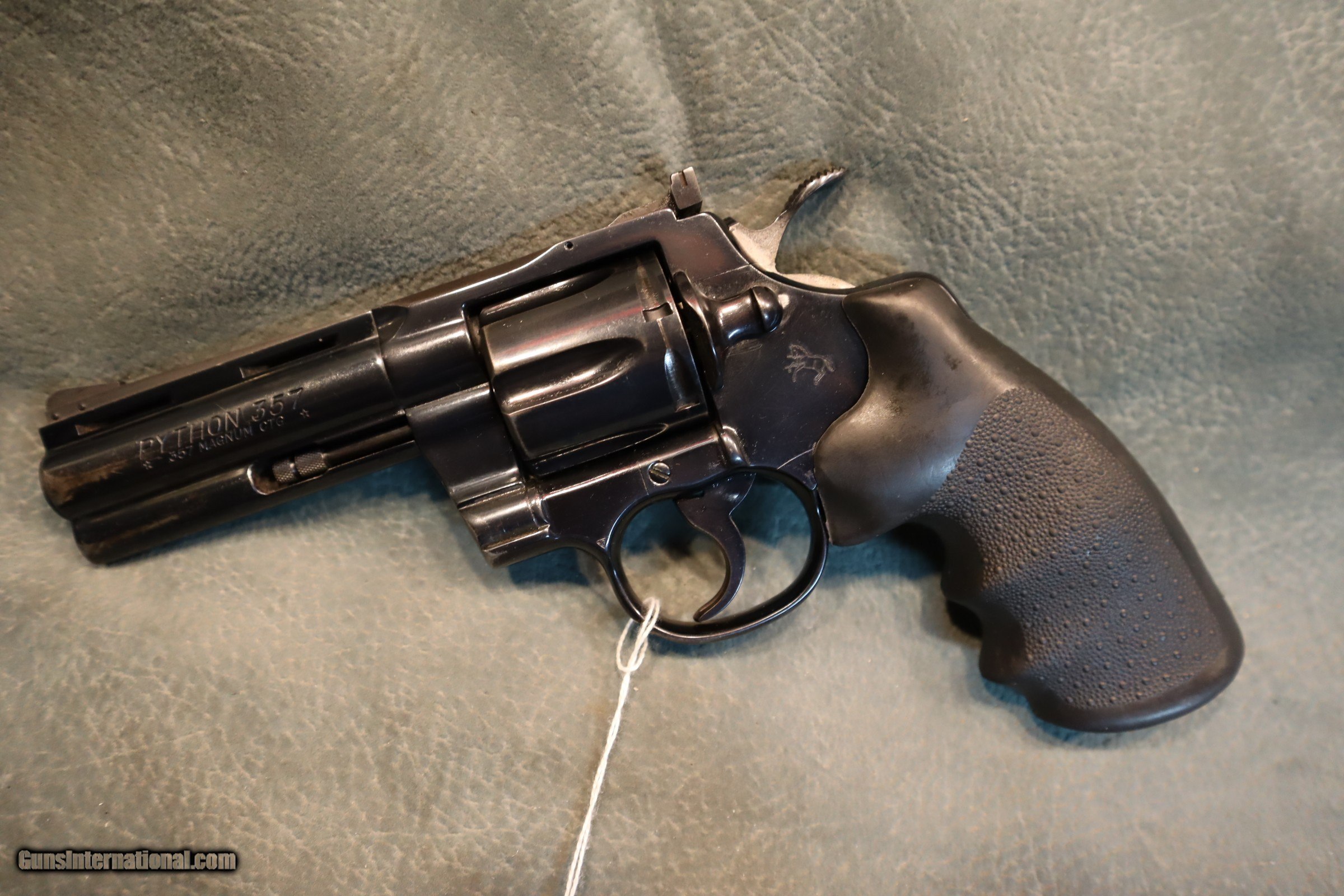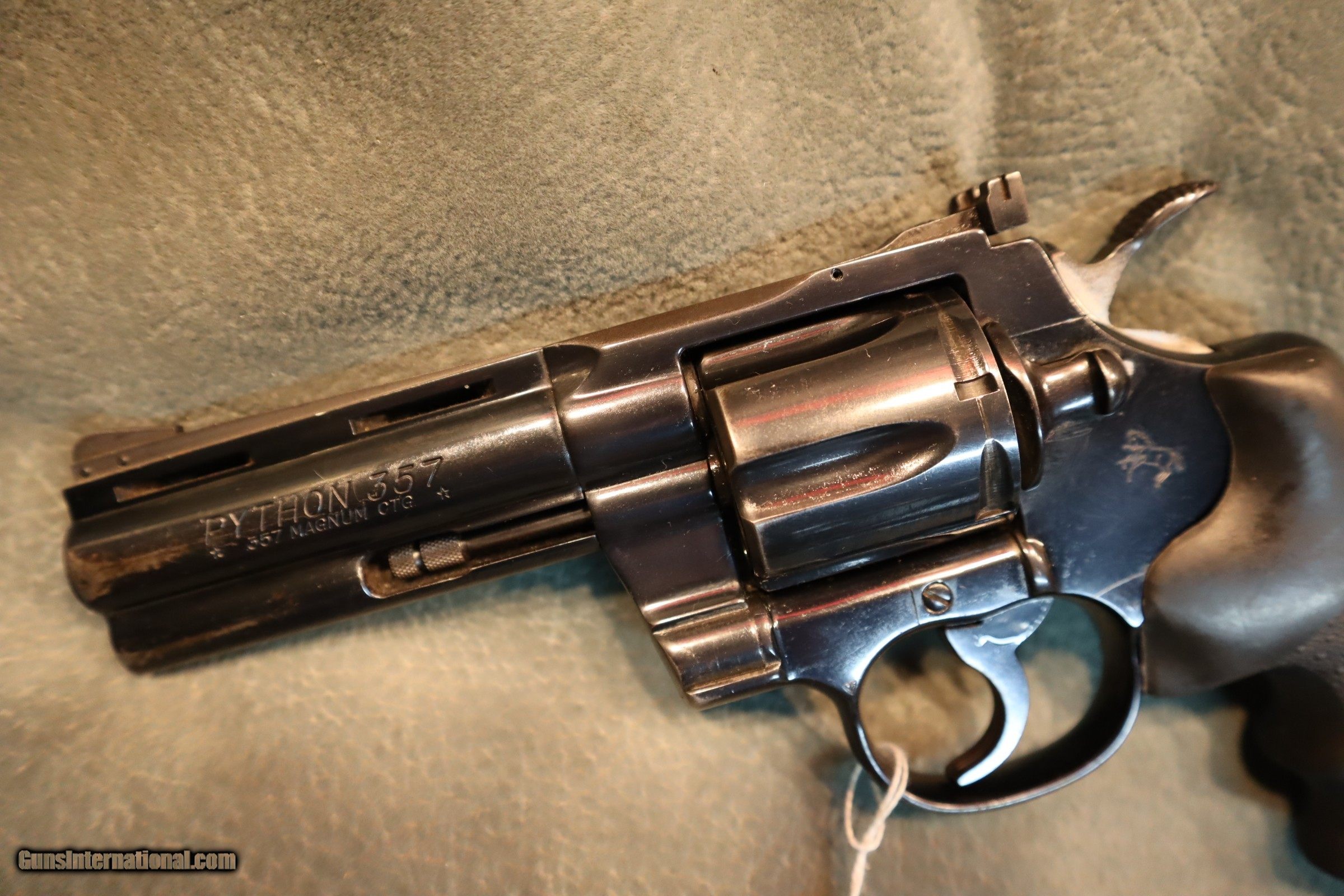 Description: Colt Python 357Mag 4" barrel,serial #V91563,made in 1979. GUN COLLECTIONS WANTED FOR CASH! We buy, sell, consign and trade new and used firearms.We will pay finders fees and travel for large collections. This is our 47th year in business. We offer 90 day layaways with 20% down. No return on layaways. Firearms will need to be transferred through a FFL dealer. Prices reflect a cash discount. There will be 3% added to credit card sales. We trade for gold and silver. THANK YOU! SOLD |