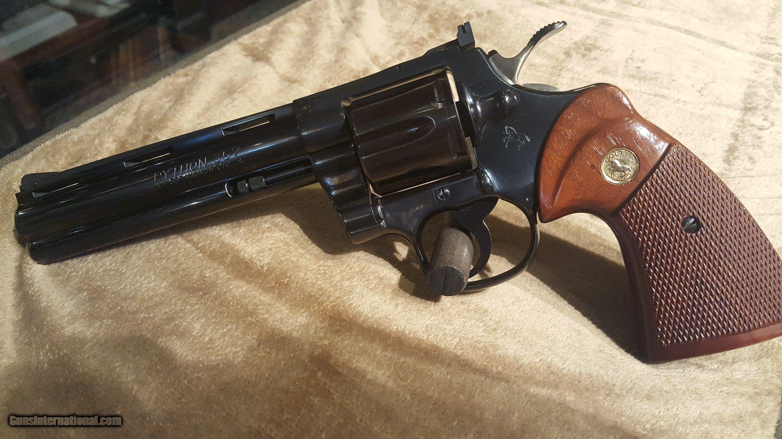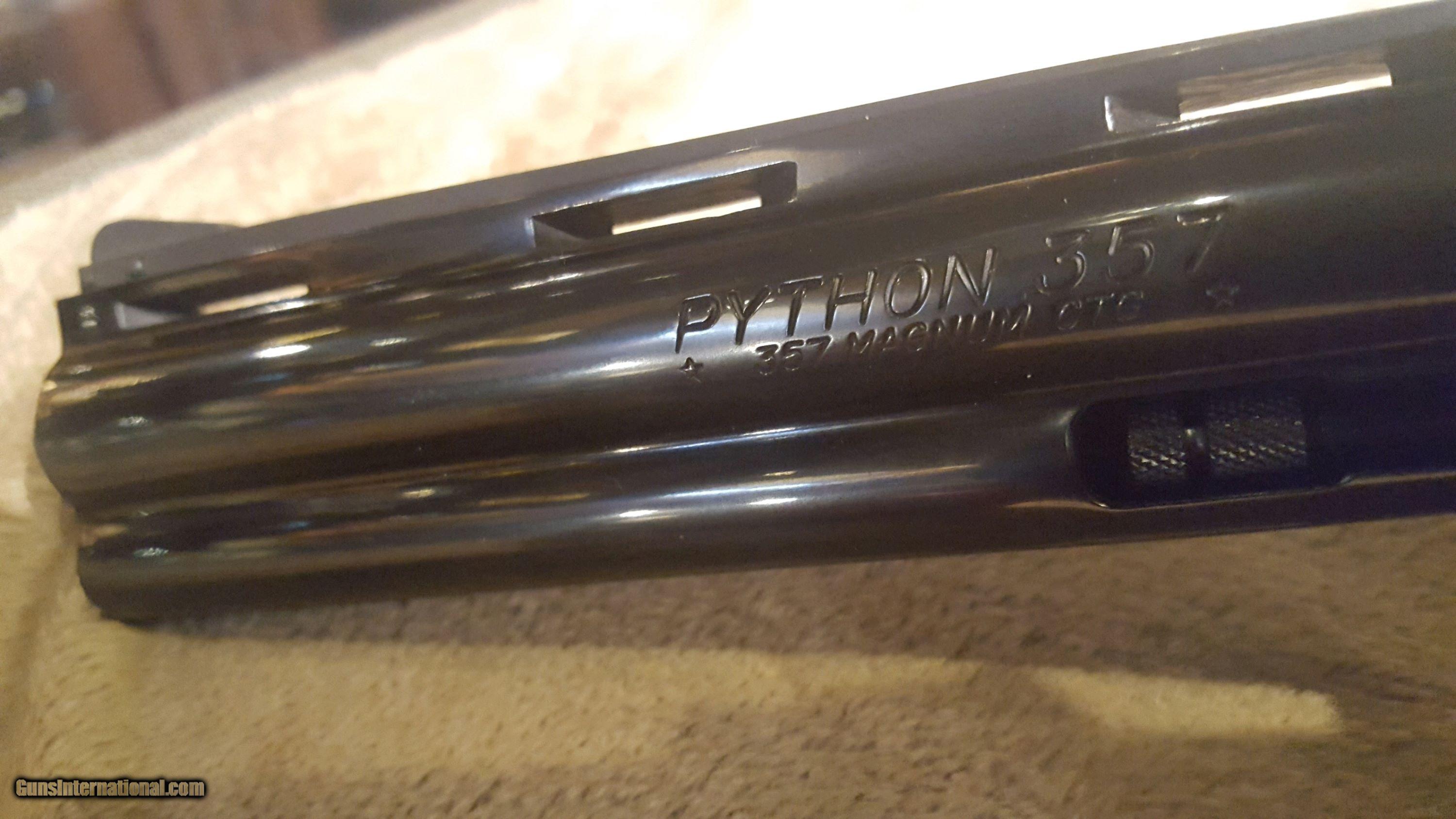 Description: 1980 Colt Python 6" Blued Unfired! No Box. Comes With Colt Bag.Cylinder has been turned slightly, otherwise perfect! A must for any Colt enthusiast!! SOLD Manufacturer: Colt Model: Python Serial Number: K14252 Caliber Info: .357 Mag Condition: 99+% Barrels: 6 Action: Revolver Finish: Blued Weight: 2lb 12.3oz Manufacture Date: 1980 Case: Factory Bag Item Location: Springfield Mo. |
