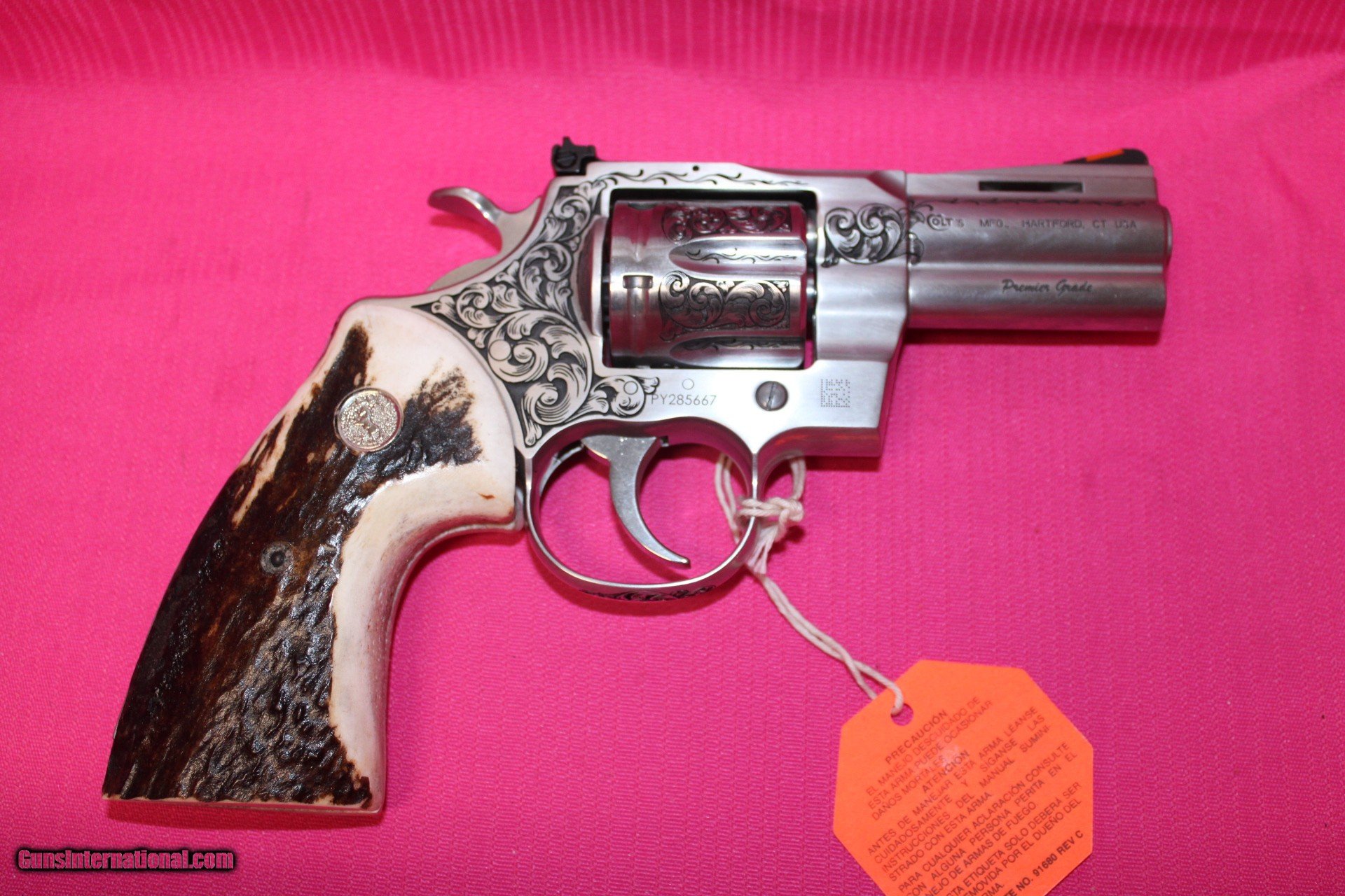 Description: Colt Python in 357 Magnum with a 3" barrel, Tyler Gun works Premier Grade with Engraving,Stag grips. Pistol is brand new, dealer exclusive. *Legendary Guns in Phoenix AZ 602-242-1195 Hours of operation Tuesday-Friday 10-6 Sat 10-5 Closed Sundays & Mondays *We accept all Major credit cards. We DO NOT charge an additional fee for Credit Cards. We also accept Postal Money orders or Certified Bank Checks{Check & Money order payments must arrive within 7 days of initial agreement and will be held for 3 days before items are shipped} *Shipping is $50 for rifles/shotguns {AK & HI Extra} and $35 for handguns. Arizona Residents Must Pay Sales Tax. We DO NOT ship Internationally. *We offer a 60 day layaway on purchases of $500 or more. Items require 1/3 of the total price as down payment which is NON-REFUNDABLE and you have 60 days to pay off the balance. *Please call or email with any questions and to confirm availability before buying. We are happy to answer all questions. All items listed are also for sale at our Phoenix, AZ location *We offer a 3 day inspection period on USED FIREARMS ONLY, We accept returns within the 3 day inspection period with NO REFUNDS ON SHIPPING CHARGES and a 10% restocking fee. *Trades are welcome for customers who can visit our Phoenix, AZ location, We DO NOT engage in online or mail in trades. SOLD Handgun Caliber: .357 Magnum Manufacturer: Colt Model: Python Condition: New |