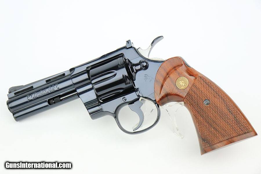 Description: This is a minty Colt Python from 1982. Four inch barrel with minty bore. All original gun with just a bit of wear on the left side of the muzzle, and a light turn line on the cylinder. Minty Colt grips. Smooth action and good timing/lockup. FFL required. SOLD Handgun Caliber: .357 Magnum |
