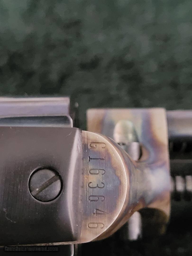 Description: SOLD!!! PENDING FUNDS This is the Peacemaker 22 convertible with the 22LR / 22Mag cylinders. This revolver has seen litle use, and has never had the 22 Mag cylinder installed. This one, with a 6" barrel, was built in 1976, and remains in nearly unfired condition, with rich color case hardening from the factory. Comes with the original styrofoam insert and manual, the other magnum cylinder, and the sleeve that is missing the end flaps (sleeve is rough but protects the insert). The grips are undamaged in perfect shape as well. $975.00 Shipped and insured to your FFL in the lower 48 states. Payment by PMO, or other Certified Funds. Dan at (608) 751-7194 SOLD Manufacturer: Colt Model: Peacemaker Scout Serial Number: G1636XX Barrel Length: 6 Bore: rifled Chambers: 22 Condition: near mint Metal Condition: near mint Bore Condition: mint Action: revolver Triggers: single Finish: Blue Sights: factory original Manufacture Date: 1976 |
