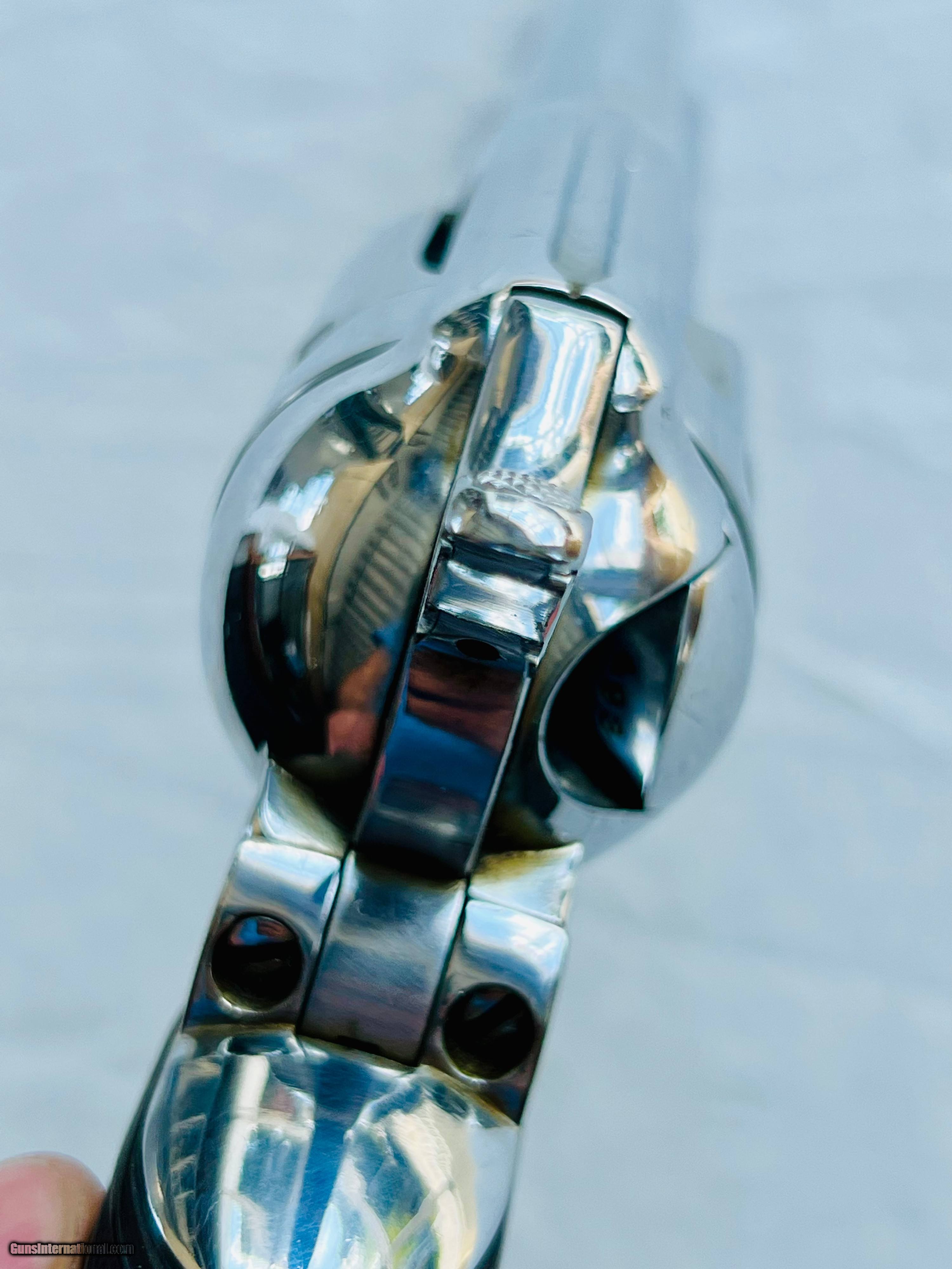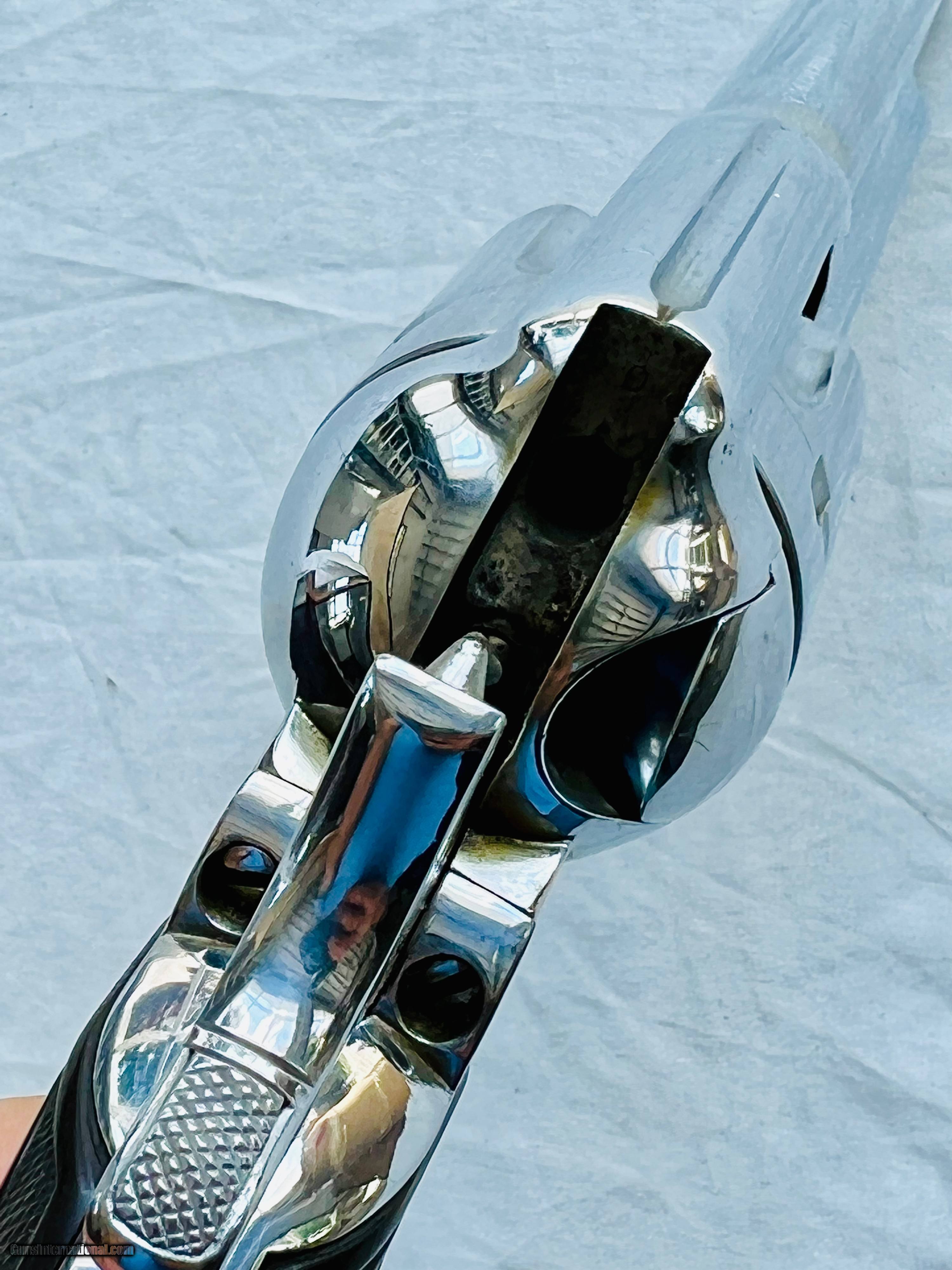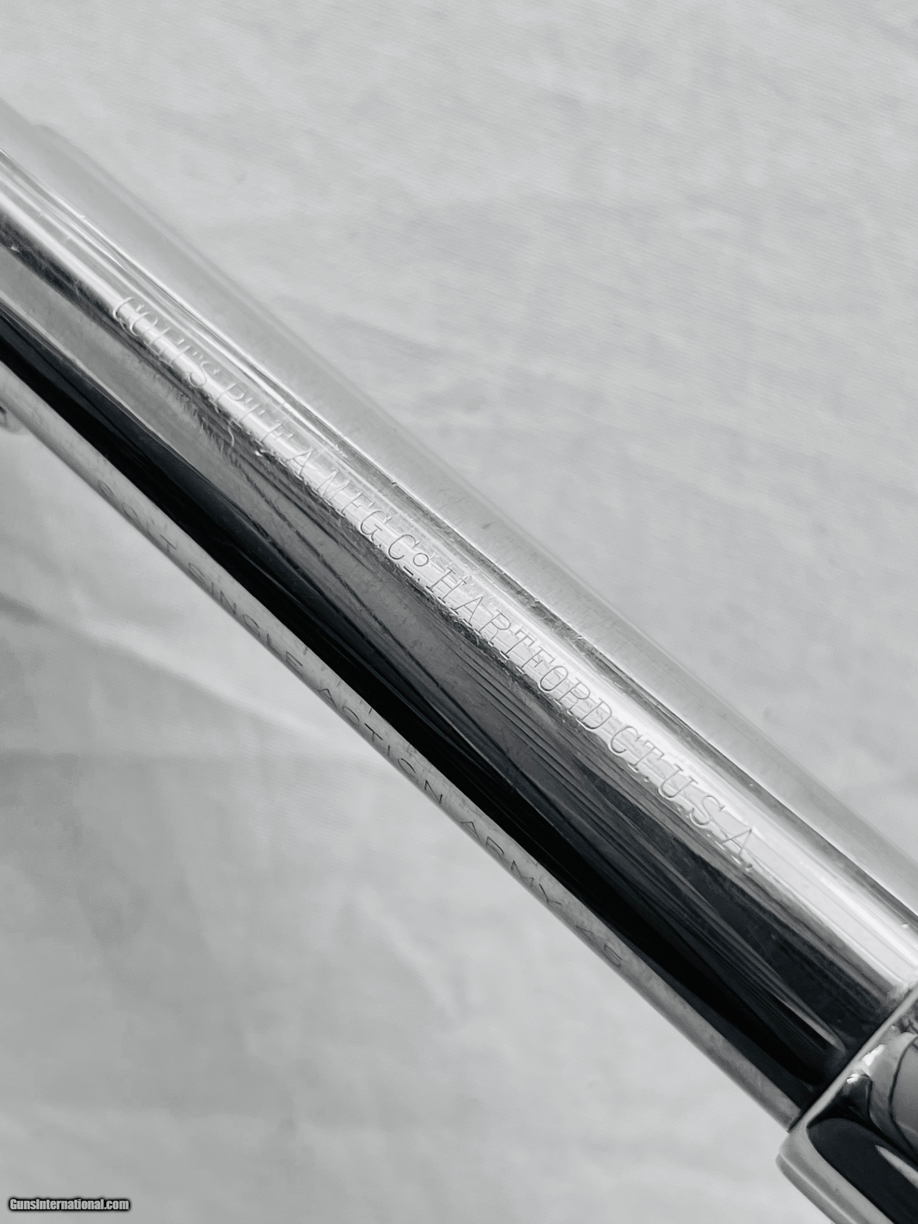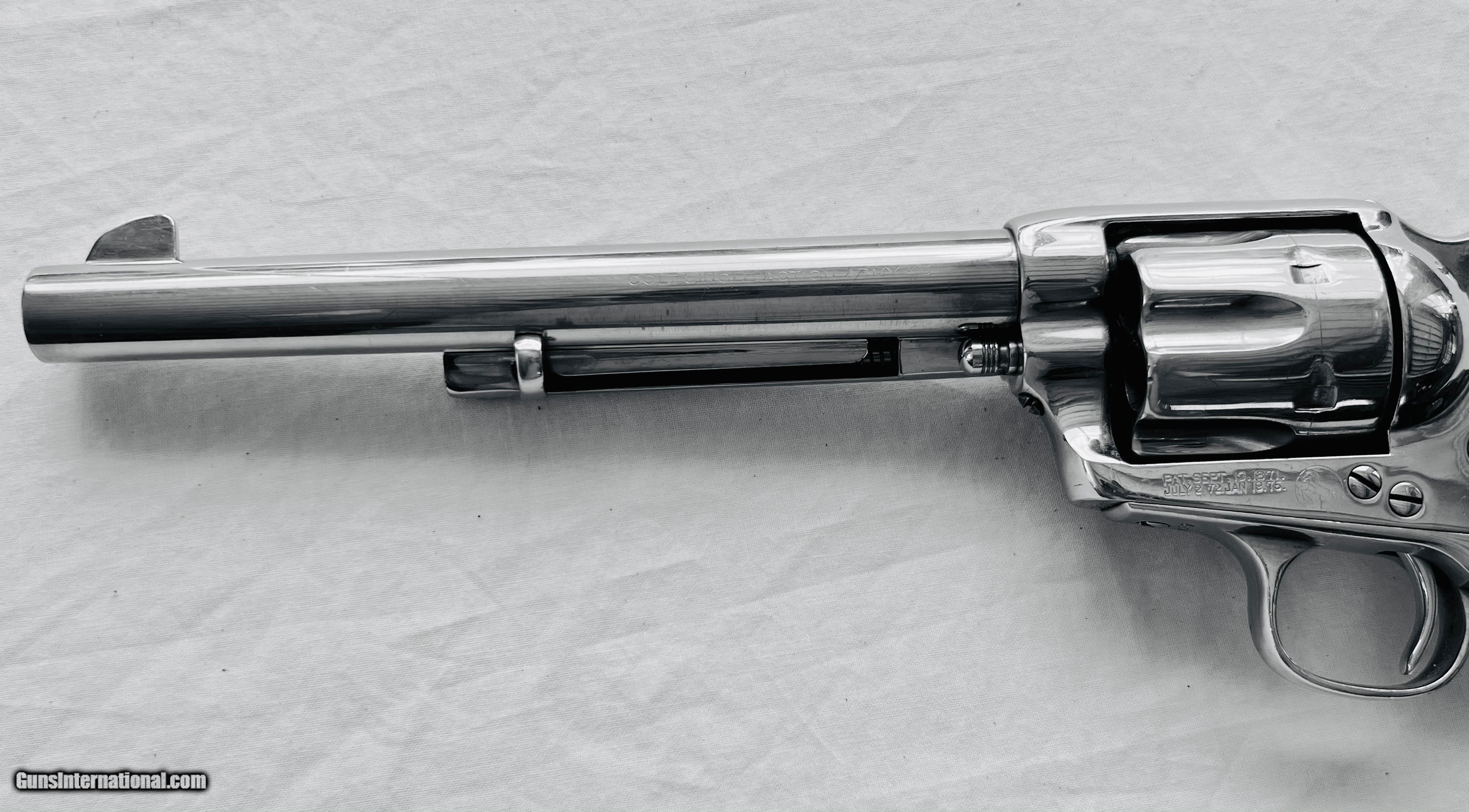 Description: Very Nice Antique 1st Generation Singe Action Army Revolver which has been professionally restored to a museum state. Serial number 147417 all matching except absent on cylinder. which indicates manufacture in 1892. Overall excellent in every way, action is flawless, grips are near perfect and finish is found in very high condition with some signs of handiling . Was found in a very old collection recently in the northeast. Overall a very nice SAA in excellent mechanical condition with great eye appeal. SOLD Antique: Yes Handgun Caliber: .45 Colt Manufacturer: Colt Model: Single Action Army Serial Number: 147417 Condition: Excellent as Refinished Metal Condition: Excellent Bore Condition: Good Action: Single Action Triggers: Single Finish: Nickel |