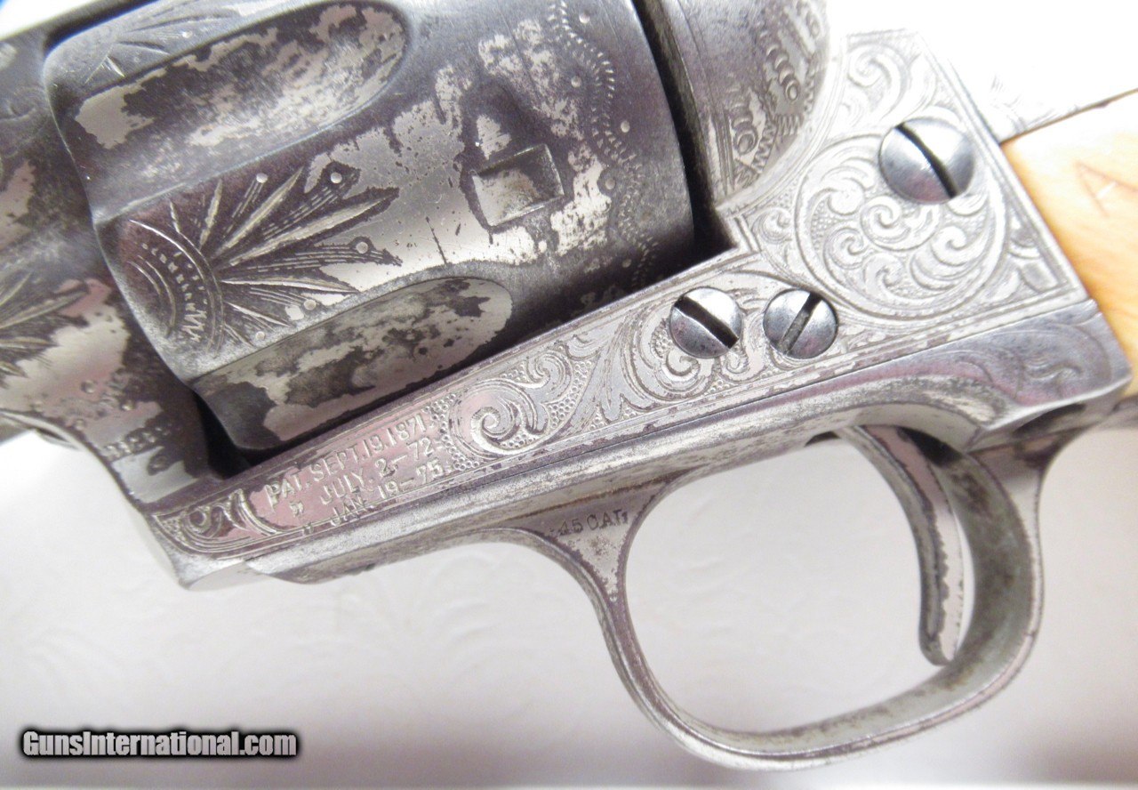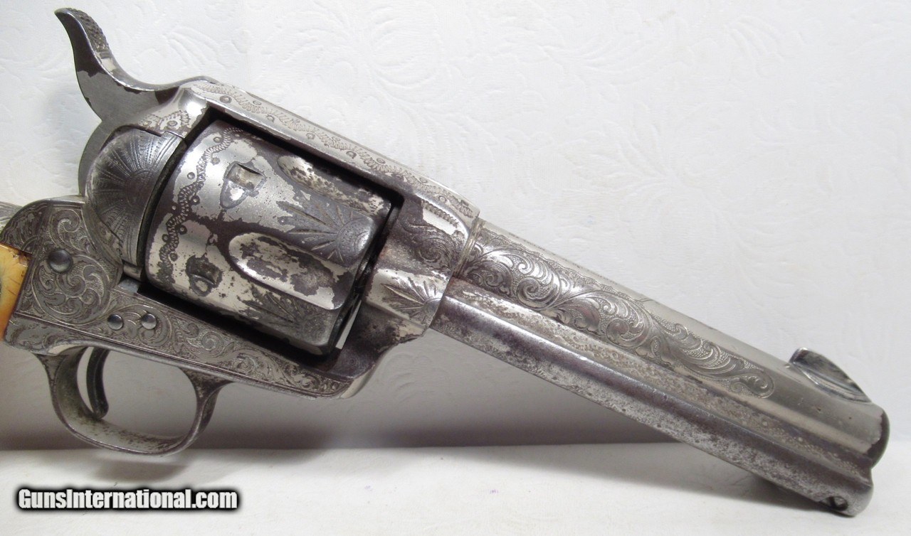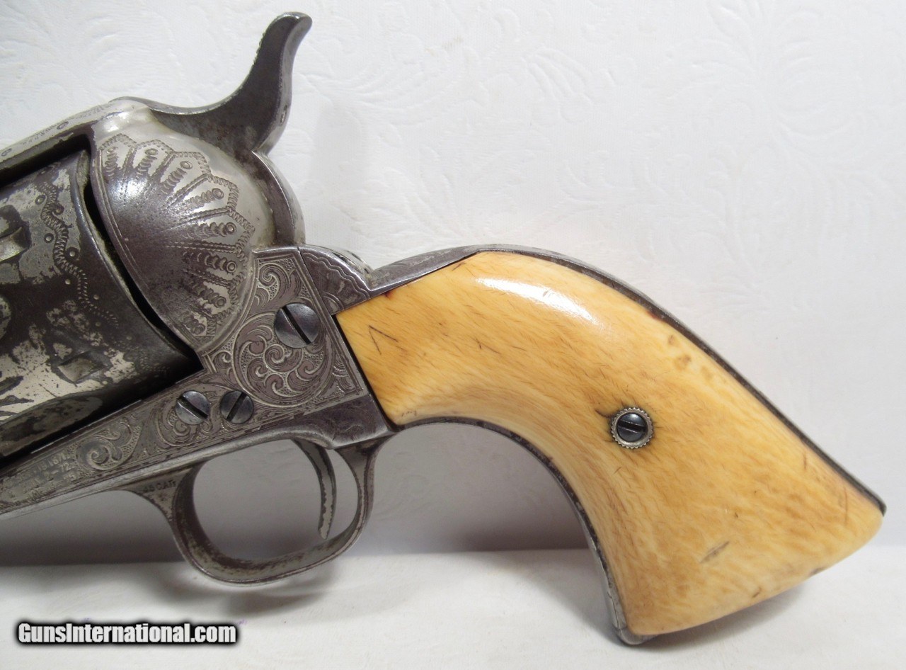 ANTIQUE COLT S.A.A. 45 REVOLVER from COLLECTING TEXAS – FACTORY ENGRAVED – SHIPPED 1888 – IVORY GRIPS