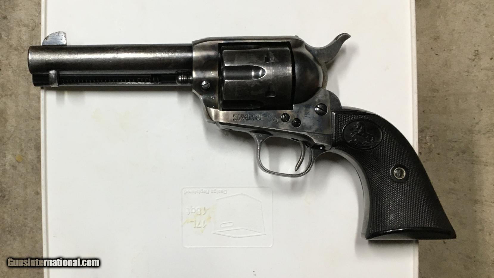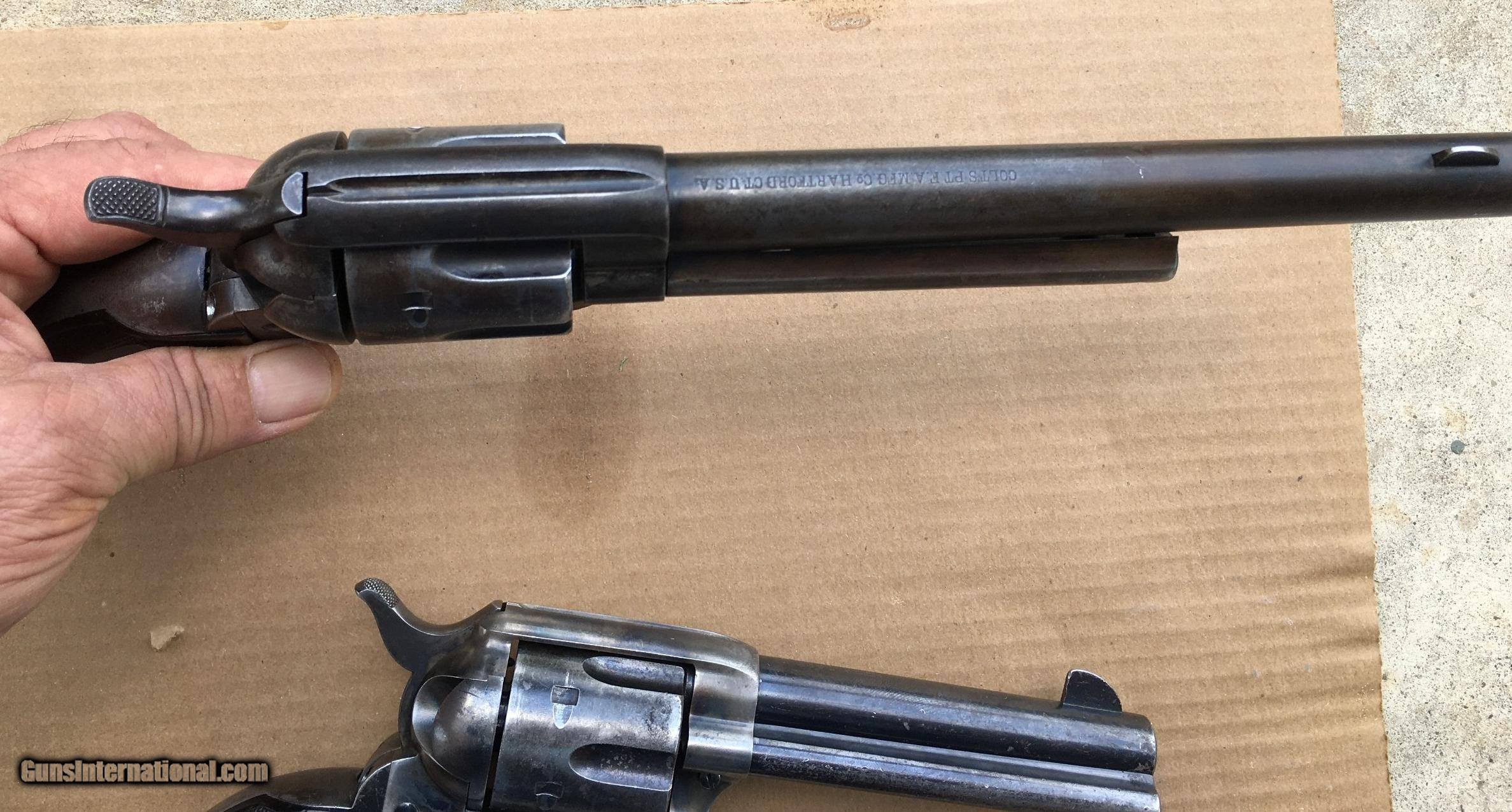 Description: (( FREE SHIPPING NEW PRICE $5500 )) Colt SAA 38-40 with matching SN# in tune , Has four clicks on hammer, Cylinder is tight , Finish is close to 70% orainal . The other gun is a Colt SAA 32-20 and with 7.5 barrel and it is just as tight as the other gun has a patina finish all matching SN# . .The 38-40 was made 1911 and the 32-20 was made in 1900 . SOLD |