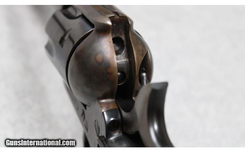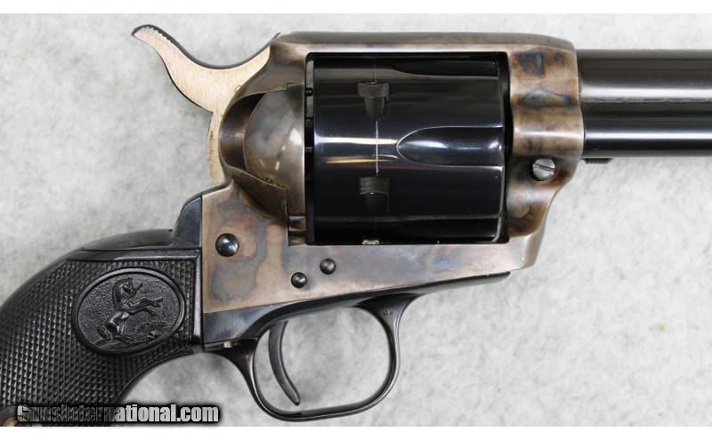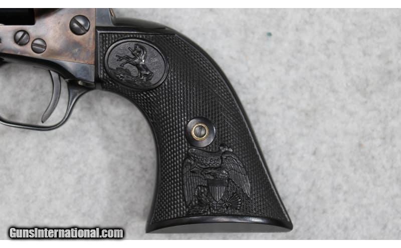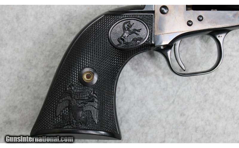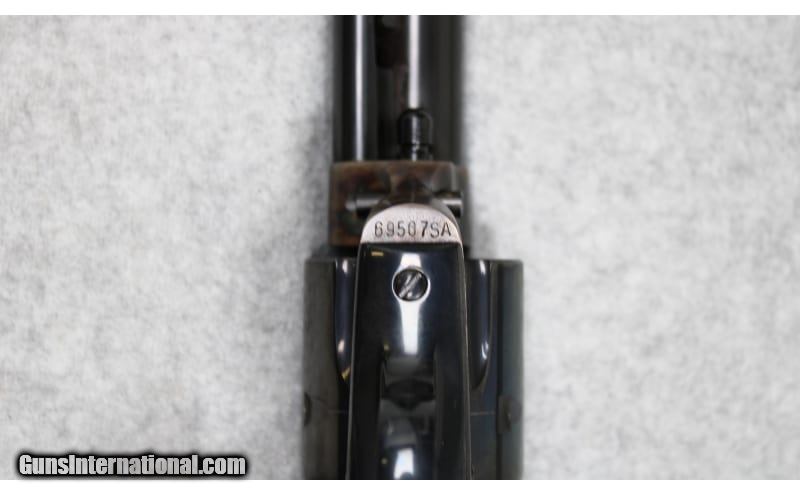Description: Colt Single Action Army Buntline Special revolver chambered in .45 Colt. Features include a 12 inch blued barrel, color casehardened frame, and checkered hard rubber grips. The serial number (69507SA) indicates that the revolver was manufactured in 1974. .45 Colt SOLD Metal Condition: Very Good with Minor Handling Marks Wood Condition: Very Good with Minor Handling Marks Bore Condition: Bright and Clear with Good Rifling Barrels: 12 inch Triggers: Single Action Butt Pad: Hard Rubber Weight: 2 lbs 11 oz Item Location: Fort Worth, TX |