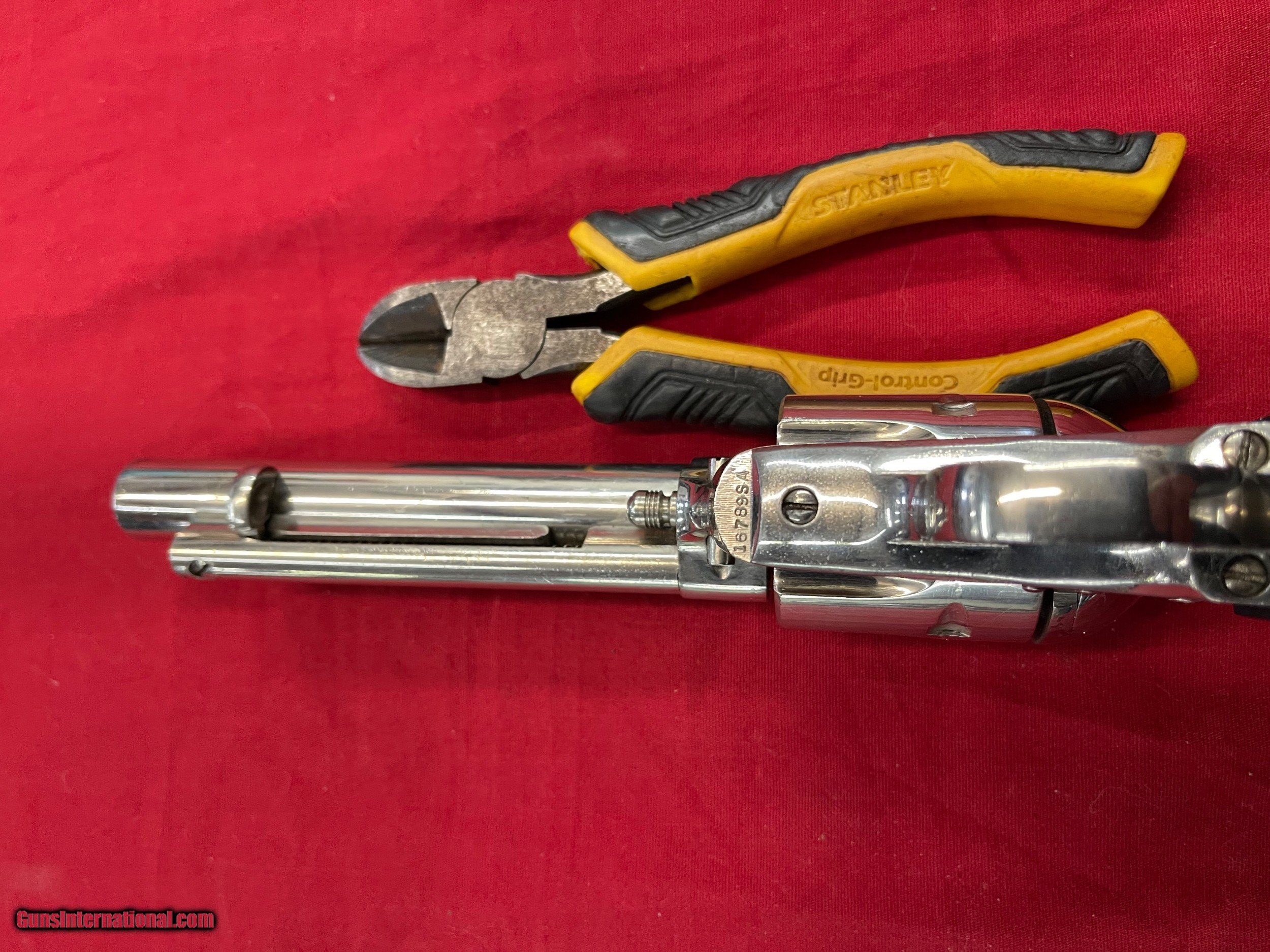 Description: Another Another great item from Gainesville Pawn! Up for sale is Colt Single Action Army. Second generation factory nickel, 5 1/2 inch barrel. In good shape with some wear (see pictures)*Please be aware that all items are sold “AS IS” with the exception or we guarantee it to shoot. Ask questions BEFORE buying. Feel free to call me at (352)230-6452 or (352) 339-4780 or email us at Gainesvillepawngmail with ANY questions. We do not accept trades or offers through through Guns International We only entertain trades and offers through our store. $35 shipping and handling. Insurance extra. We only accept USPS money orders and major credit cards for payment. 3% convenience fee for credit cards. WE collect Florida state sales tax for in state sales. Please be aware that this item is for sale in our store as well as the occasional gun show so it may be sold there at any time. We will not ship the item until you have your dealer/receiving store email us a signed copy of their FFL to gainesvillepawngmail. If you choose the Buy It Now option please call me (352) 339-4780 to finish the transaction. SOLD Handgun Caliber: .38 Special Manufacturer: Colt Model: Single action Army Serial Number: 16789sa Barrel Length: 5 1/2 Condition: Very good Metal Condition: Good Wood Condition: Very good Bore Condition: Excellent |