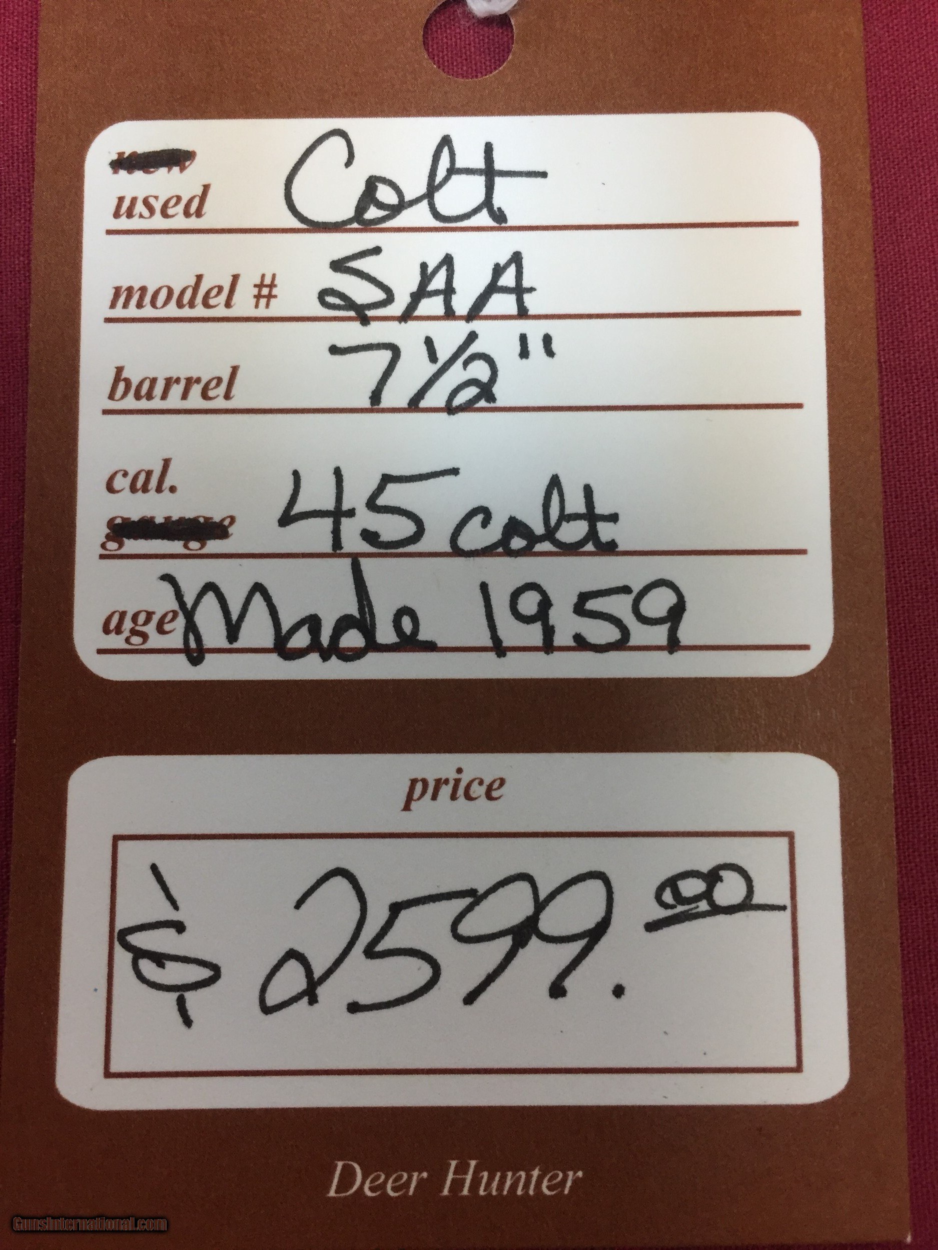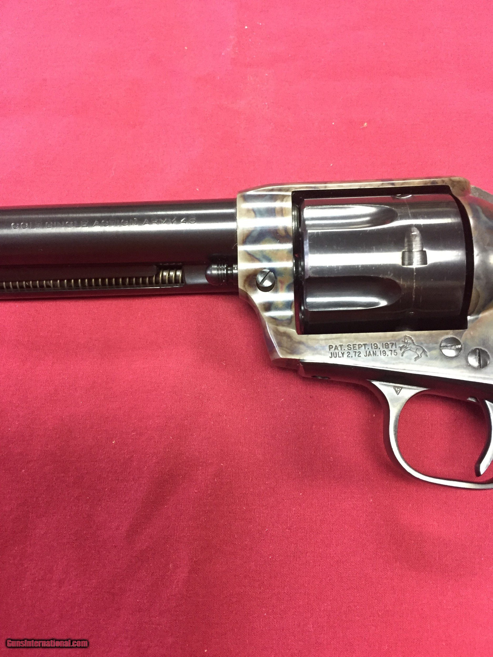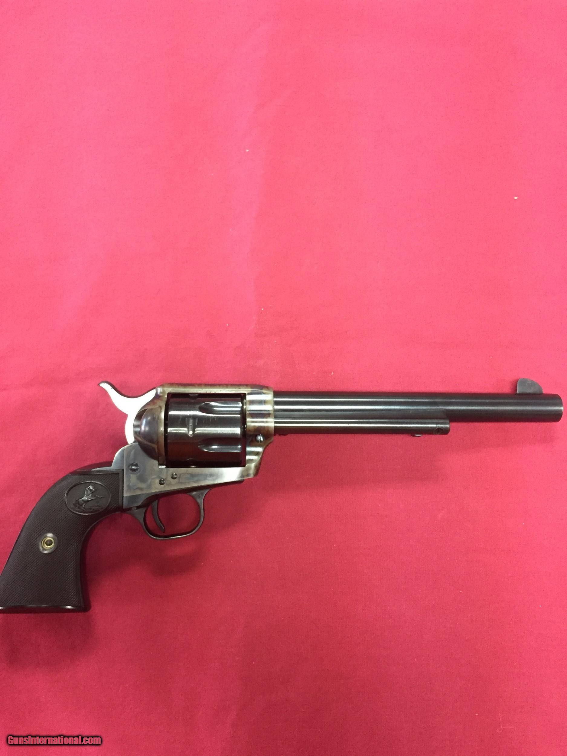 Description: SOLD FOR SALE Colt SAA, 6 shot, 45 Colt, 7.5" barrel, Beautiful bore, Case Colored Frame, Original box, Excellent condition, CIRCA 1959 We accept VISA, M/C, DISCOVER Shipping to lower 48 is $40.00 USPS PRIORITY MAIL SOLD |