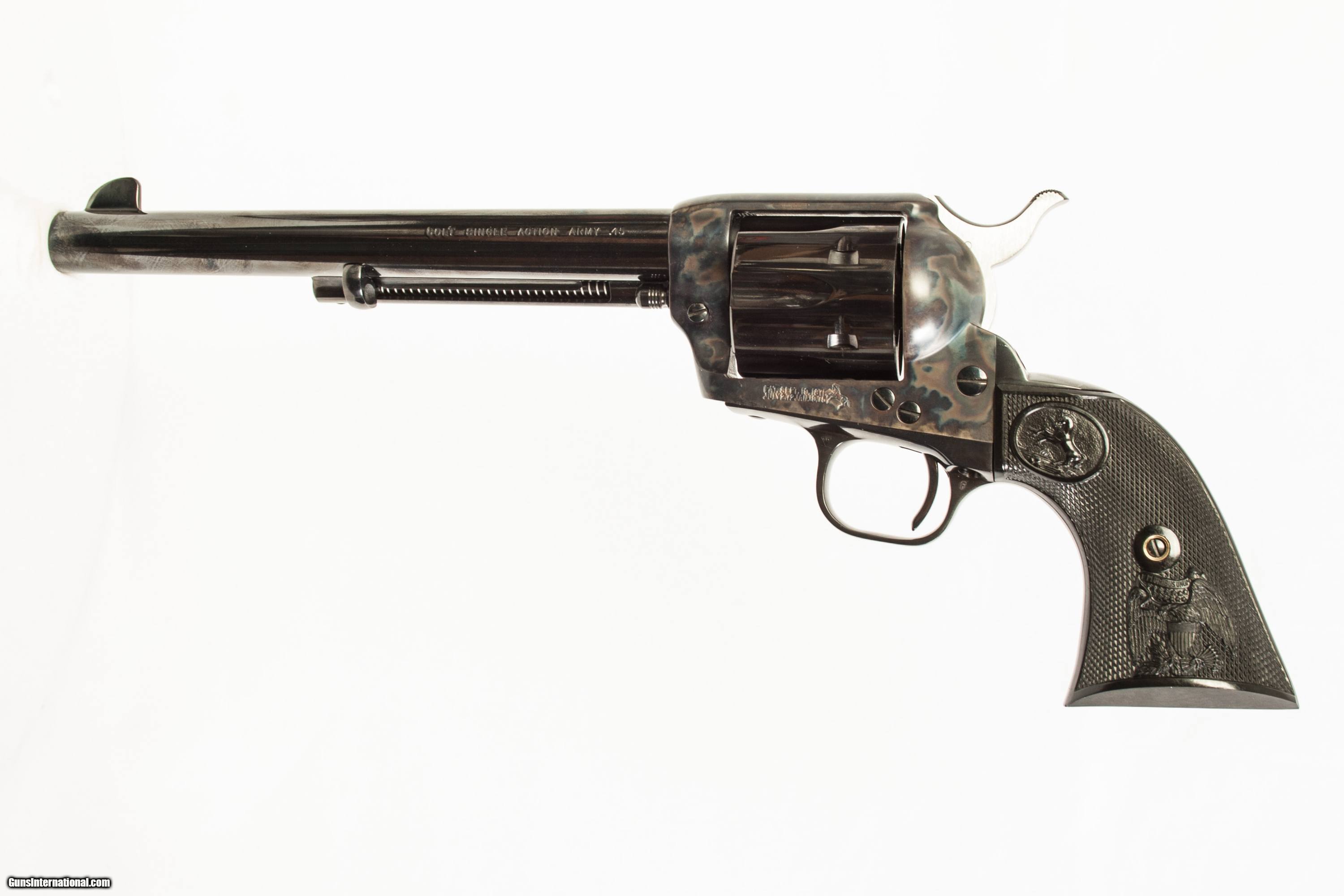 COLT P1870 SAA CHAMBERED IN 45LC WITH A 7.5 INCH BARREL COMES WITH BOX. THIS GUN IS IN GOOD CONDITION AND IS COVERED BY DURY'S LIFETIME WARRANTY.