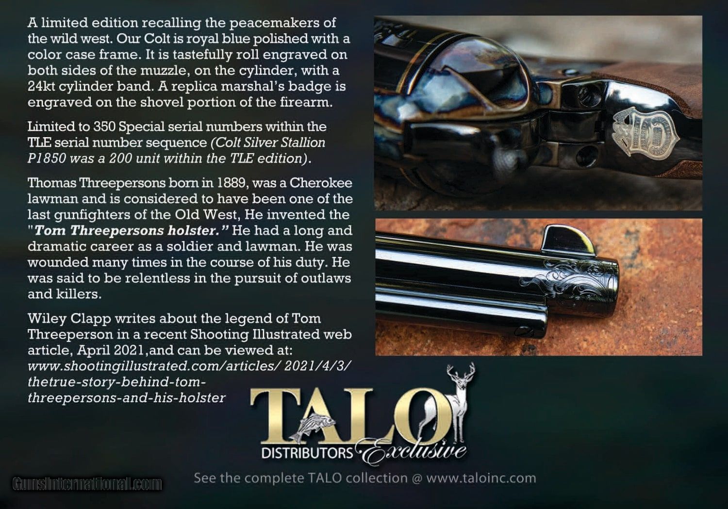 Description: Colt SAA Single Action Army 45 LC TALO Thomas Threepersons P1850TLE-3P - Factory New SOLD |