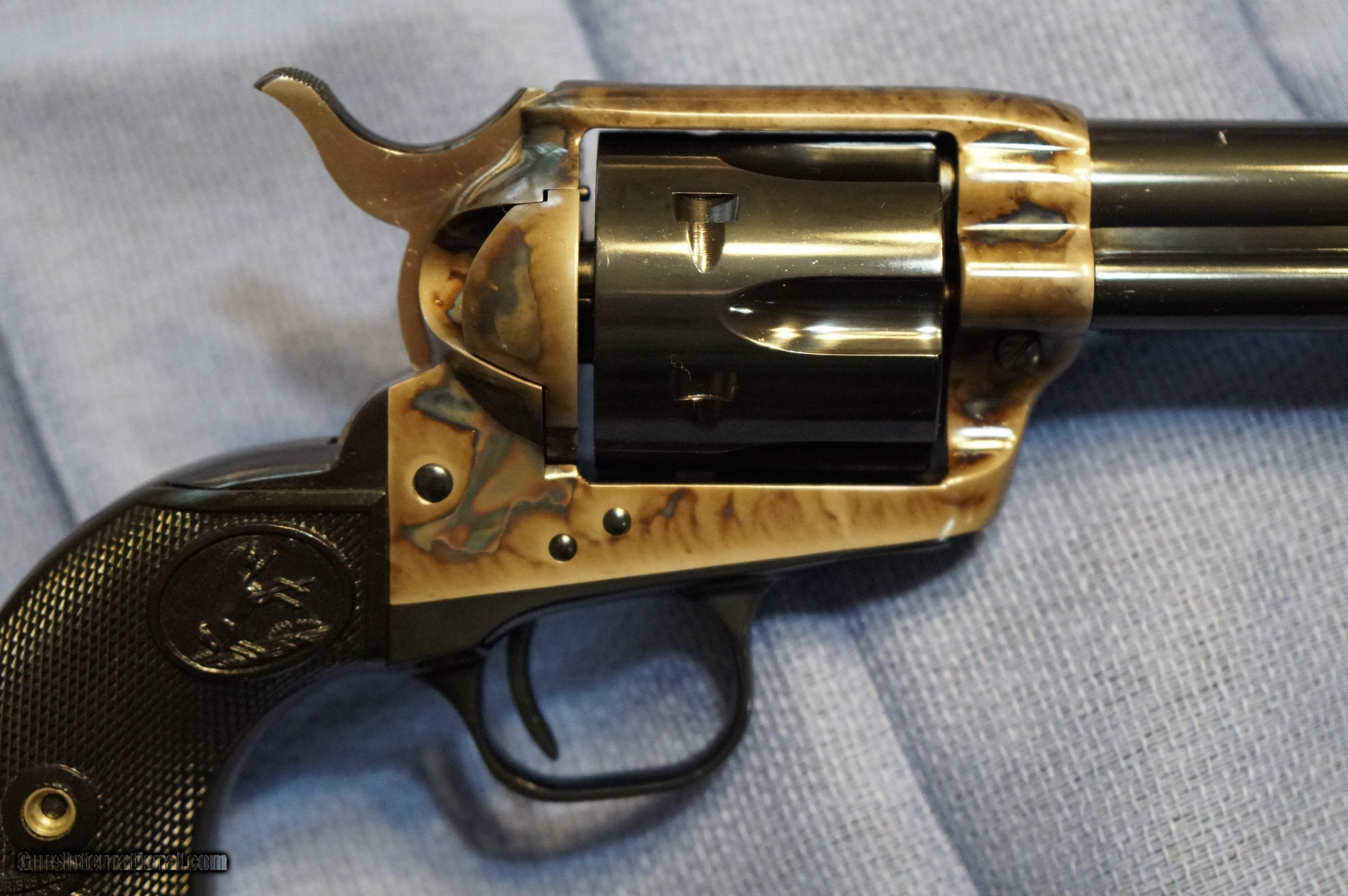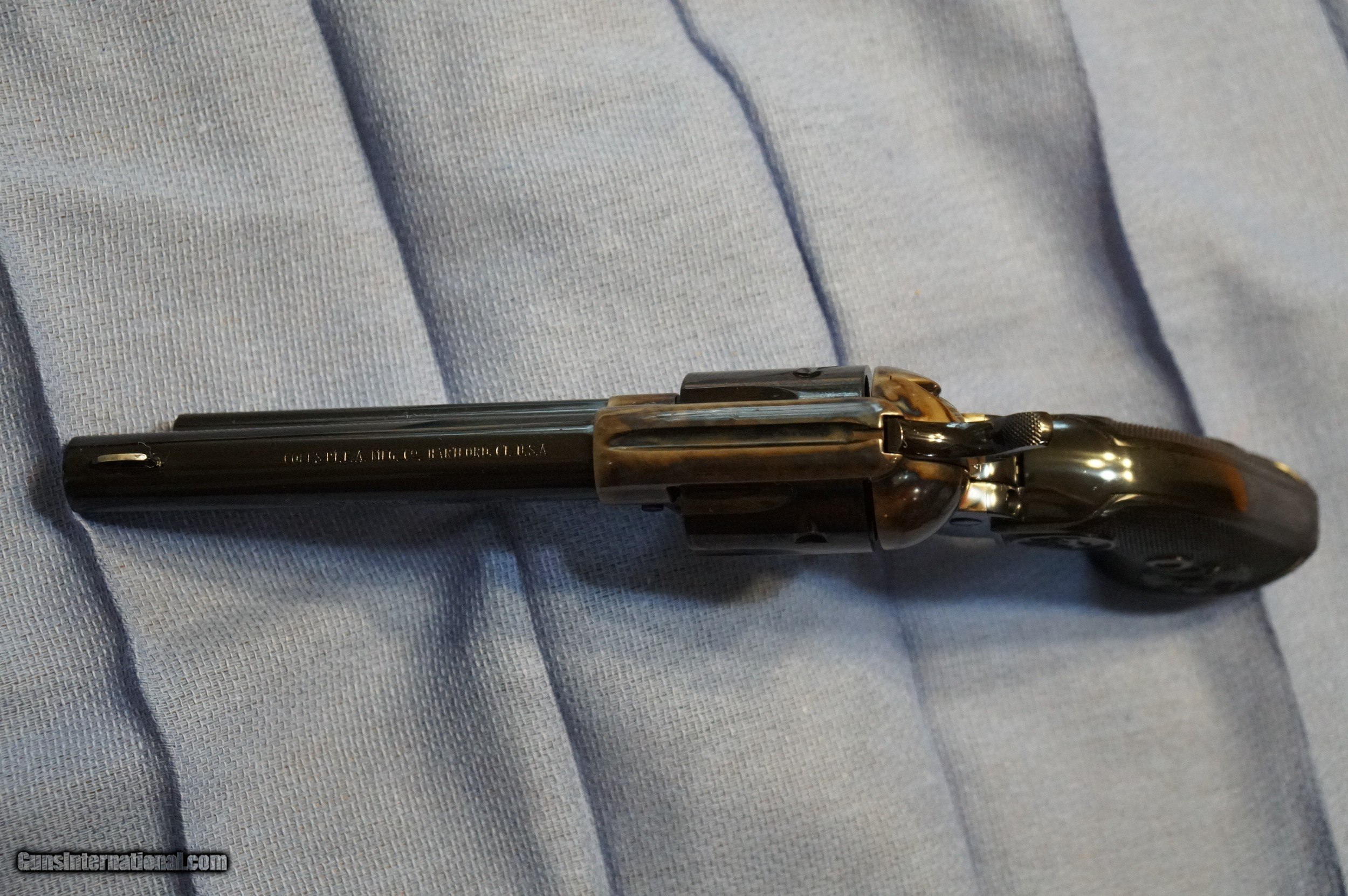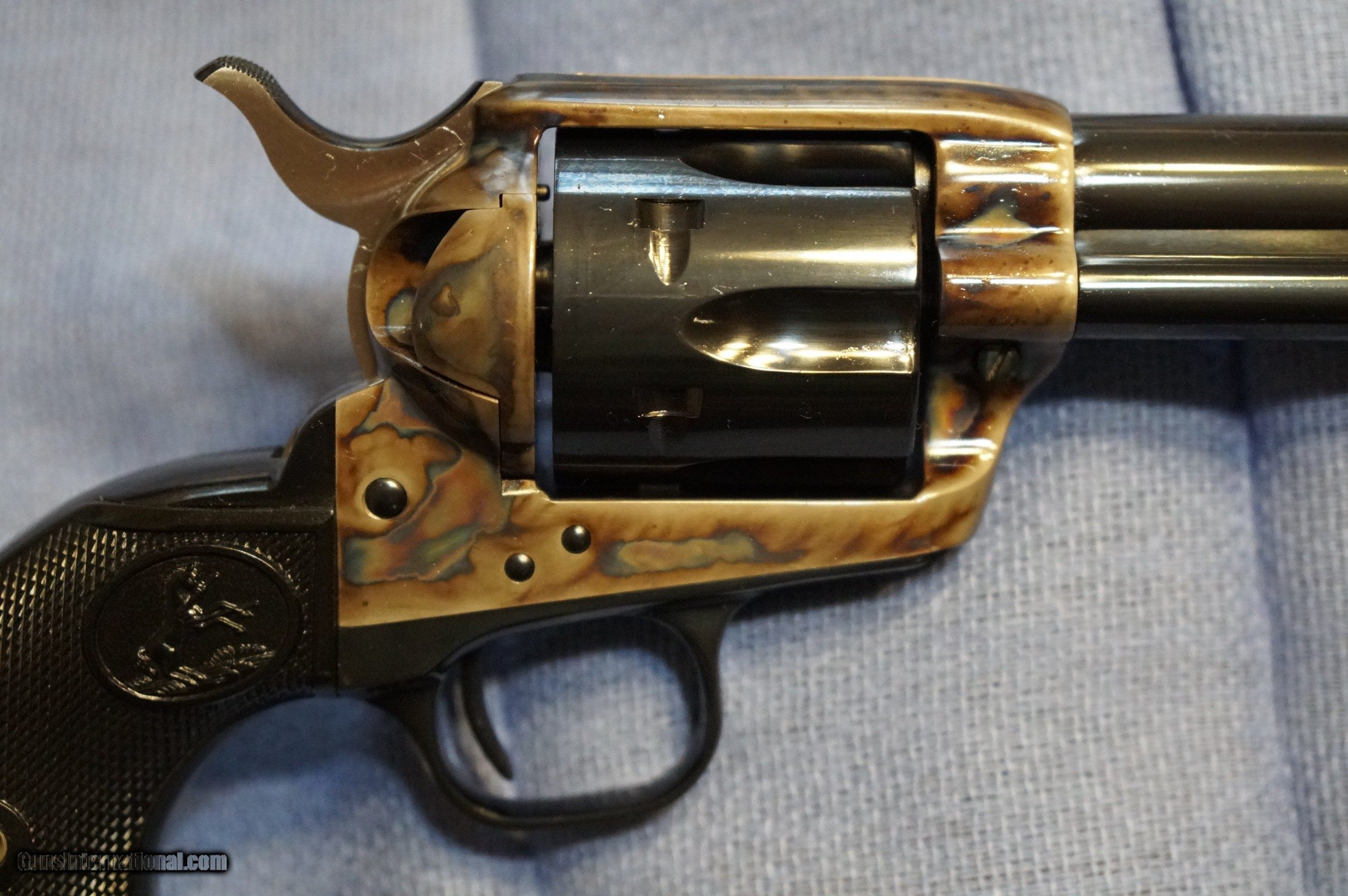 Description: This pair of Colt SAA revolvers, caliber .38-40 with 5 1/2 inch barrels, were purchased new by me. The serial numbers are sequential. The pair have been tuned by Tom Sargis of Bozeman Trail Arms who did the following work: action job/ trigger pull refined, forcing cones cut to 11 degrees, bolts reshaped and annealed for proper fit, and front sight squeezed and filed to correct point of impact. These Colts are in near perfect condition and have been fired only about 100 rounds to confirm sight regulation. They are looking for an owner who enjoys shooting properly set up Colts. They are like-new, with the advantage of having the gunsmithing needed to bring them up to snuff. Shipping is $100. The photos show multiple views of both Colts. Included are the boxes, both in very good condition. Please see other items I have for sale. SOLD |