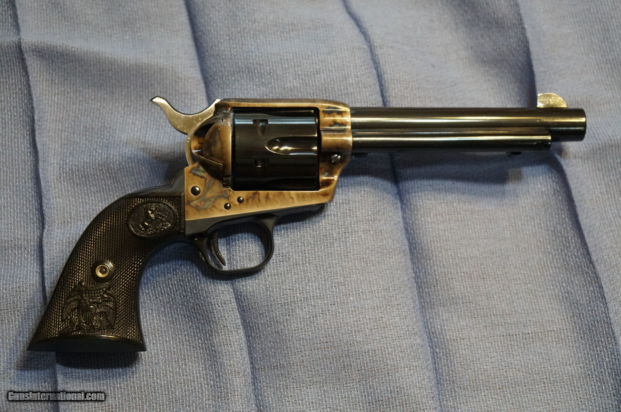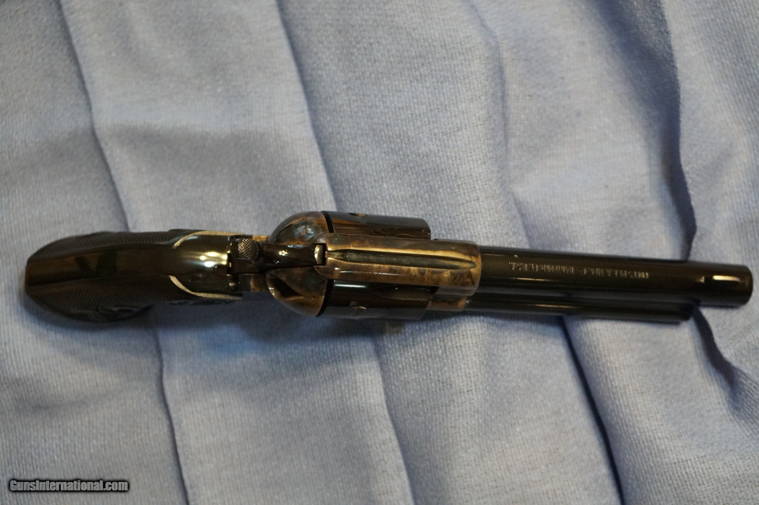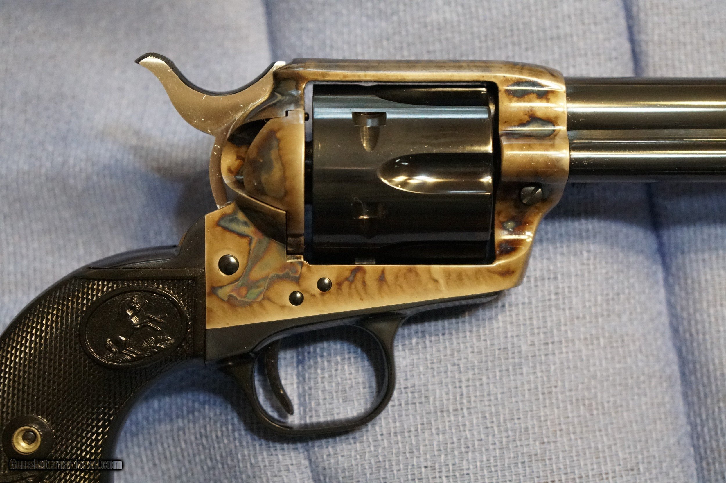 Description: This pair of Colt SAA revolvers, caliber .38-40 with 5 1/2 inch barrels, were purchased new by me. The serial numbers are sequential. The pair have been tuned by Tom Sargis of Bozeman Trail Arms who did the following work: action job/ trigger pull refined, forcing cones cut to 11 degrees, bolts reshaped and annealed for proper fit, and front sight squeezed and filed to correct point of impact. These Colts are in near perfect condition and have been fired only about 100 rounds to confirm sight regulation. They are looking for an owner who enjoys shooting properly set up Colts. They are like-new, with the advantage of having the gunsmithing needed to bring them up to snuff. Shipping is $100. The photos show multiple views of both Colts. Included are the boxes, both in very good condition. Please see other items I have for sale. SOLD |