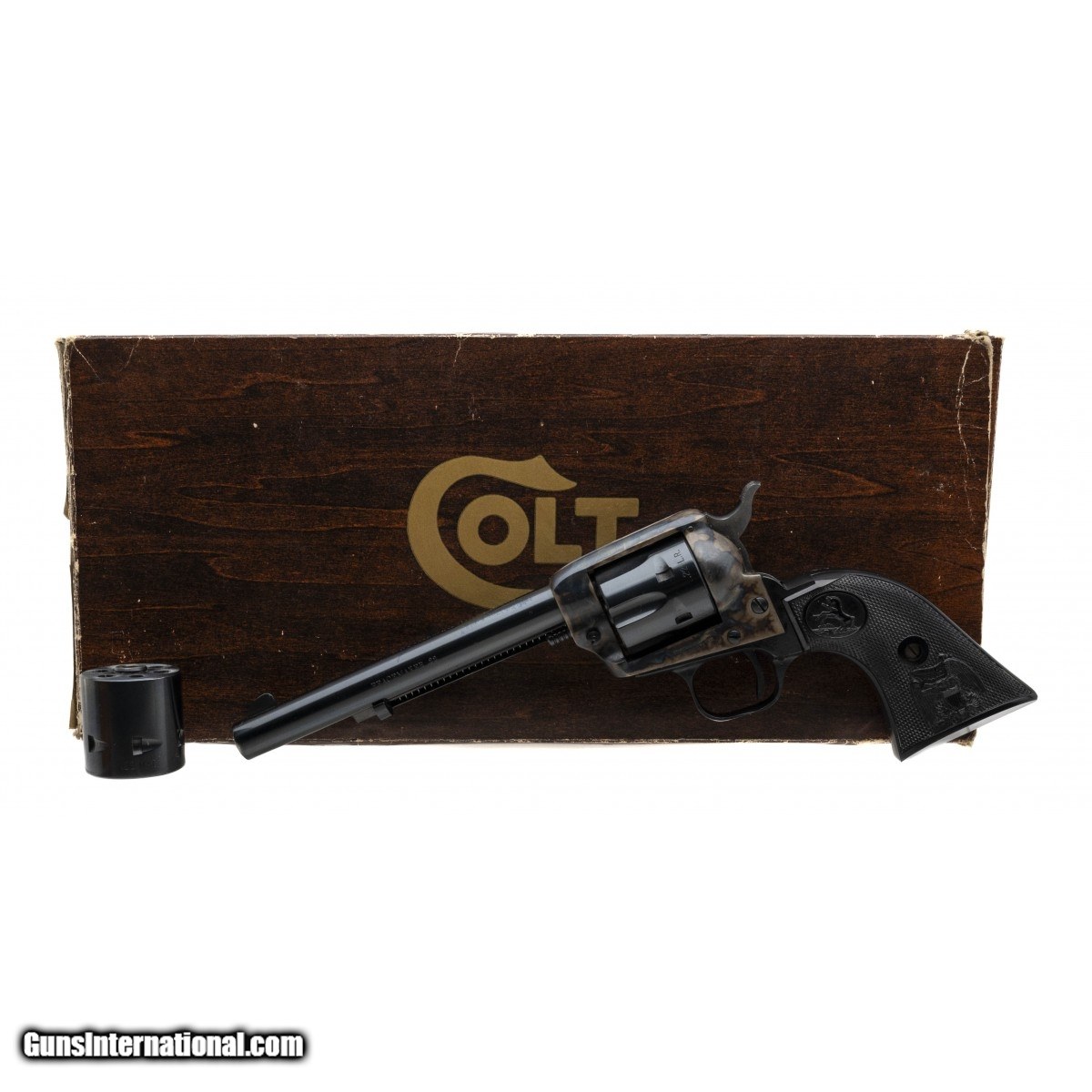 Description: " SN: G161715. Made in 1976. .22 with a 6"" barrel. Bore is near excellent. Single action .22 Colt revolver. Finish is in near excellent condition with vibrant case colors. Grips show virtually no handling wear. Revolver comes with additional .22 magnum cylinder and original Colt box. Overall near perfect condition. SOLD |