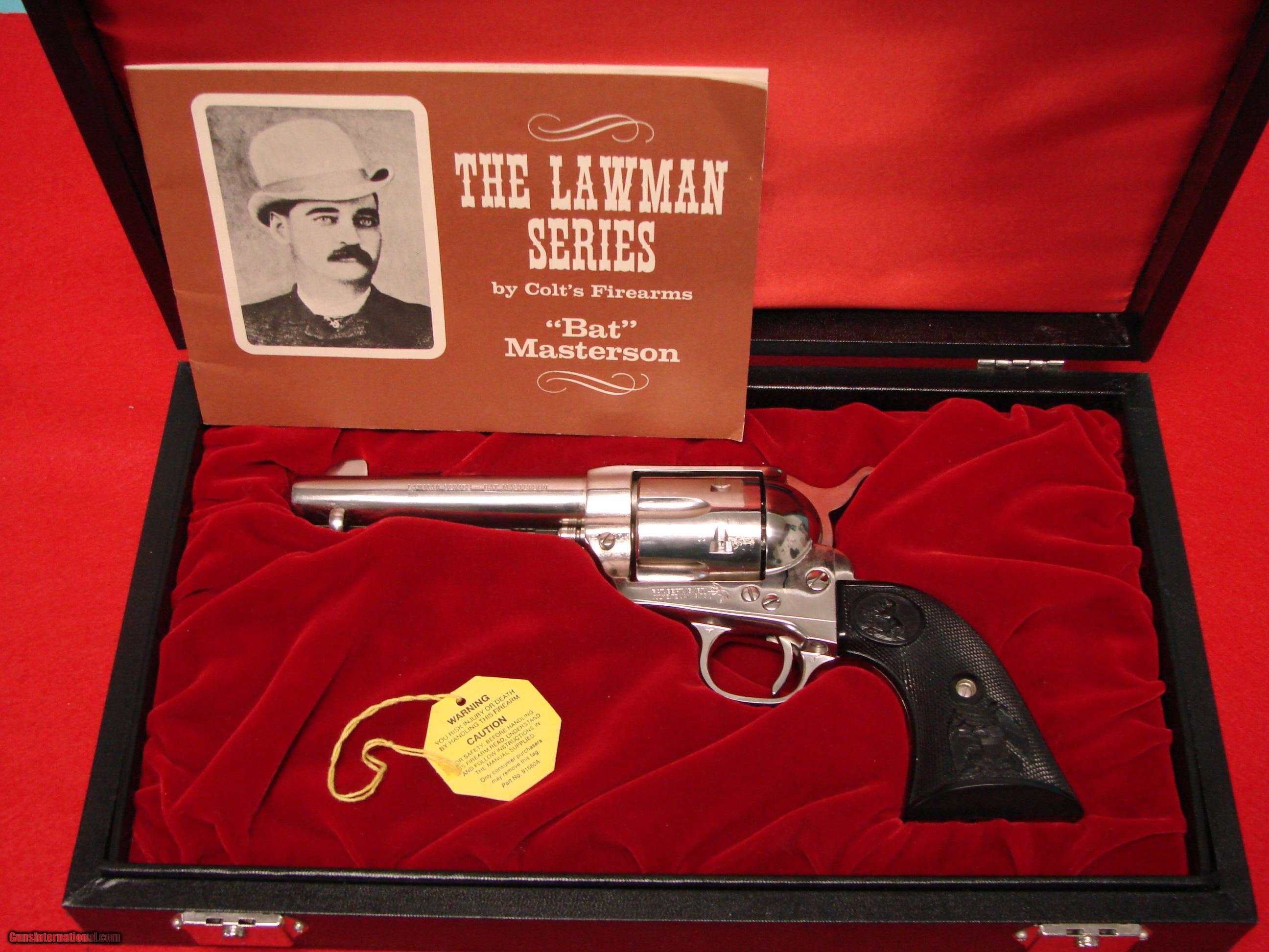 Description: Colt Bat Masterson Lawman Series SAA in 45LC, 4.75" barrel nickel finish with display box. Gun is unfired in excellent condition. *No extra fees, You only pay for the cost of the item & $35 for shipping. Arizona Residents Must Pay Sales Tax. *Legendary Guns in Phoenix AZ 602-242-1195 Hours of operation M-F 10-6 Sat 10-5 Closed Sundays. *All items online are also for sale at our Phoenix location *Please call the shop for any questions and to confirm availability before buying. We are happy to answer all questions. *We offer a 3 day inspection period with a full refund if item was misrepresented. We accept returns for any reason within the 3 day inspection period with NO refund for shipping coming or going and a 15% restocking fee. *We Only accept/consider trades that can be brought to our Store in Phoenix. *Your State Laws are your Responsibility to know. *Items ship once your Dealers FFL is received SOLD Manufacturer: Colt Model: Single Action Army Caliber Info: 45LC Condition: Used;As New |